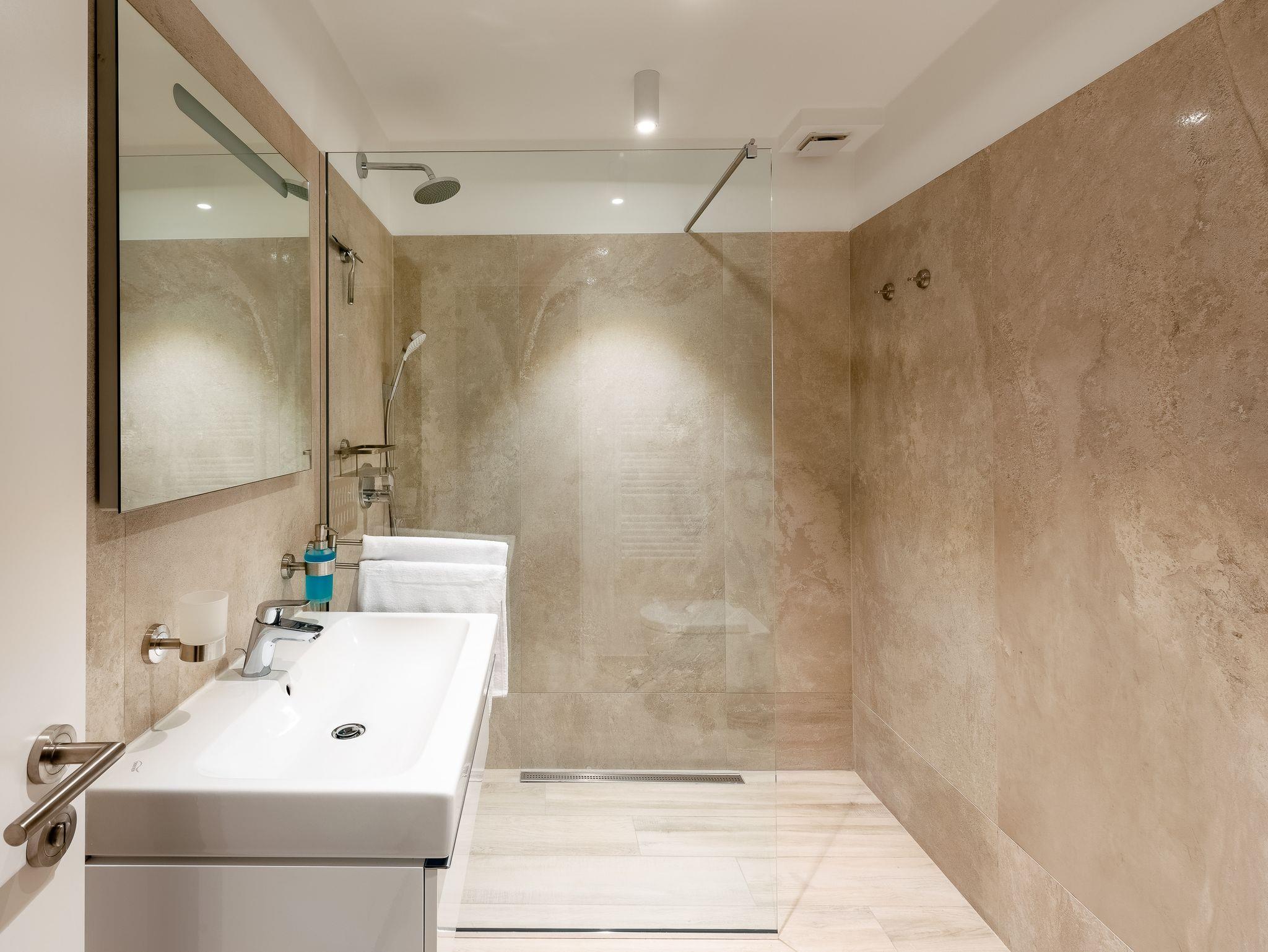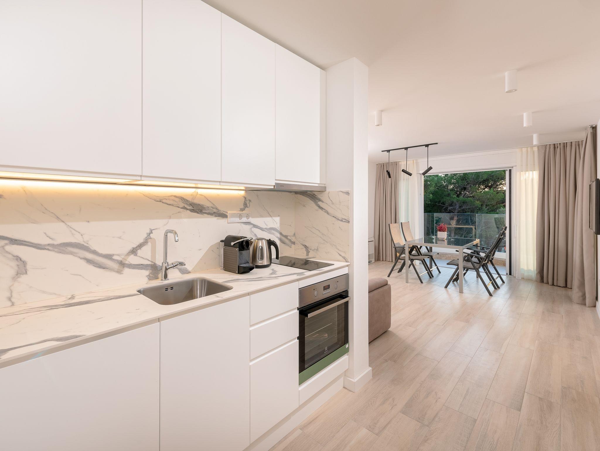Ferienwohnung bietet Platz für 4 Gäste. Die Betten sind in Schlafzimmern, die es 1 gibt, und in Wohnzimmer, innerhalb einer Gesamtfläche von 42m2, angeordnet. Die Gäste haben eine eigene Terrasse zur Verfügung, auf der sie in warmen Sommernächten genießen können. Es ist erlaubt, Speisen auf dem Gemeinschafts-Grill vorzubereiten. Während ihres Aufenthalts können Gäste das gemeinsam zur Nutzung stehende Schwimmbad benutzen. IM PREIS INBEGRIFFEN: Kurtaxe, Endreinigung, Klimatisierung, Pool, Parkplatz, Internet, Kinderbett, Bügeleisen, Bügelbrett, Föhn. Die Verfügbarkeit zusätzlicher Dienstleistungen in Ihrem reservierten Termin und die Preise derselben (falls nicht aufgeführt) müssen im Voraus überprüft werden. Zusätzliche Dienstleistungen die in der Zahlungsaufforderung nicht aufgeführt sind werden direkt beim Vermieter bezahlt, angenommen der Gast nutzt auch diese.