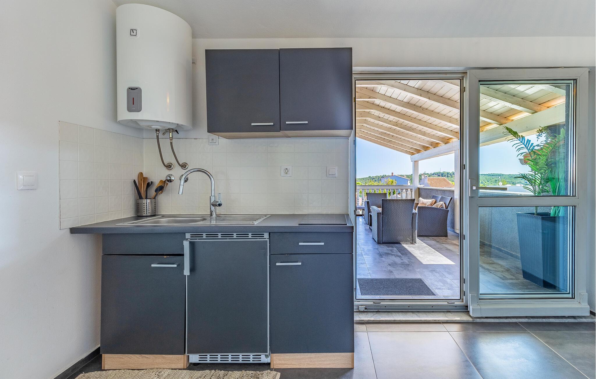 Lad hverdagen ligge og tilbring en afslappende ferie i denne moderne lejlighed, der har en fremragende beliggenhed til at udforske området og nyde smukke dage ved havet. Gør det behageligt i den stilfulde atmosfære og glæd jer til hyggelige aftener sammen med måltider, afslapning og gode samtaler.
