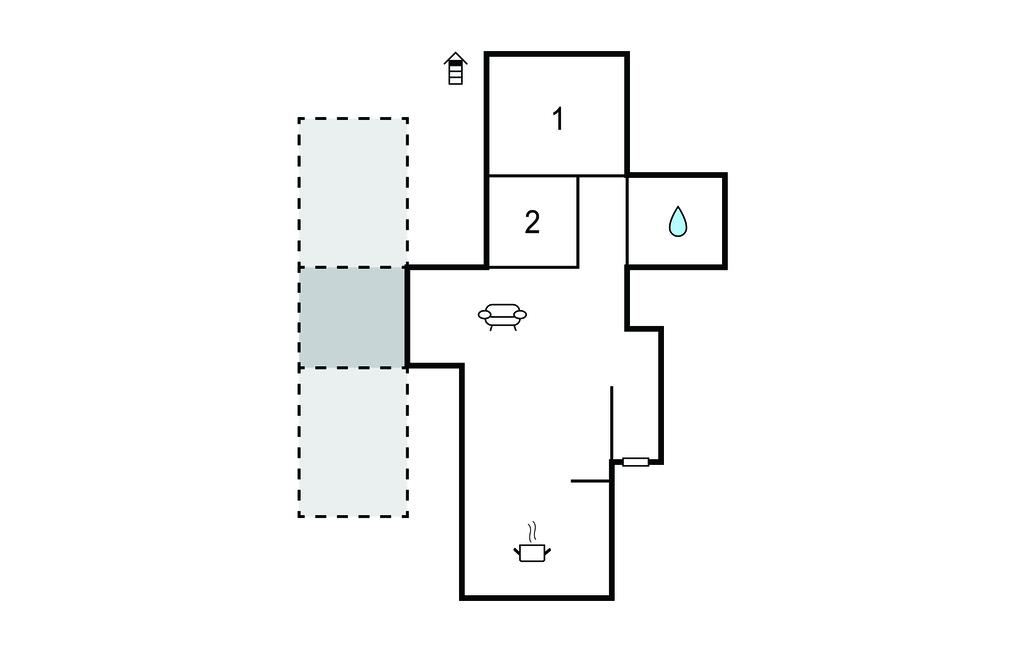 Opholdsstue/køkken 22m2 - 2 Sovepladser. (Sofa, madras eller lignende).
