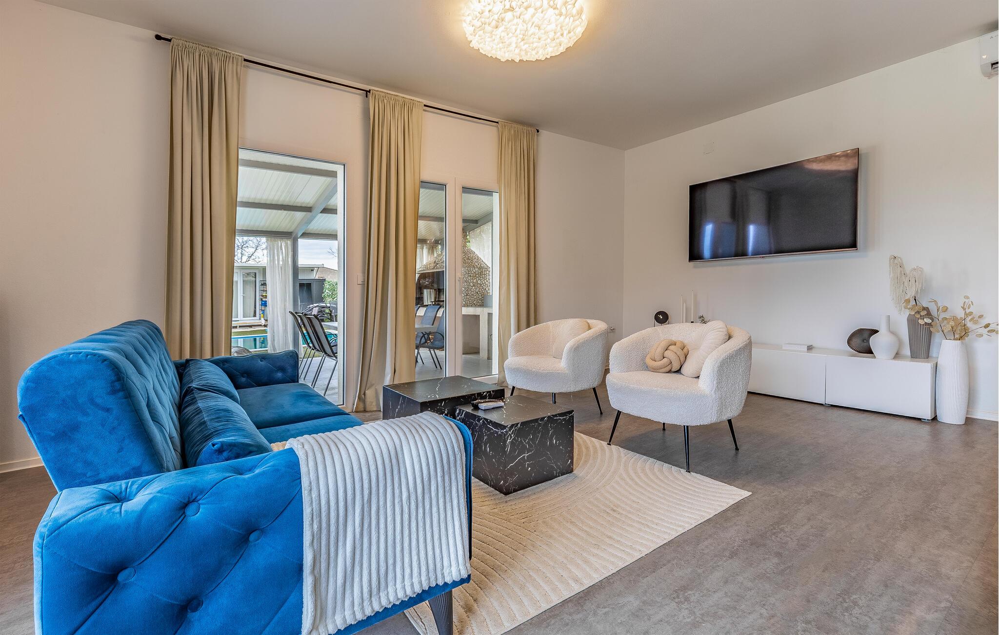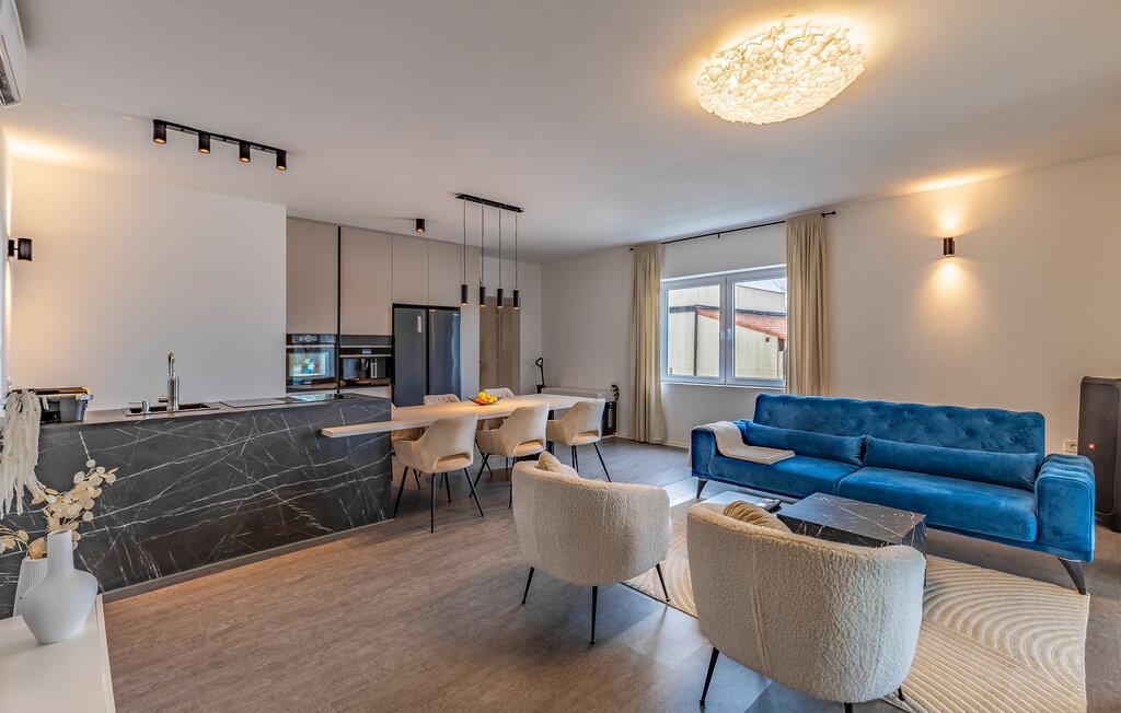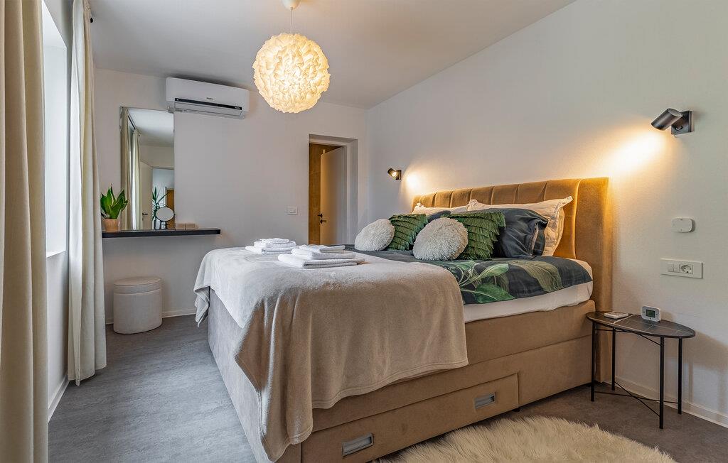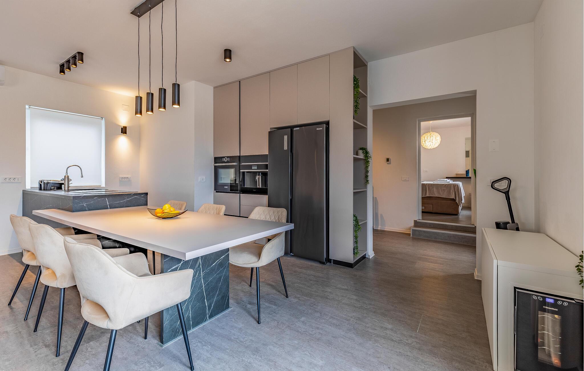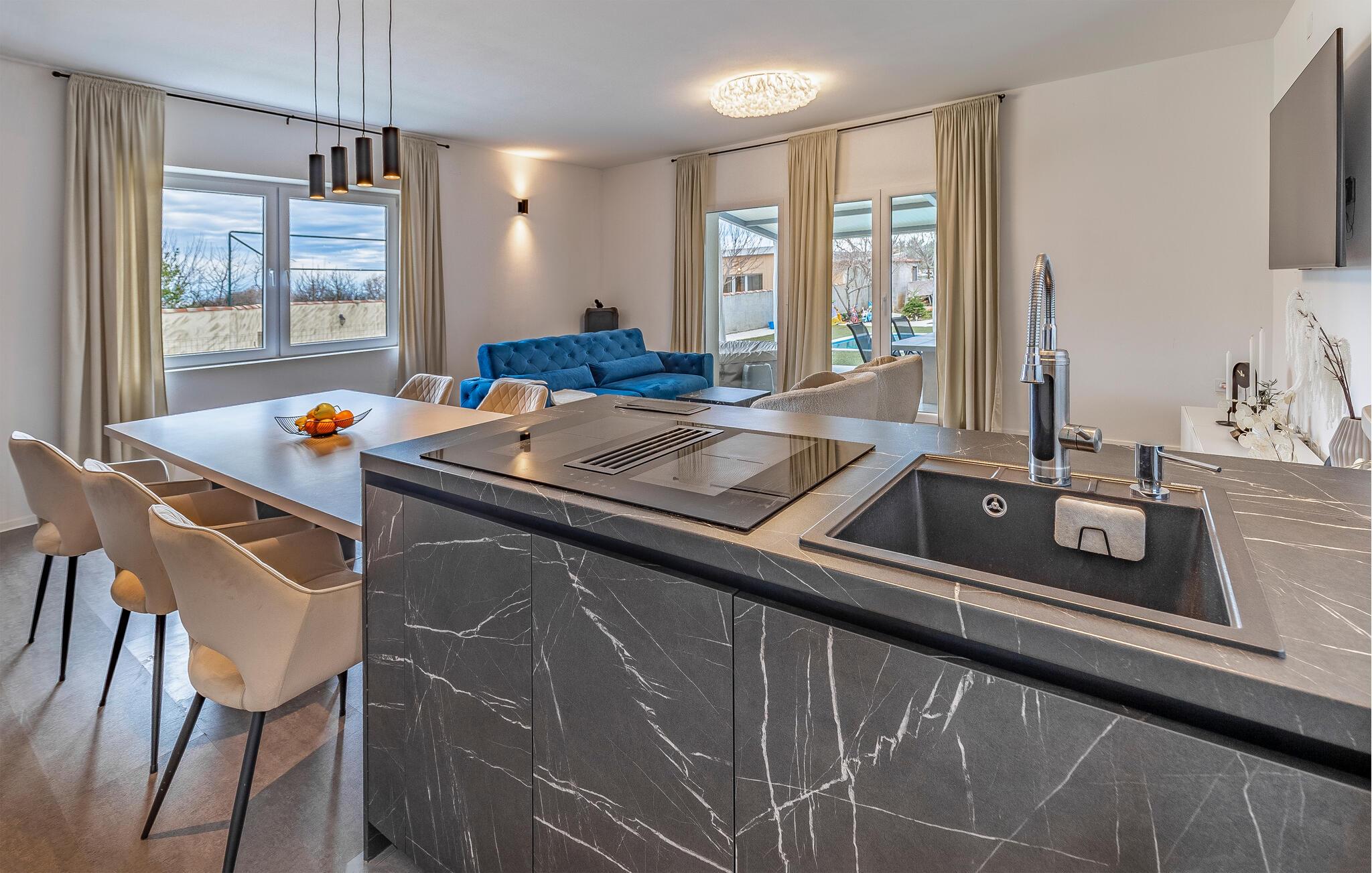 Kom ind og glæd jer over den elegante stemning i dette børnevenlige feriehus. Tryl kroatiske specialiteter frem i kvalitetskøkkenet, og tag plads ved det stilfuldt oplyste spisebord. Find jer godt til rette i sofaen om aftenen, stream en spændende serie, eller afhold en sjov spilleaften.
