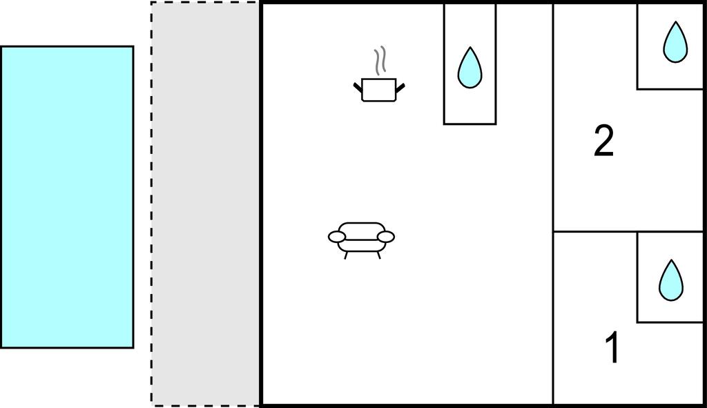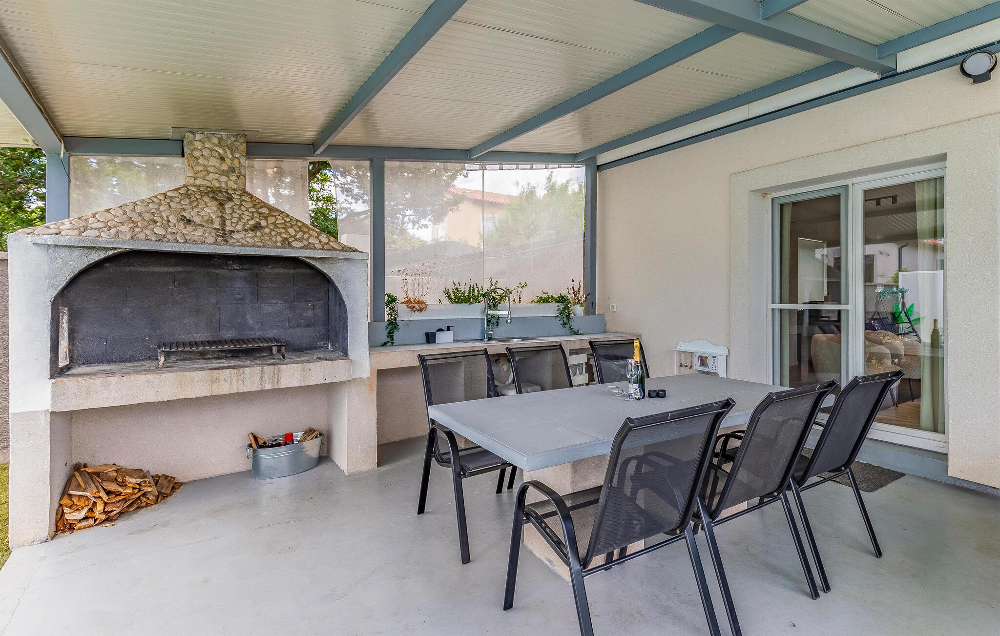 Udenfor er der en skøn pool med nem trappeadgang. Forkæl jer selv med en forfriskende svømmetur, lige når I har lyst. Om aftenen indbyder den overdækkede terrasse til hyggelige grillaftener.