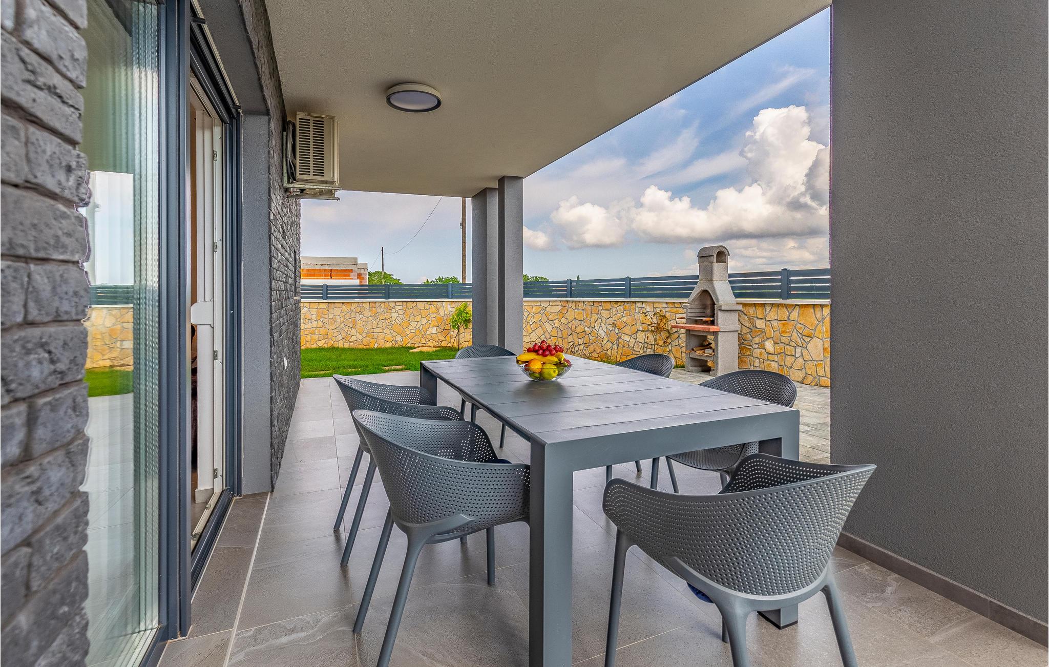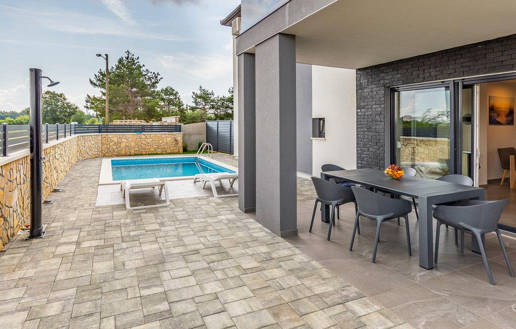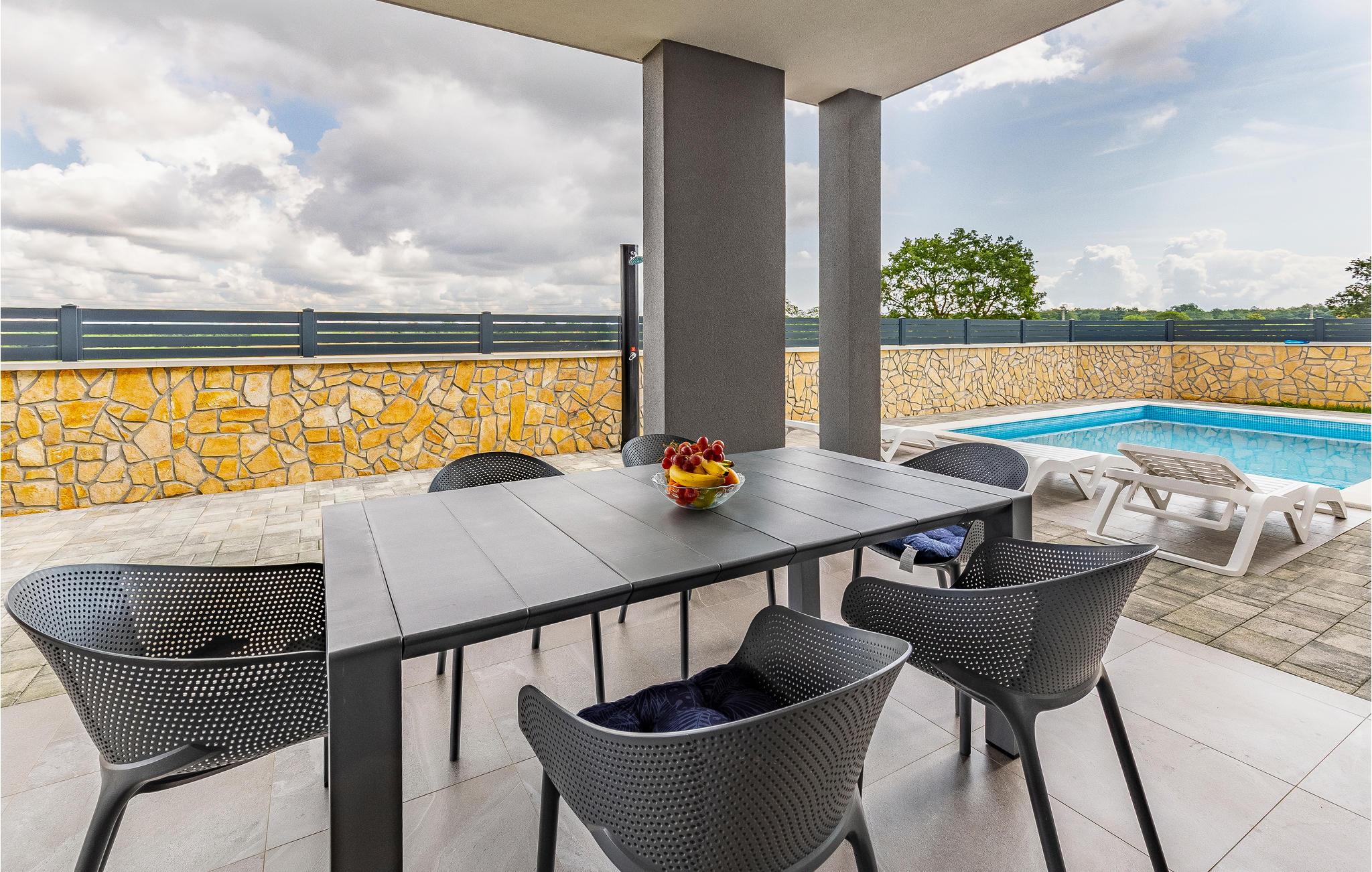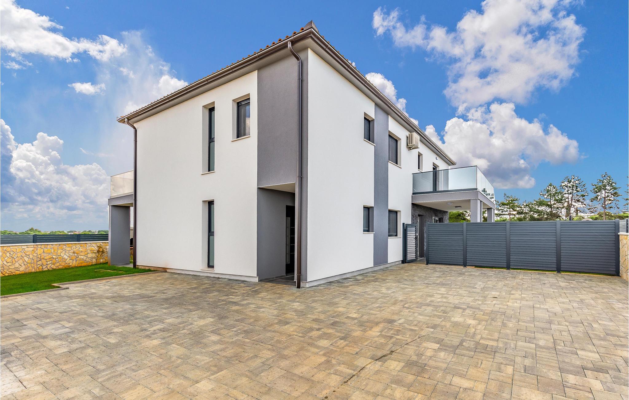 Dette moderne dobbelthus med swimmingpool byder jer velkommen uden for Pula.