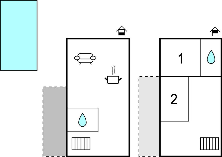 Soveværelse 14m2 (nr. 1) - 1 Soveplads. (Enkeltseng(e)). 2 Sovepladser. (Dobbeltseng(e)).
