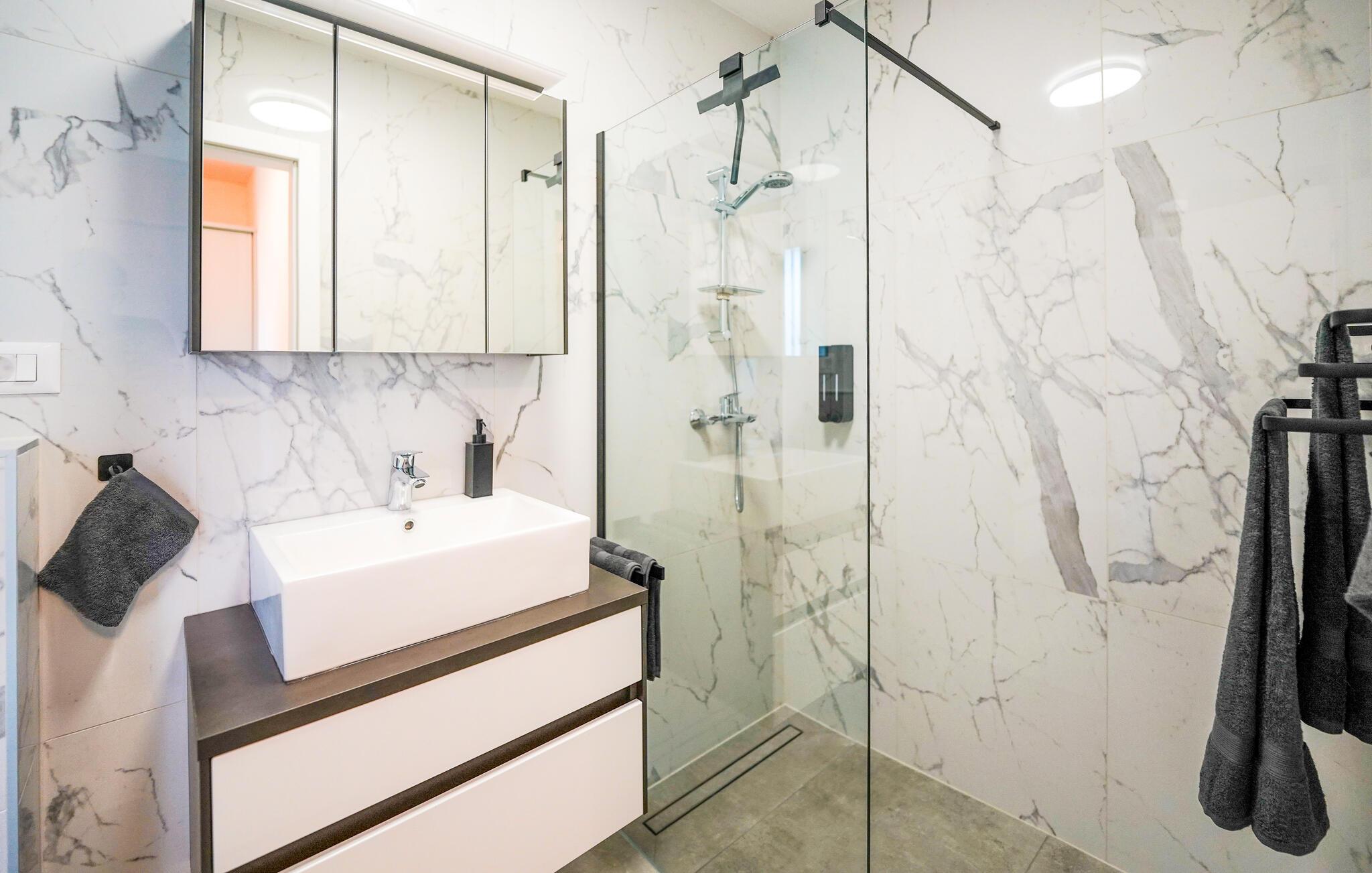 Lad jer imponere af den elegante indretning i dette moderne feriehus. Tilbered kulinariske lækkerier i det højtudstyrede køkken, og nyd jeres måltider ved det indbydende spisebord. Om aftenen kan I slappe af på den rummelige sofa i stuen og afslutte dagen med en spændende film eller en hyggelig brætspilsaften.