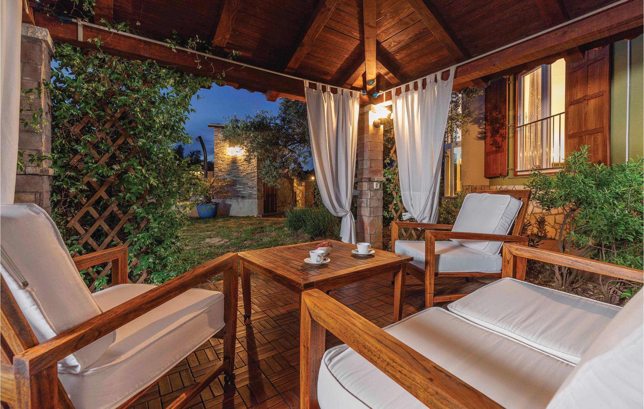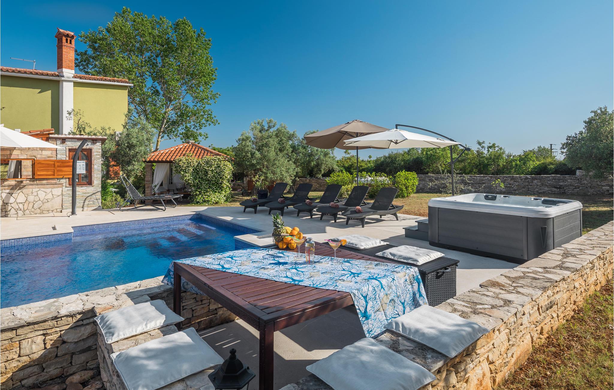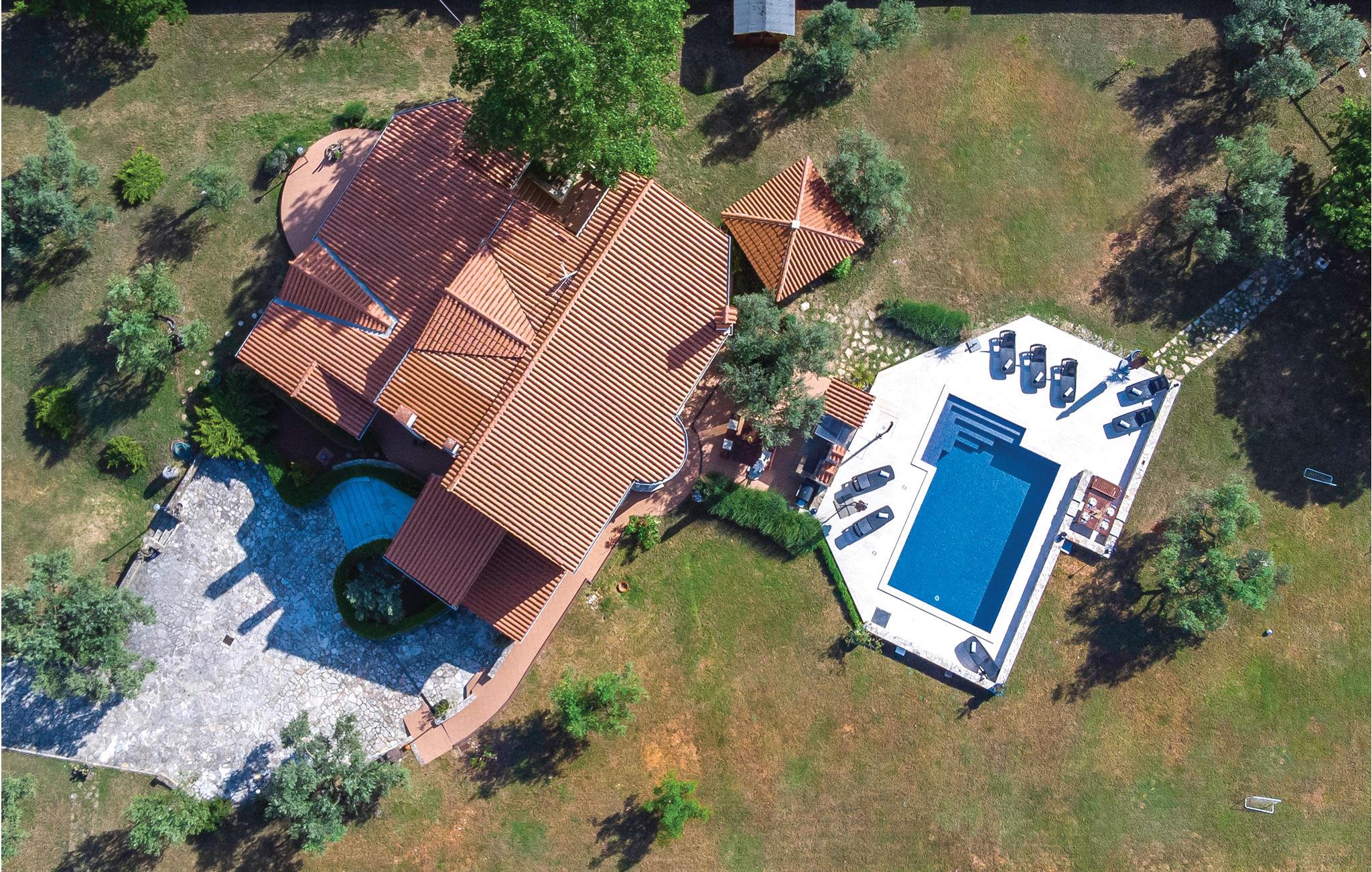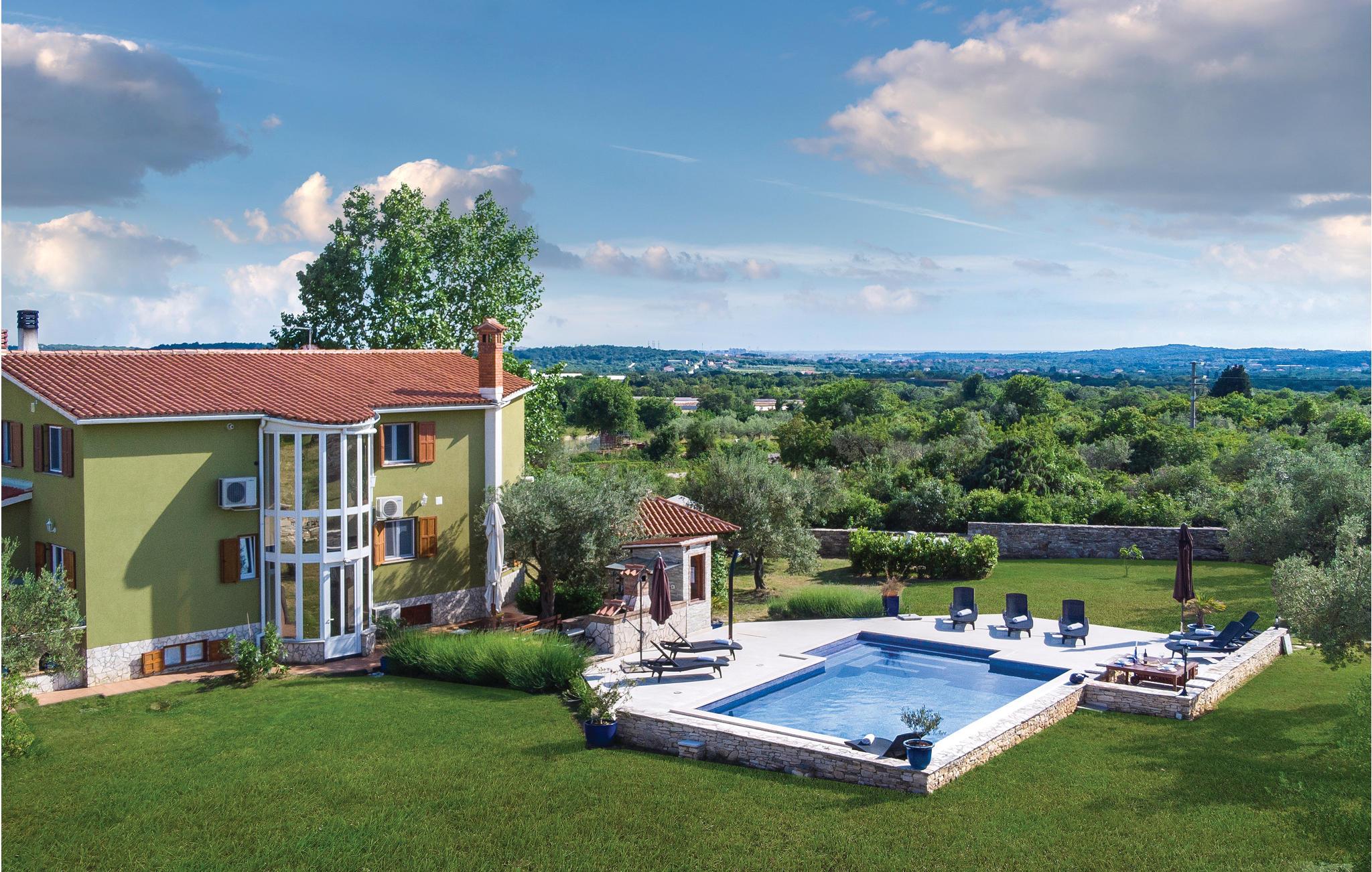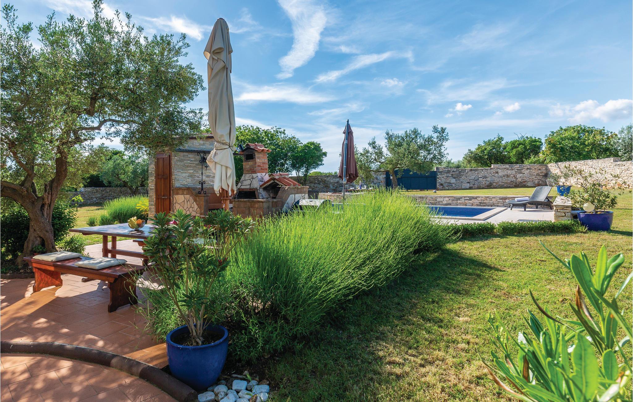 Feriehus med pool og god plads, der fordeler sig på stueplan og første sal. I haven er der oliventræer og meget grønt. Indretningen er komfortabel og praktisk hvad end I kommer som familie eller en gruppe gode venner. Der er en taverne til gæsterne, hvor I kan hygge jer sammen omkring et godt måltid men også spille dart. På den overdækkede terrasse er der et bord af sten og tilsvarende bænke til hyggelige udendørs stunder. Den høje stenmur sørger for jeres privatsfære og for børnenes sikkerhed. På grunden er der en parkeringsplads parat til jer. Se den antikke by Pula med dens kulturelle seværdigheder. Der er tre parkeringspladser på grunden.