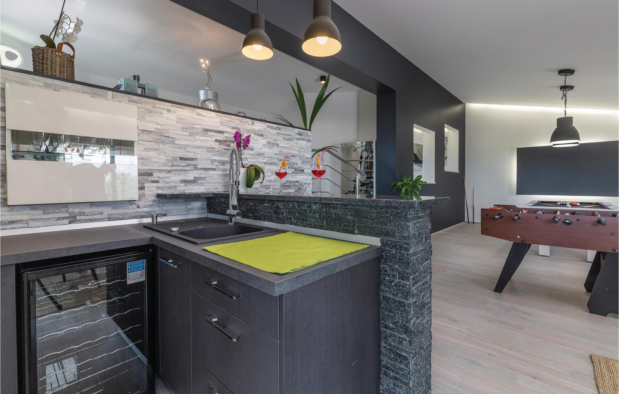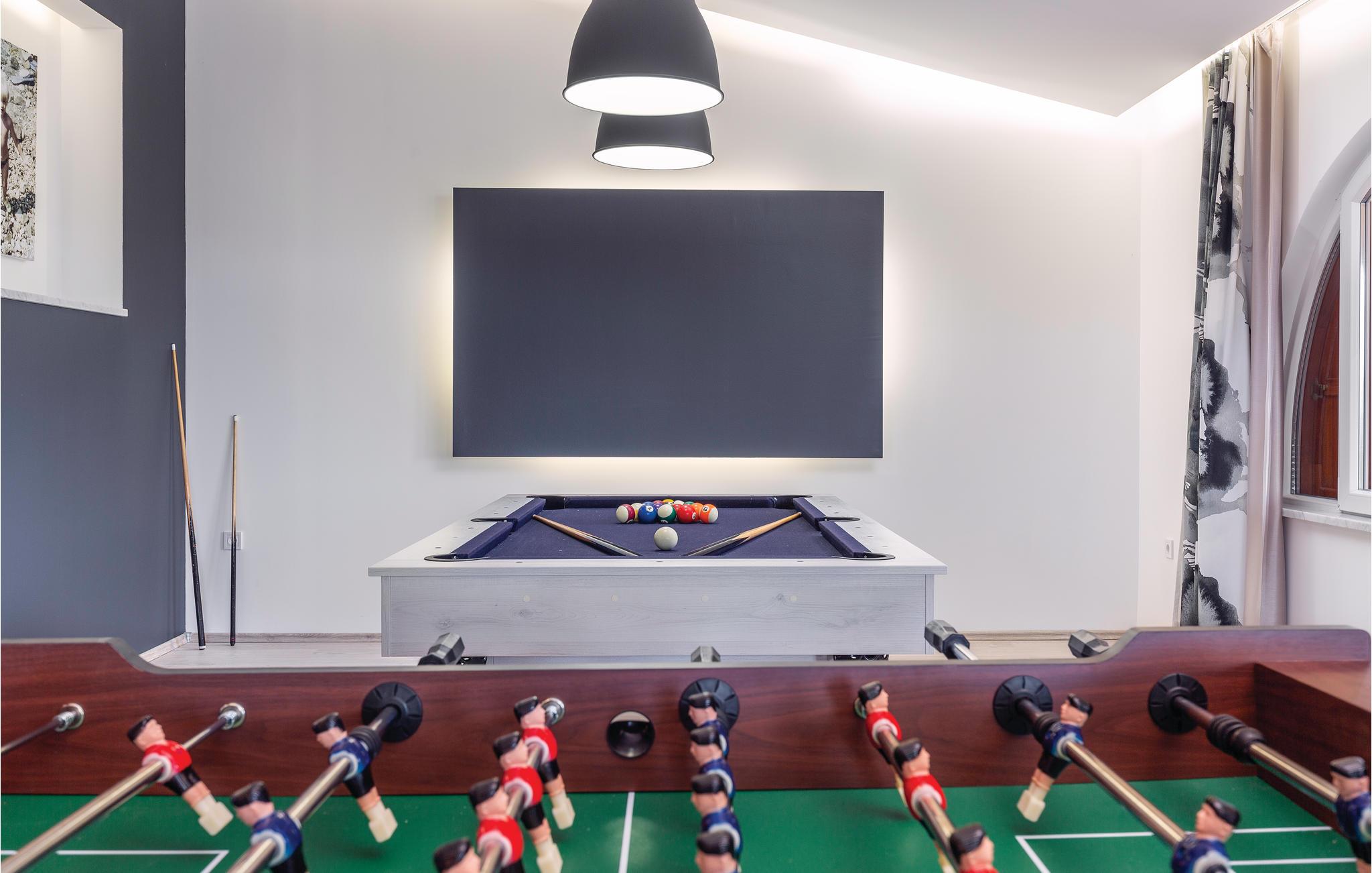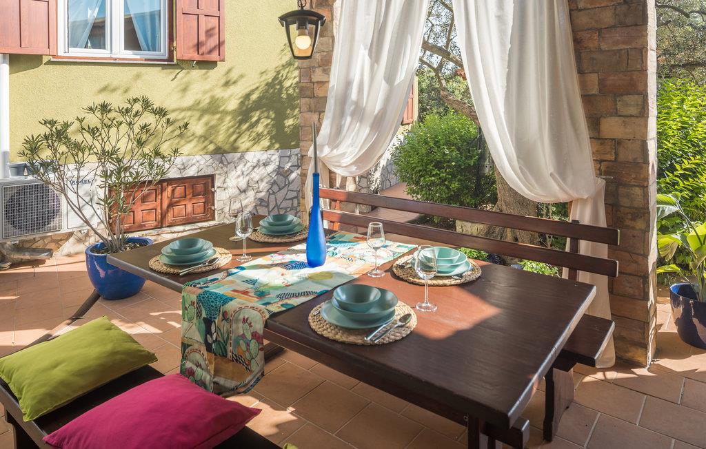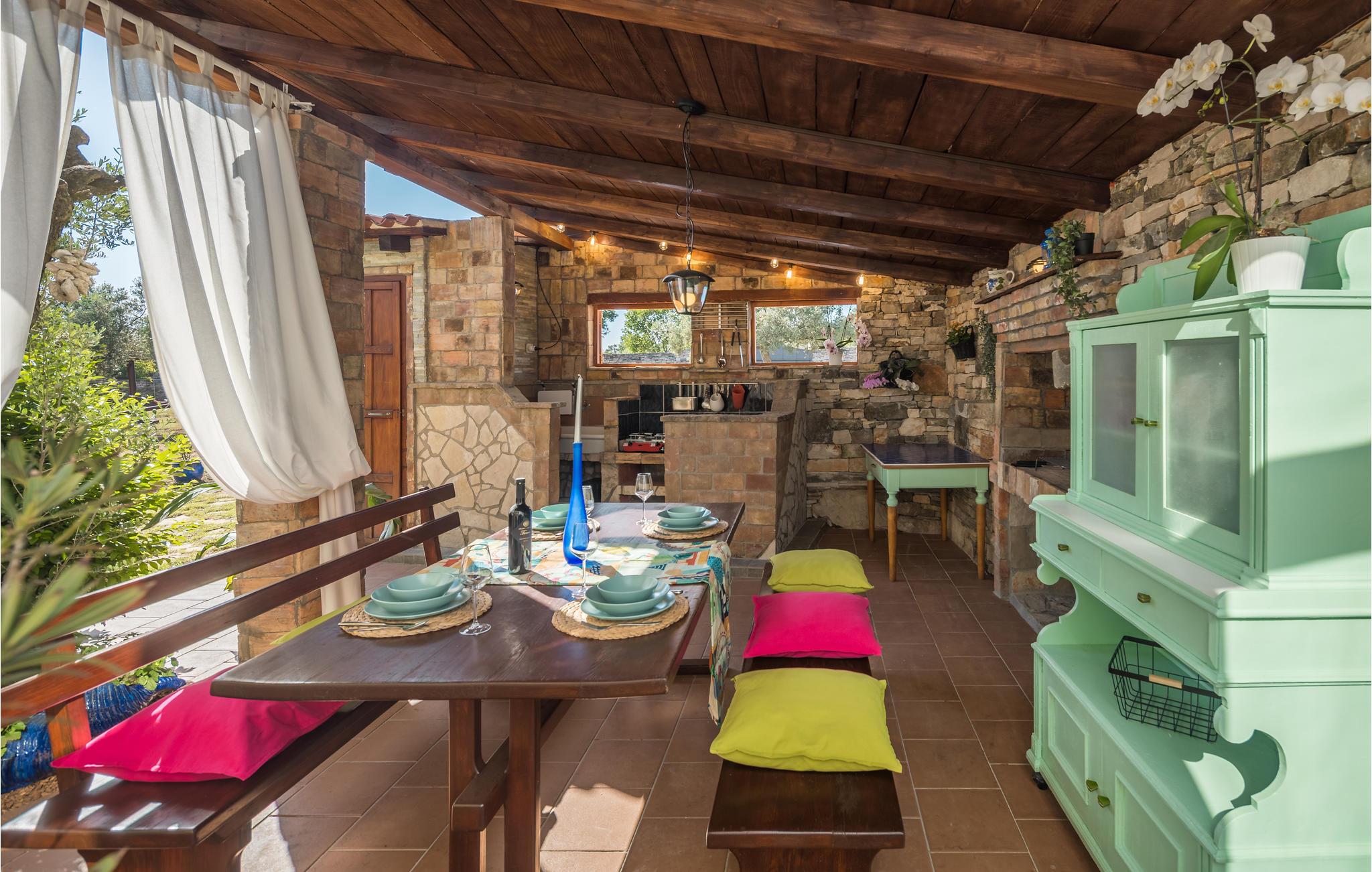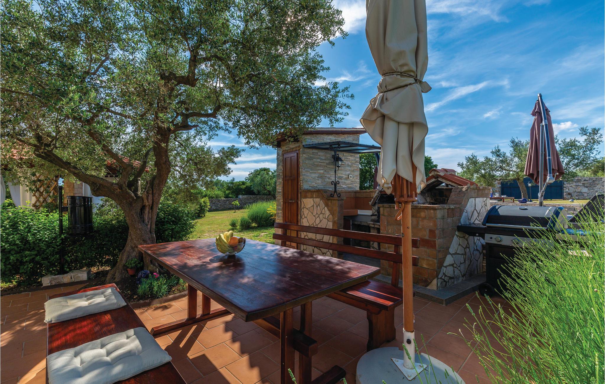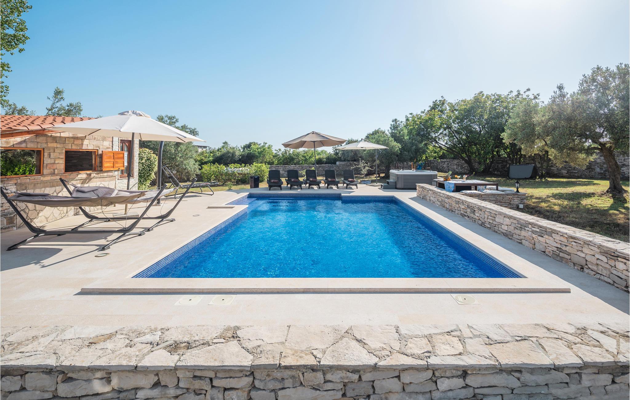 Feriehus med pool og god plads, der fordeler sig på stueplan og første sal. I haven er der oliventræer og meget grønt. Indretningen er komfortabel og praktisk hvad end I kommer som familie eller en gruppe gode venner. Der er en taverne til gæsterne, hvor I kan hygge jer sammen omkring et godt måltid men også spille dart. På den overdækkede terrasse er der et bord af sten og tilsvarende bænke til hyggelige udendørs stunder. Den høje stenmur sørger for jeres privatsfære og for børnenes sikkerhed. På grunden er der en parkeringsplads parat til jer. Se den antikke by Pula med dens kulturelle seværdigheder. Der er tre parkeringspladser på grunden.