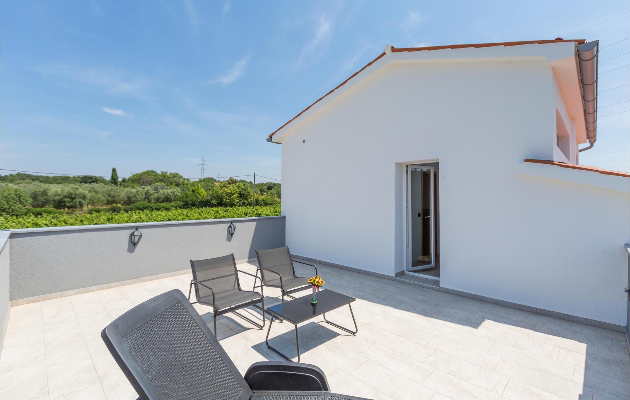 Denne feriebolig er den ene halvdel af et dobbelthus med pool, som ligger i landsbyen Galizana. Det funktionelt og elegant indrettede indre består af stueetage med opholdsstue, køkken med spisekrog, badeværelse og to soveværelser, mens første sal har yderligere et soveværelse, et badeværelse og en terrasse med udsigt til det blå hav og Brijuni øerne. Fra opholdsrummet er der adgang til en overdækket terrasse hvor også swimmingpoolen befinder sig. Blandt de oplagte udflugtsmål er byen Pula og fiskerbyen Fažana, hvorfra man kan tage på bådture til nationalparken Brijuni.