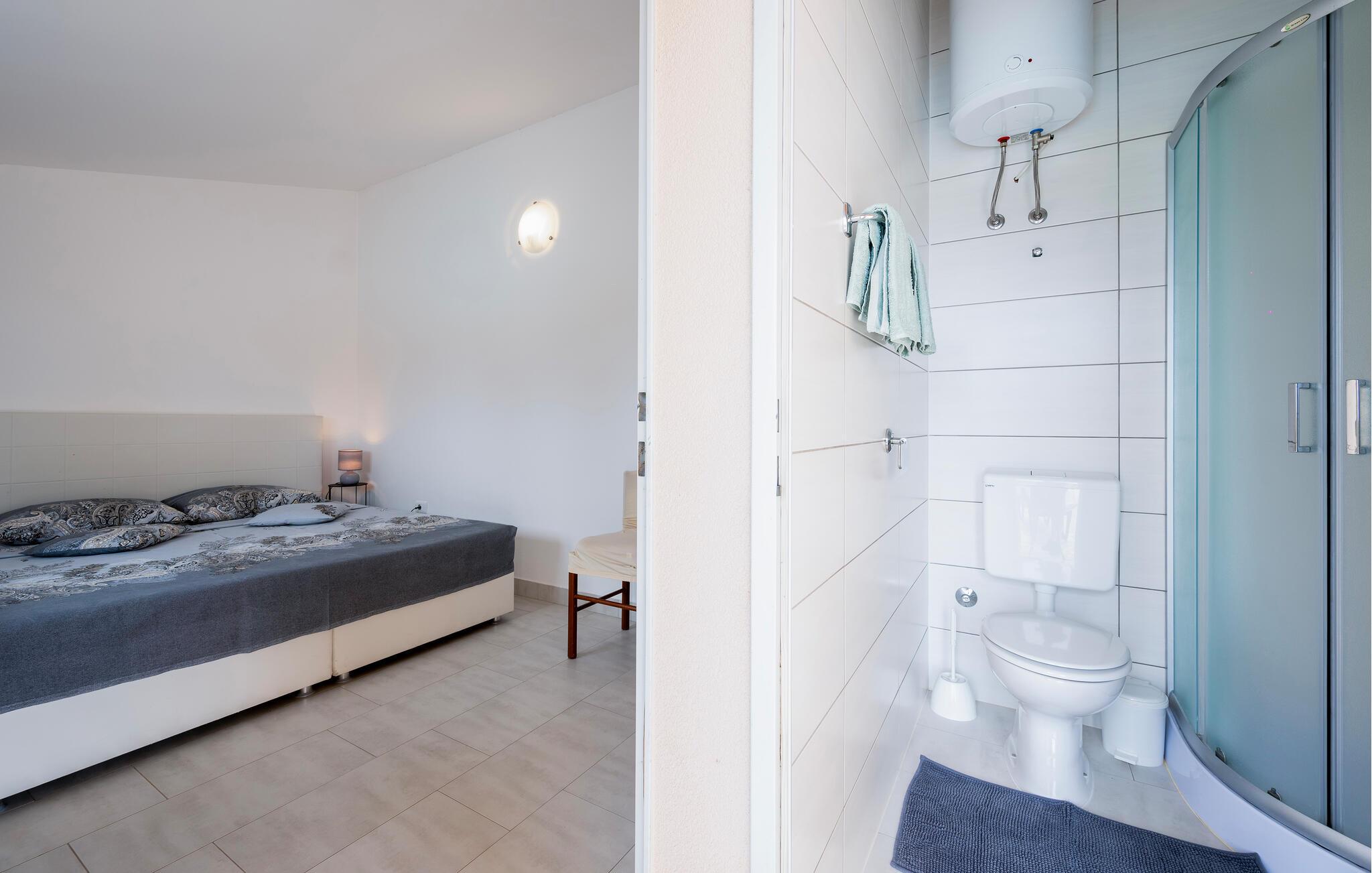 Badeværelse 4m2 (nr. 1) - WC. Varmt og koldt vand. Bruser