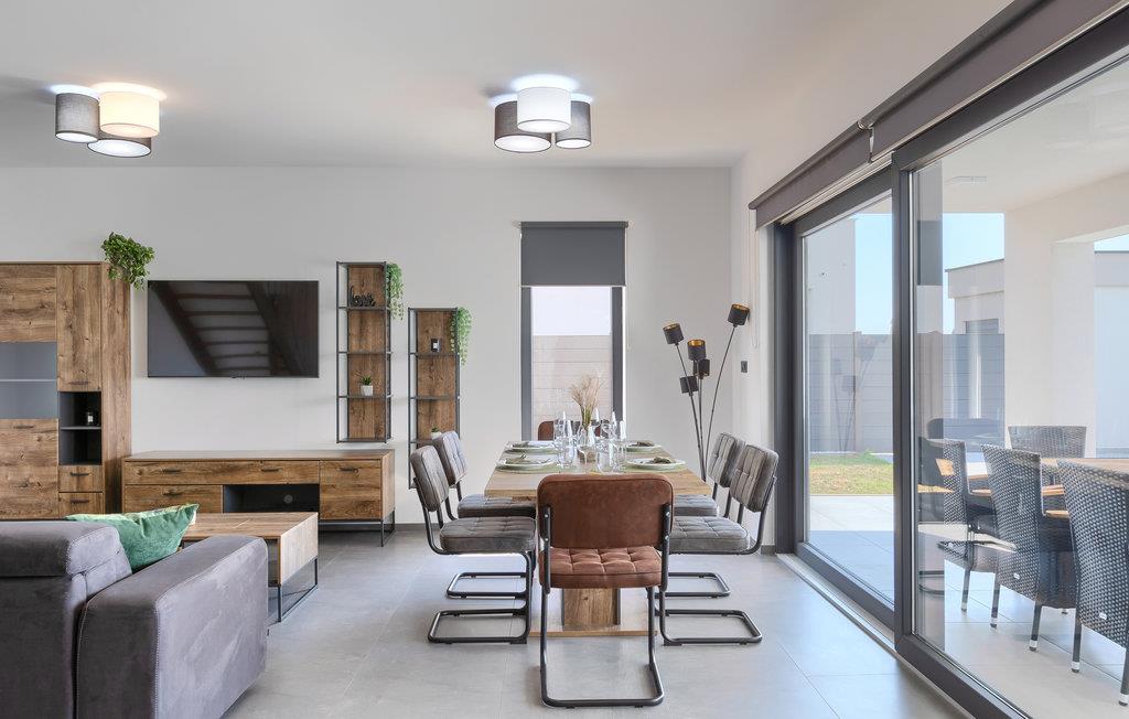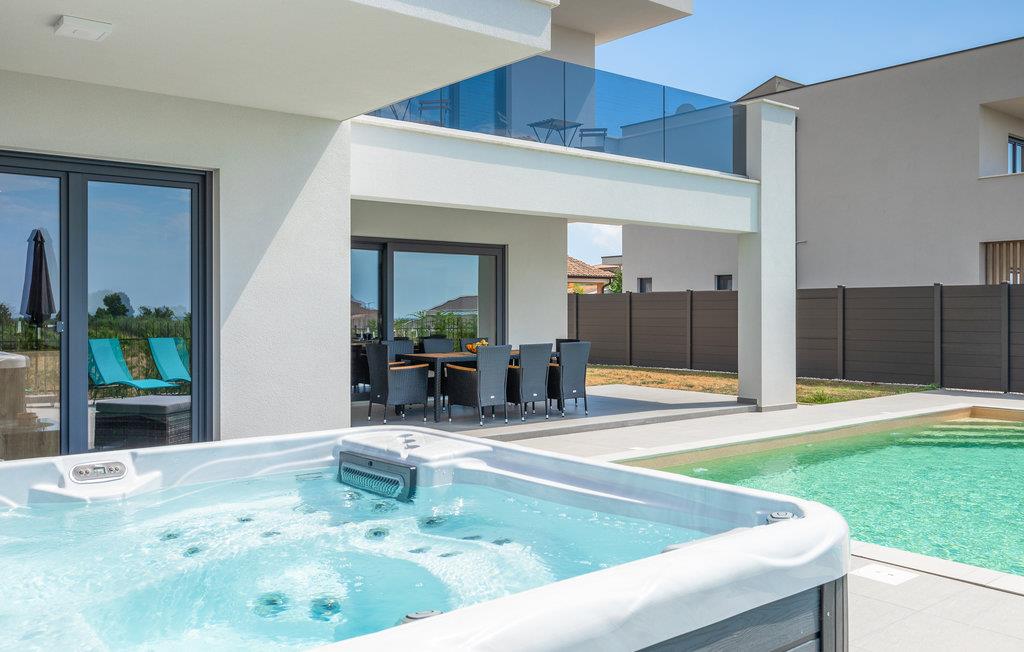I kan se frem til en masse afslapning og komfort i dette dejlige feriehus i to etager. Det attraktive interiør er af høj kvalitet, og det moderne køkken og husets varme farver skaber en rar og hjemlig atmosfære. Her skal I bare gøre det behageligt i sofaen med en god bog, mens I ser børnene spæne rundt i haven og bade i poolen. I kan også se frem til nogle dejlige timer i spabadet og til at solbade på altanerne og den dejlige tagterrase.