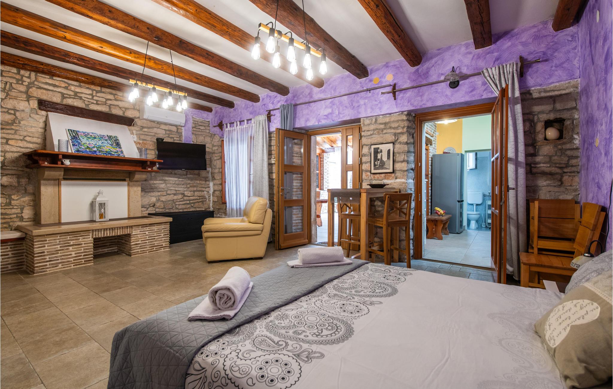 På Istriens østkyst, i den lille by Kavran ligger dette feriehus på to etager med en udendørs trappe. På første sal er der to soveværelser med tilhørende badeværelser, køkken, kombineret spise- og opholdsstue til hyggelige timer sammen. I stueplan er der endnu et soveværelse med badeværelse og et komplet udstyret køkken, med udgang til en dejlig overdækket terrasse med en grill. Her er der dejligt at være fra tidligt til sent. I nærheden ligger Duga Uvala, hvor I har mulighed for at få forskellige wellness behandlinger. Holder I af natur og ro, gerne langt væk fra masseturismen, så er dette hus det rette valg.