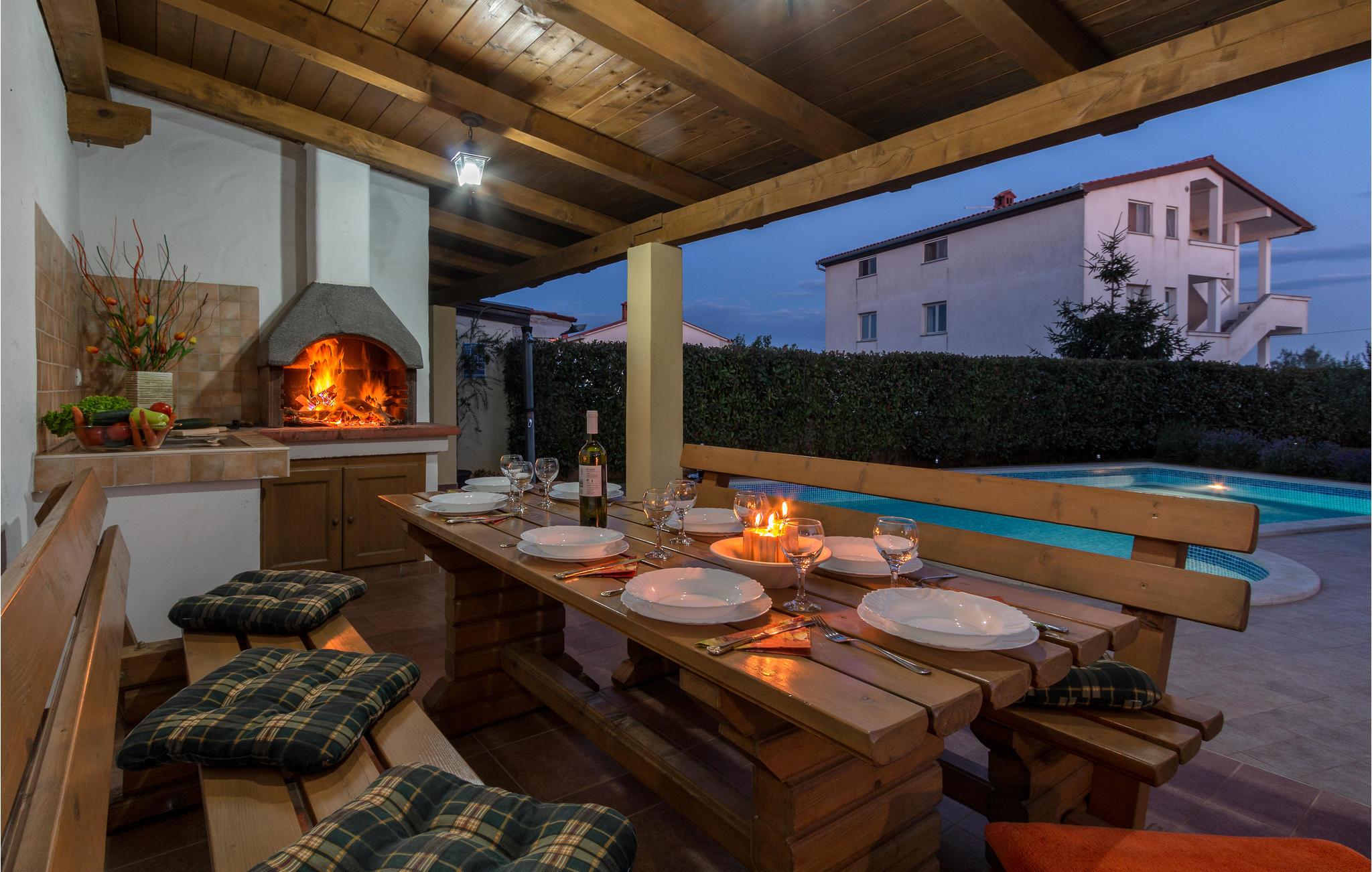 I den lille by Loborika tæt på Pula ligger dette feriehus med sin helt private pool, der inviterer til vandsjov og svømmeture, lige når I har lyst. Det indre er moderne indrettet og giver jer den nødvendige komfort til en behagelig ferie. Denne bolig har tre soveværelser og er ideelt til en større familie eller en vennekreds. På den åbne og overdækkede terrasse kan I nyde aftentimerne og forfriske jer i poolen. Kør også til den antikke by Pula og turiststederne i omegnen. Især amfiteatret i Pula er en populær seværdighed - er I heldige så kan I deltage i en koncerte eller anden forestilling under åben himmel.