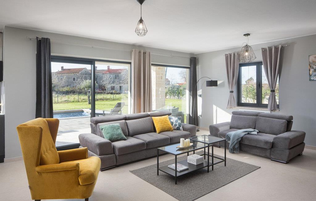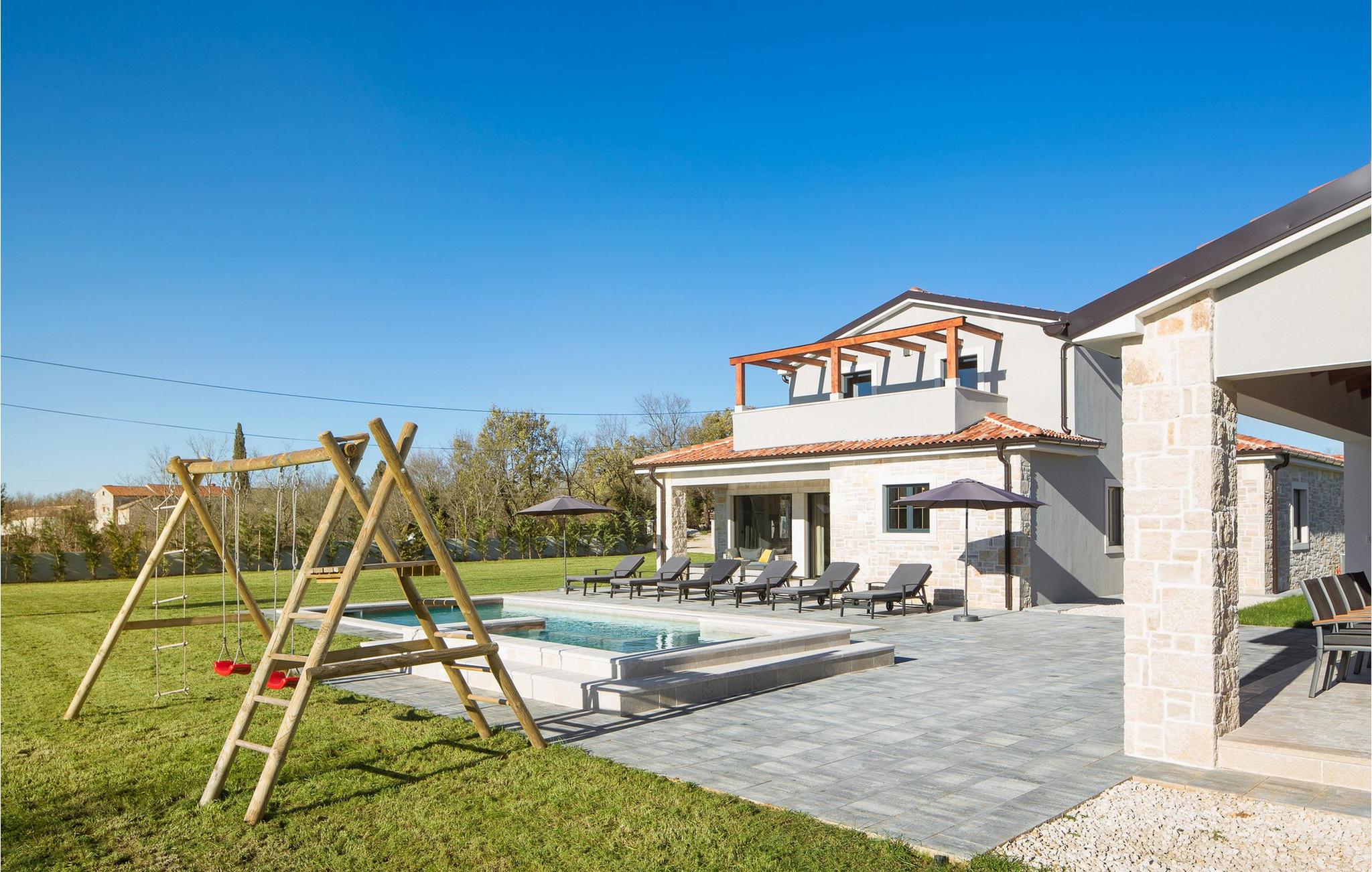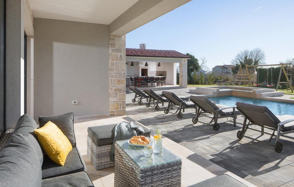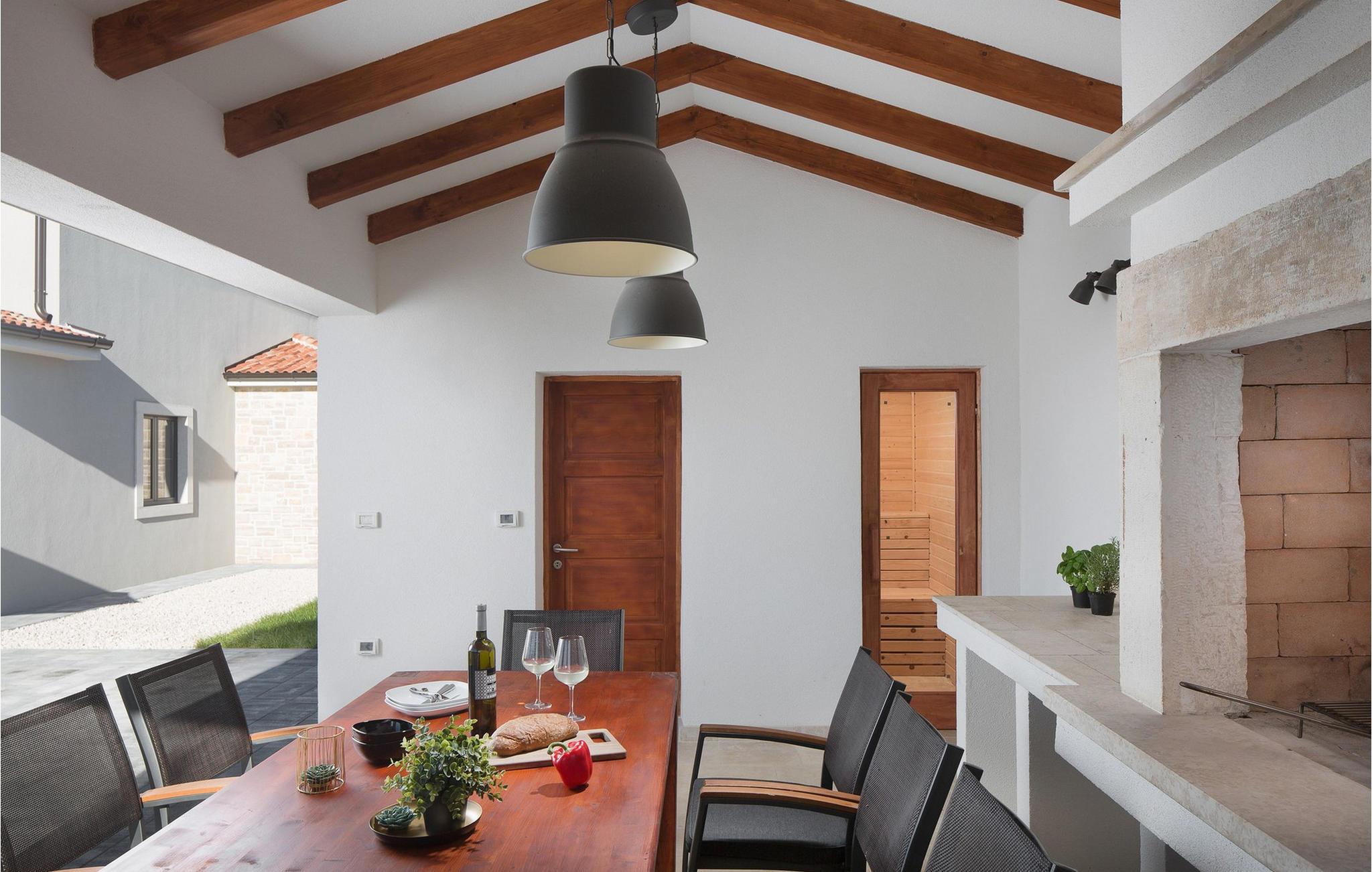 Den smukke Villa Korat i den 3.000 år gamle istriske by Marcana kombinerer fredelige omgivelser og natur med nærheden til havet, 12 kilometer væk. Denne moderne villa består af 4 soveværelser, 3 med dobbeltsenge og et værelse med to enkeltsenge, 6 badeværelser med bruser og separat toilet. I stueetagen er der et fuldt udstyret køkken, en luksuriøst møbleret stue med en fold-out tre-personers, TV og Xbox konsol, udstyret til kvalitets sociale sammenkomster. I den fuldt indhegnede have er der en smuk 42 m² swimmingpool med hydromassageudstyr. Poolen er omgivet af liggestole og en mur og hæk giver ekstra privatliv. Villaens særlige tilbud inkluderer en sauna, 5 parkeringspladser og for de mindste gæster en legeplads, hvor børn kan more sig på trampolinen, bordtennis eller badminton, der er også et volleyballnet og fodboldmål. Stedet Marcana er ideelt for alle gæster, der leder efter en rolig ferie væk fra folkemængderne og alligevel tæt på havet. Oplev skønheden i denne lille by, oplev historiske monumenter, regionale specialiteter og naturprodukter fra lokalbefolkningen i deres restauranter og taverner, og lad dig forkæle med skønheden i det kontinentale Istrien. Hvis du ønsker at tilbringe en fredelig og afslappende ferie, er Villa Korat det rigtige valg for dig. Bemærk venligst, at denne ejendom ikke accepterer ungdomsgrupper eller polterabends. En ungdomsgruppe i denne ejendom består af personer under 30 år. Book ikke denne ejendom, hvis du er en ungdomsgruppe eller polterabend, da din reservation vil blive afvist efter reservationen, hvilket også kan være tilfældet ved ankomst til overnatningsstedet eller under dit ophold, og du vil ikke modtage en refusion.