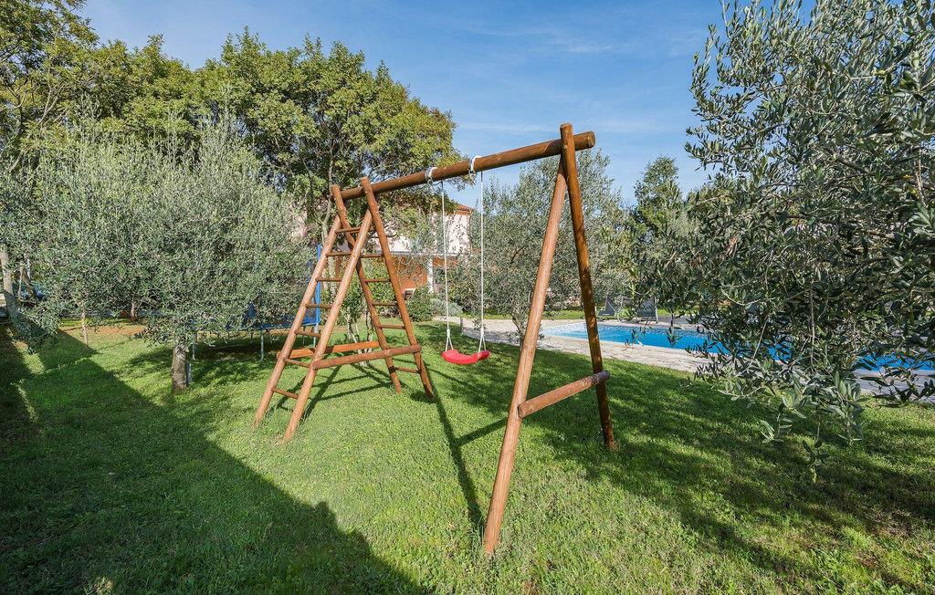 Den blide duft af lavendel er kendt for sine gavnlige virkninger. Det er ikke kun beroligende og afslappende, men skaber også en særlig atmosfære af lethed. Nyd alt dette i Villa Lavanda og oplev en middelhavsafslappende sommer. Denne nybyggede villa er omgivet af natur og beliggende nær bugten Duga Uvala, ikke langt fra de smukke strande og det krystalklare hav. I stueetagen er der en lys og åben planløsning og spisestue med udgang til terrassen, hvor du kan nyde udsigten ind i det grønne i den smukke middelhavshave. Et badeværelse fuldender stueetagen. Trapper fører dig til første sal, hvor det andet badeværelse og tre soveværelser er placeret. Op til seks personer kan hvile der. En privat pool med separat bassin, som har en massagefunktion, sørger for afkøling på sommerdage. Du kan slappe af på liggestole i oliventræernes naturlige skygge. Børn vil helt sikkert nyde den store gynge, men voksne vil også finde Hollywood-gyngen på terrassen fornøjelig. Kan du forestille dig at slappe af der med en bog og en god drink? Villaen er beliggende i landsbyen Pavicini lige uden for Duga Uvala. Duga Uvala er en beskyttet bugt på østkysten af Istrien mellem de større byer Labin og Pula. Dette område af Istrien er generelt meget uudviklet og giver en lang strækning af uspoleret kystlinje. Inde i landet fra kysten er dejlige landlige landsbyer. Lokale veje og gårdstier fører ned til kysten og dens mange bugter og vige på den fredelige Rasa-munding og Duga Uvala-bugten. I selve Duga Uvala-bugten er der et hotel, strandcaféer og et pizzeria. Hotelkomplekset omfatter et wellness-center, massage, aromaterapi og fitnesscenter. Der er sportsfaciliteter til rådighed samt natklubber og diskoteker. Den vigtigste by i området er Pula, men der er butikker og restauranter i flere af landsbyerne og små byer i denne region.