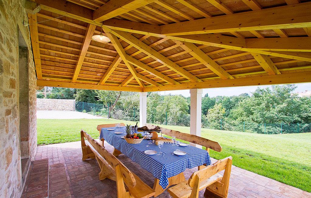 Denne smukke og renoverede Villa Agra nær Pula kan rumme op til 12 personer og er et ideelt feriested for en stor familie. Villaen består af 2 bygninger og en smuk rummelig indhegnet have, hvor du finder en swimmingpool, der vil være forfriskende i de varme sommermåneder. Den mindre bygning har overdækket udendørs spiseplads, mens der er indbygget grill og bordtennis inde i bygningen. Hovedbygningen i Villa Agra har 6 soveværelser og to trapper, der fører op til soveværelserne og badeværelserne. Alle soveværelser er ovenpå. Der er 3 soveværelser og 2 badeværelser på hver side af trappen. Et af værelserne har dobbeltseng og eget badeværelse, mens de to andre værelser, det ene med dobbeltseng og det andet med to enkeltsenge, deler badeværelse med bruser. Der er også et ekstra badeværelse i stueetagen med bruser og badekar. Et smukt køkken, hvor du har alt hvad du behøver for at tilberede lækre måltider og en spiseplads til 12 personer, er placeret i stueetagen. Det tilbyder også en separat tv-stue med pejs og billardbord. Huset er fuldt airconditioneret. Denne smukke Villa Agra ligger i en lille landsby Marcana som ligger nord for Pula. Selve beliggenheden er ideel til en afslappende familieferie. Kun 8 kilometer væk ligger Vodnjan, som byder på en række toprestauranter med mange specialiteter. Stranden ligger kun 10 kilometer væk fra villaen, og du kan nemt køre hurtigt til din destination, og du kan vælge mellem østkysten (Duga Uvala) og vestkysten (Fazana). Du kan også ride i nærheden, og for dem med en eventyrlyst, er Glavani adrenalinparken kun et par minutter væk i bil.
