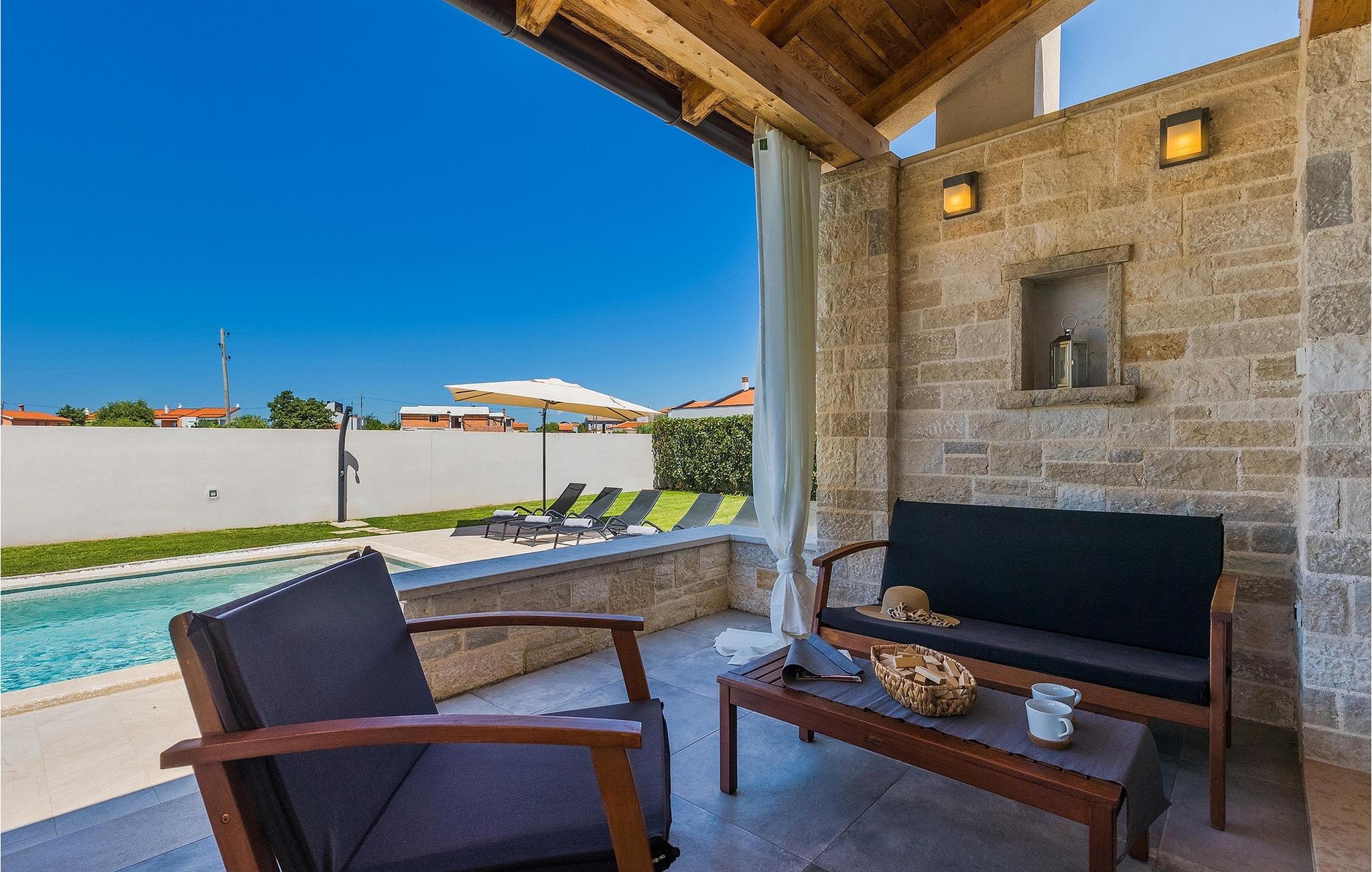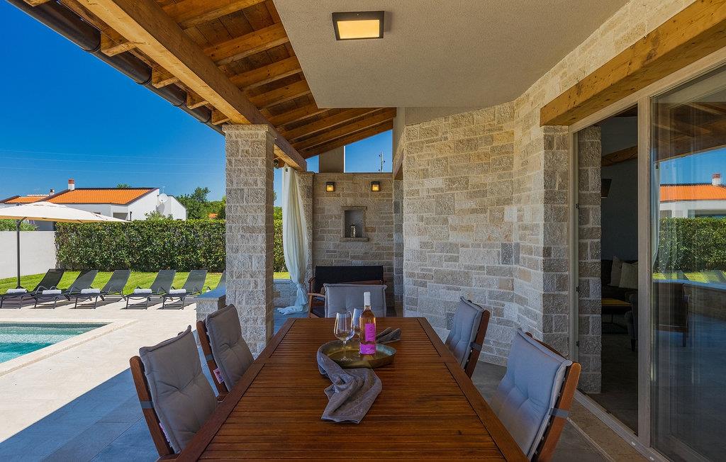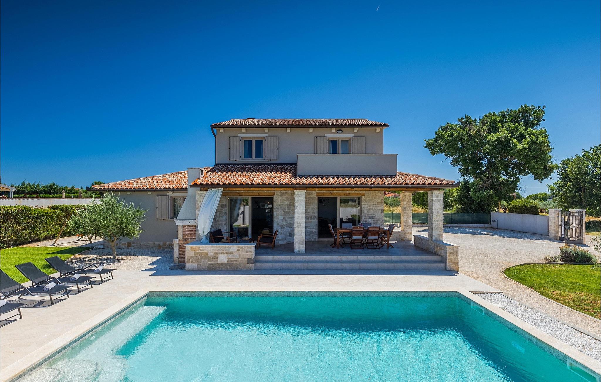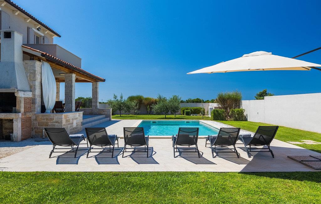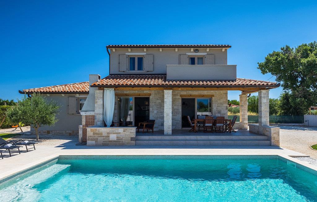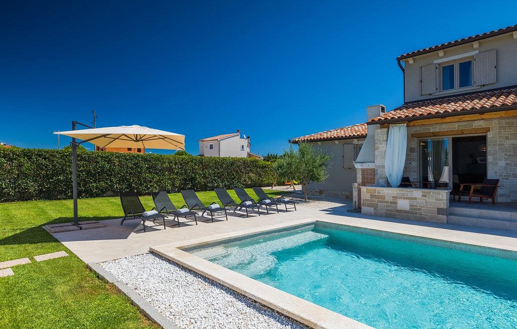 Villa Prato er en smuk villa i det sydlige Istrien nær Pula. Villaen er moderne, meget hyggelig og charmerende indrettet. Stueetagen af villaen har et fuldt udstyret køkken og stue med spiseplads, som byder på en smuk udsigt over haven og poolområdet. På første sal i villaen er der fire soveværelser, hvoraf tre er dobbeltværelser og det ene er et soveværelse. Første sal har også tre moderne badeværelser og en terrasse med en enestående udsigt over det smukke istriske landskab. I den store have er der en legeplads og en 32 m2 privat swimmingpool, som byder på forfriskninger på varme sommerdage. På den overdækkede del af terrassen er der en spiseplads, hvor du kan nyde velsmagende retter og et glas traditionel istrisk Malavazija. Hvis du ønsker at tage en pause fra hverdagen, er Villa Prato det ideelle valg for din familie og venner. Dette smukke feriehus ligger nær den lille landsby Loborika, på den sydlige side af halvøen Istrien. Placeringen af villaen tilbyder en perfekt balance mellem fred og privat nydelse væk fra en storby og turistskarer, matchet med kort afstand til alle større halvø-byer.