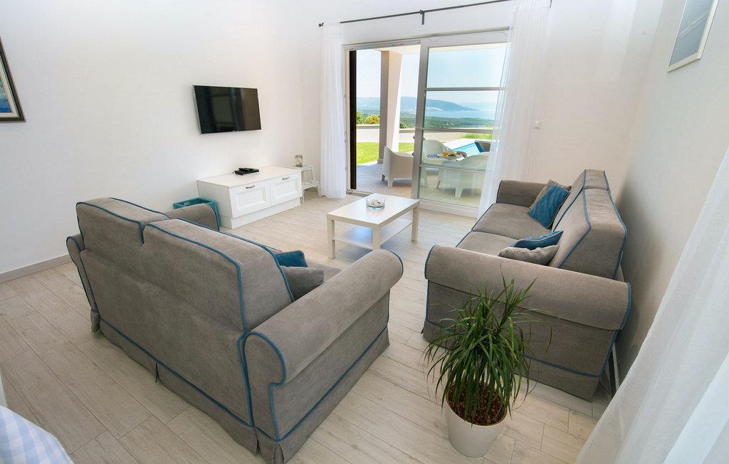 Fra den rummelige have er der en fænomenal udsigt over havet, øen Cres og de omkringliggende bakker. Det er op til dig at vælge, hvor du vil tilbringe det meste af din tid. Måske på den overdækkede terrasse med udendørs spiseplads, eller måske på en af liggestolene ved siden af den private pool og nyder udsigten.