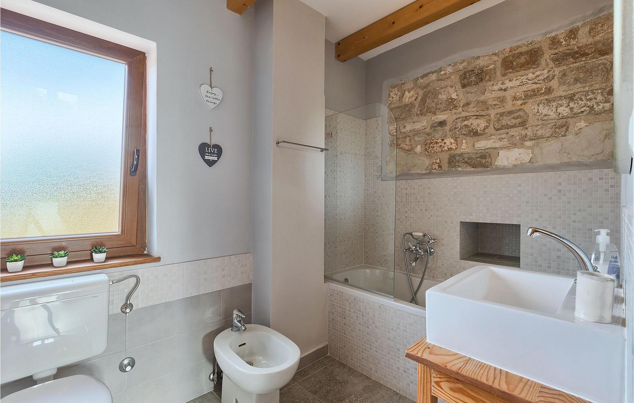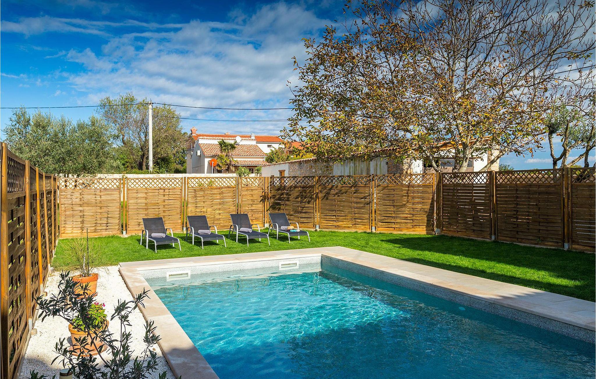 Villa Casa Martini, beliggende midt i idylliske landlige omgivelser, vil charmere dig med sit udvendige og indvendige udseende. Ejendommen er helt lukket for at sikre, at din ferie er fredelig og uforstyrret. Haven er centreret omkring poolen, ideel til at slikke solen på varme og solrige dage. Casa Martini var indrettet med kærlighed og opmærksomhed for detaljer, der kombinerede gammelt og nyt, traditionel, rustik stil med moderne bekvemmeligheder såsom Wi-Fi og A/C. Villaen har 2 etager og kan rumme op til 4+2 gæster. Hyggelig stue, veludstyret køkken med spiseplads og et badeværelse er fordelt over villaens stueetage, mens værelser samt to badeværelser er placeret på øverste etage. Til din rådighed er en taverna og et fitnessrum, begge placeret i huset ved siden af. Begge områder kan bruges efter aftale med ejerne. Villa Casa Martini er beliggende i en lille landsby kun en kort køretur fra byen Pula og dens smukke strande. Ejendommen er omgivet af grønne enge og olivenlunde og da der ikke er tegn på hektisk byliv, er beliggenheden ideel til en familieferie. Casa Martini tilbyder et fredeligt ophold midt i fantastiske istriske landskaber velegnet til aktiviteter såsom cykling eller cykling, men her kan du også prøve at ride på en af ejendommene i nærheden. Efter anmodning kan ejerne give dig hjemmelavede dagligvarer, æg, årstidens frugt og grøntsager. Smukke istriske byer såsom Rovinj, Porec, Motovun, Labin og Rabac er let tilgængelige fra dette område. Istrien er en virkelig fantastisk region, kendt for sin naturlige skønhed, rige kultur og fremragende køkken. Ejerne bor ved siden af og giver gerne yderligere oplysninger.