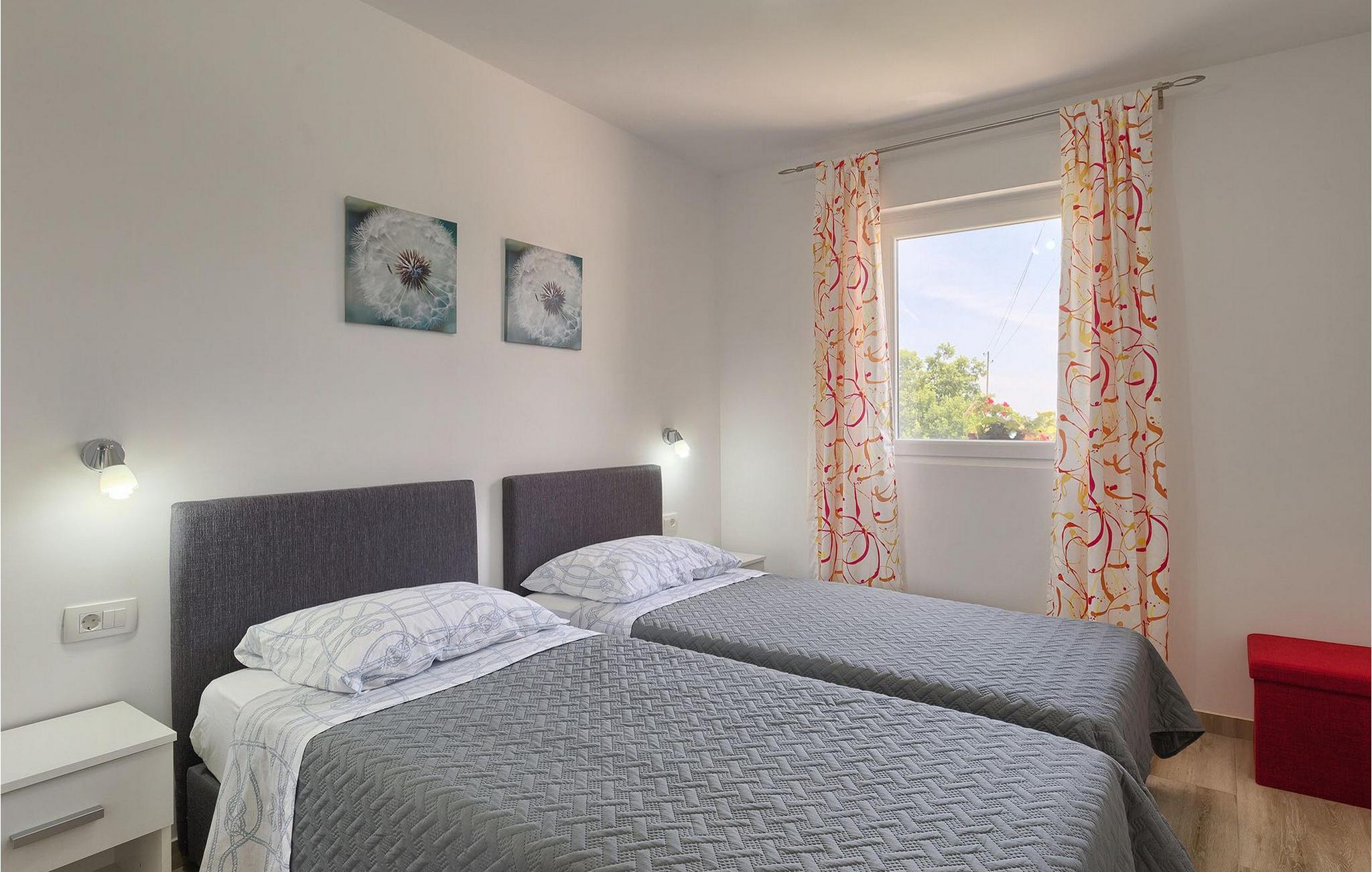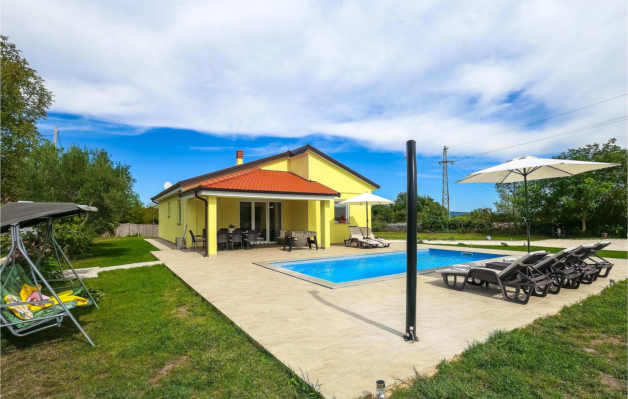 Villa Fiorina er en dejlig ferievilla, beliggende i en lille istrisk landsby Filipana og omgivet af grønne marker, som tilbyder en rigtig dejlig ferie for sine gæster. Et par kilometer adskiller denne villa fra den smukke istriske kyst, men hvis du foretrækker at bo i din villa, kan du finde en forfriskning i den private pool omgivet af liggestole. Villaen ligger på en ganske stor grund, hvor I kan spille volleyball eller lade børnene nyde trampolinen og gyngerne. Den overdækkede terrasse med spisebord er hvor du kan nyde frisklavede måltider fra grillen. Villaen er et hus i stueetagen; spise- og opholdsstuen er forbundet med det fuldt udstyrede køkken. Resten af huset er opdelt i 3 soveværelser, 2 badeværelser og et separat toilet. To soveværelser har en dobbeltseng, mens det resterende soveværelse består af to enkeltsenge. Denne dejlige, smagfuldt indrettede villa vil tilbyde dig en virkelig ubekymret ferie i Istrien. Dette smukke feriehus ligger i den lille landsby Filipana, på den sydlige side af halvøen Istrien. Placeringen af villaen tilbyder en perfekt balance mellem fred og privat nydelse væk fra en bysus og turistskarer matchet med kort afstand til alle større halvø-byer. Pula, den største by i Istrien, kun 18 kilometer væk fra Villaen er verdensberømt for sit fantastiske Colosseum, et gammelt amfiteater, der blev bygget i det 1. århundrede, mens den romerske kejser Vespansian regerede denne del af verden. Udover kulturelle og historiske skønheder byder Istrien på en unik gastrooplevelse, velkendt i denne del af Europa. Hjemmelavet istrisk prosciutto (pršut), vin, istrisk pasta (fuži) er blot nogle få af mange lækre gastro-fornøjelser, Istrien kan tilbyde for en ægte oplevelse af middelhavshjemmelavet køkken. Istrien-halvøen er også hjemsted for en af de smukkeste nationalparker i denne del af Europa - Brijuni. Det kan nås med båd med afgang fra Fažana, kun 16 kilometer væk fra villaen. En bil anbefales.
