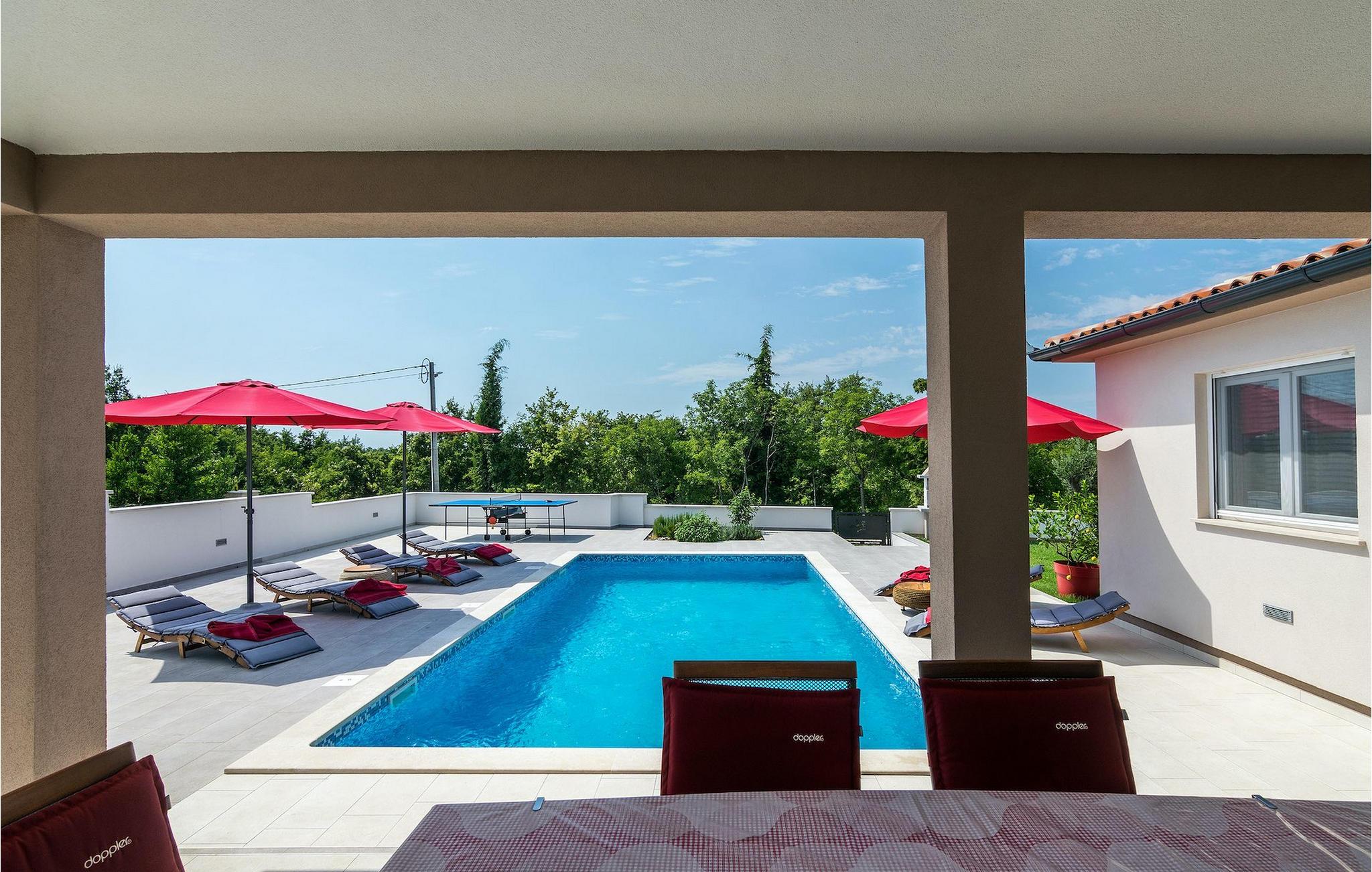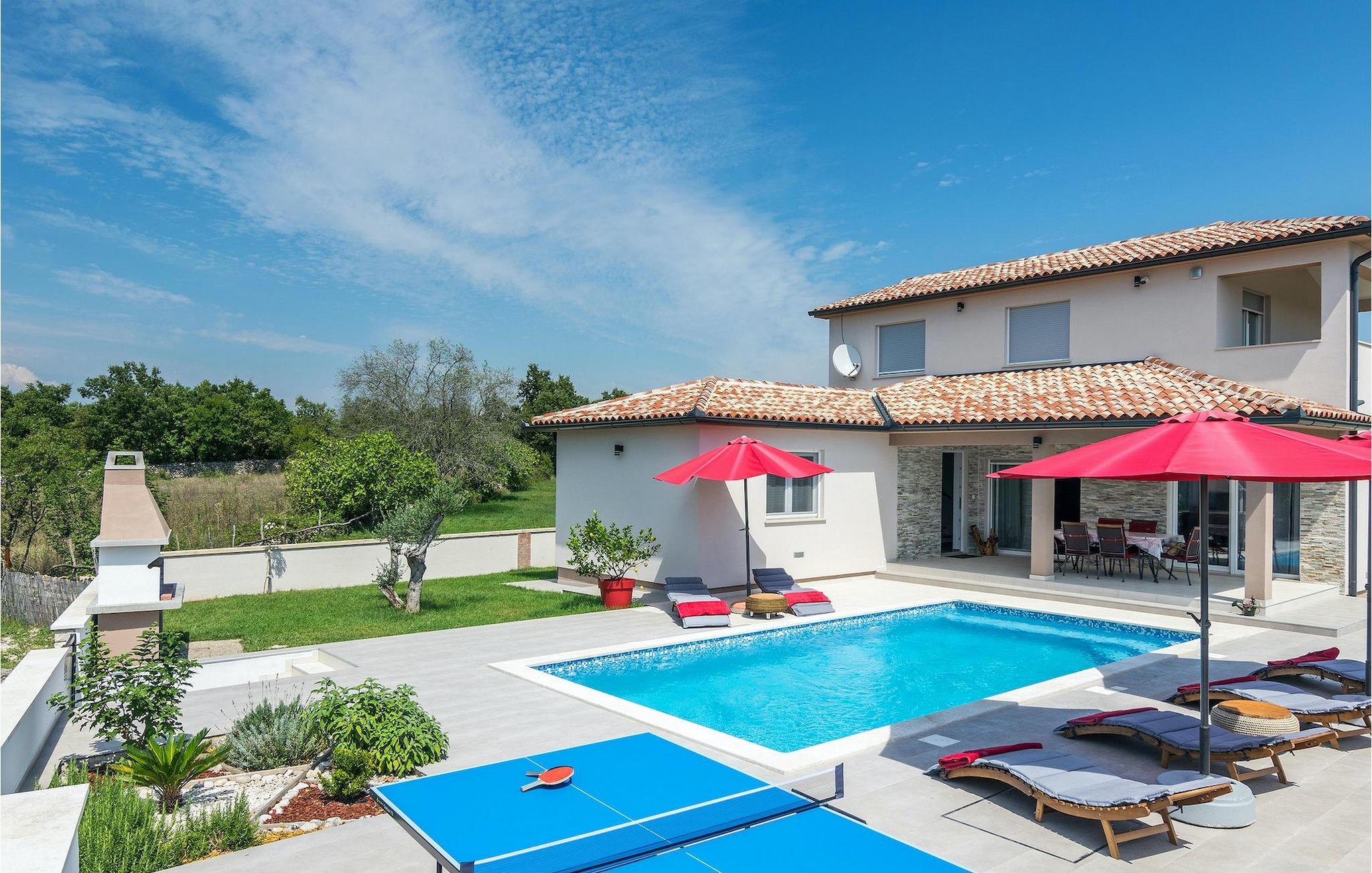 Wenn Sie im Freien kochen und speisen möchten, können Sie den Außenbereich dieser Villa mit überdachtem Essbereich und Grill nutzen. Und nicht zu vergessen ist der einladende Privatpool mit Sonnenliegen, der während der warmen Sommermonate dringend benötigte Erfrischung bietet. :)Die wunderschöne Villa Lena befindet sich in einem kleinem Dorf in Istrien namens Krvavici. So wie die Mehrheit der istrischen Dörfer, ist das Dorf Krvavici auch von atemberaubender Natur, grünen Hügeln und Feldern umgeben, weswegen seine Lage ideal für einen entspannenden Urlaub ist. Falls Sie sich für historische Städte interessieren, ist Pula nur eine kurze Fahrt von der Villa entfernt.
