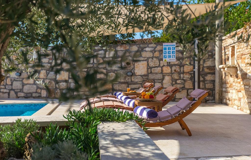 Villa har en dejlig have med pool og tilhørende hydromassagekar, hyggelige liggestole, udendørs køkken og udendørs spiseplads. Her er til rådighed en kulgrill og traditionel brændeovn. Dette er et perfekt sted at tilberede lækre måltider til din familie og at blive fortrolig med istrisk flair.