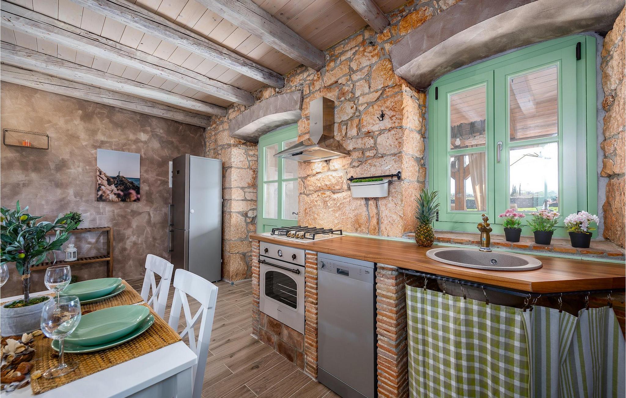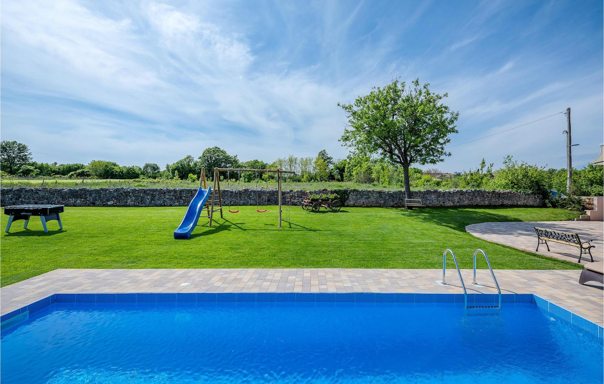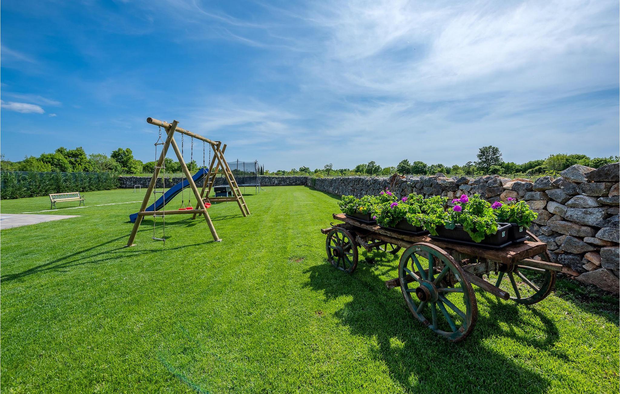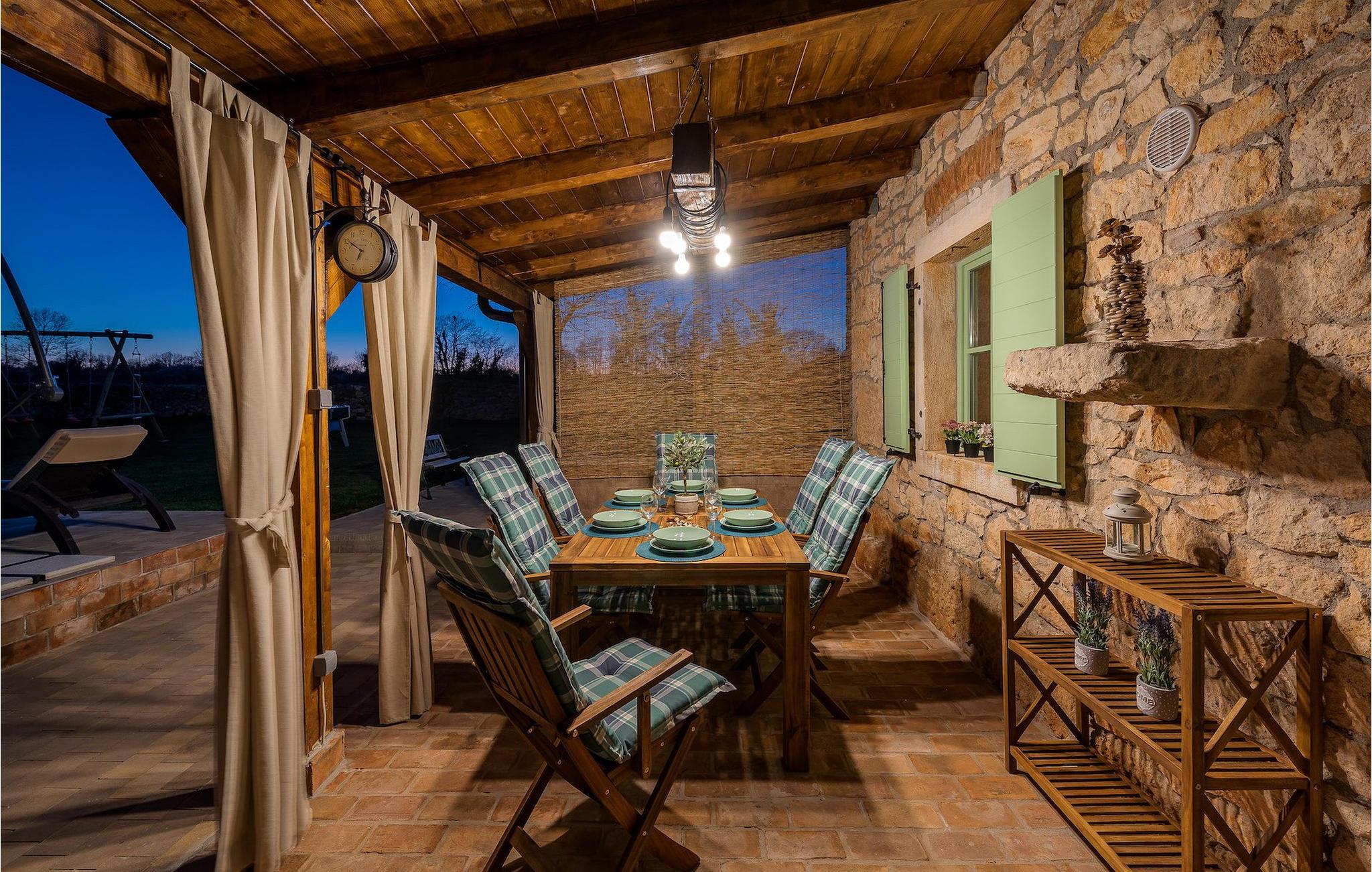 Das Interieur ist mit viel Liebe und Achtung zum Detail eingerichtet und ist in zwei Etagen aufgeteilt. Die zwei gemütliche Schlafzimmer mit Doppelbett und TV befinden sich im Obergeschoss, während Platz für zwei zusätzliche Personen auf dem Schlafsofa im Erdgeschoss ist. Die Küche ist völlig ausgestattet und das Wohnzimmer verfügt über SAT-TV und Stereoanlage. Diese Villa wird all diejenigen zufrieden stellen, die sich auf den Sonnenliegen am Pool oder im Whirlpool an kühlen Abenden entspannen möchten, als auch diejenigen, die gerne ein Fahrrad nehmen, um die Umgebung zu erkunden oder sich mit Tischfußball oder Darts herausfordern. Wenn Sie sich für einen Tag am Strand entscheiden, erwartet Sie nur 6 km von der Villa eine wunderschöne Bucht. Das nächste kleine Restaurant liegt 500 m von der Villa entfernt und eine größere Auswahl finden Sie ab 6 km von der Villa. Wenn Sie lieber zu Hause essen möchten, gibt es auf der herrlichen überdachten Terrasse einen Grill, Holzkohle und einen Essbereich mit Blick auf den schönen, geräumigen Garten mit Pool.Die Casa Carbonera befindet sich in der Nähe von Marcana. Marcana ist ein kleiner Ort und gleichnamige Gemeinde im südlichen Teil von Istrien, etwa 15 km nördlich von Pula, der größten Stadt Istriens. Die Villa befindet sich in ländlicher Lage und doch sind die Strände und Resorts entlang dieser Küstenlinie nur ein paar Kilometer entfernt. Der nächste Strand ist Duga Uvala (ca. 6 km). Der beliebte Ferienort Medulin und die wunderschönen Sehenswürdigkeiten und kulturellen Veranstaltungen von Pula sind auch nah und sind ideal für diejenigen, die Entertaining und Gastro- und Shoppingmöglichkeiten suchen.