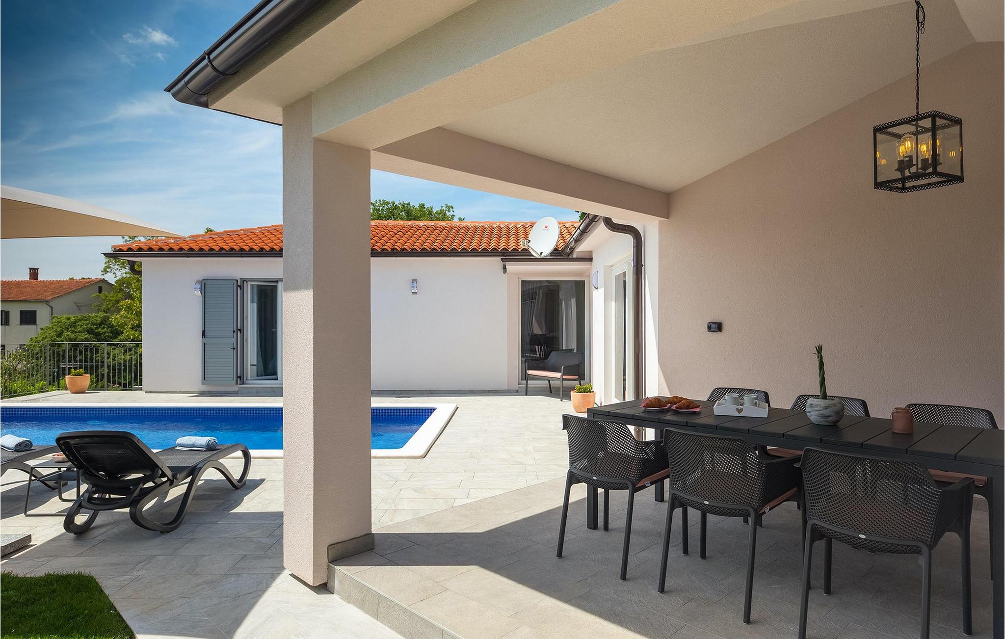 Villa NaNa repræsenterer en optimal familieferie - den har en privat pool, en grøn have med en legeplads for børn og en bocciabane og er beliggende i det smukke landlige istriske område, men stadig tæt på kysten og alle faciliteter i Istrien, der er værd at se. Villaen er et et-etagers hus. Den rummelige og nænsomt indrettede stue byder på plads til yderligere to gæster og er direkte forbundet med den skønne terrasse og poolområdet med sine hyggelige liggestole. Der er også en overdækket spiseplads til seks gæster, samt en gasgrill, hvis du gerne vil tilberede måltider udenfor. Hvis ikke, står et fuldt udstyret køkken til din rådighed. Der er to soveværelser, et med dobbeltseng og et med to enkeltsenge. Hver har eget badeværelse, tv og aircondition, der tilbyder den højeste komfort til din ferie. Villa NaNa, som er beliggende midt i fredelige omgivelser, er det ideelle valg til en afslappende ferie. De nærmeste strande er i den idylliske fiskerby Fazana med en smuk havn, hvorfra du kan nå en af de mest berømte nationalparker - Brijuni. En bred vifte af turistfaciliteter kan findes i den betagende historiske by Rovinj, også kendt som den mest romantiske by i Istrien, og sørg for at besøge regionens hovedstad, Pula, hvor et storslået romersk amfiteater er vært for regelmæssige filmvisninger, kulturelle begivenheder og livekoncerter af verdensberømte kunstnere. Hvis du har lyst til at udforske, bør du også besøge de maleriske middelalderlandsbyer Svetvincenat, Vodnjan og Bale fyldt med maleriske pladser, smalle stengader og hyggelige taverner, butikker og barer. Istrien byder også på en enestående gastronomisk oplevelse - trøfler, fuzi (traditionel istrisk pasta), prsut (røget skinke), gedeost eller manestra (traditionel istrisk grøntsagsgryderet) krydret med hjemmelavet olivenolie osv. som kan nydes på mange restauranter, agroturisme og lokale kældre kun en kort køretur væk.