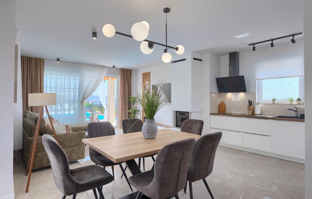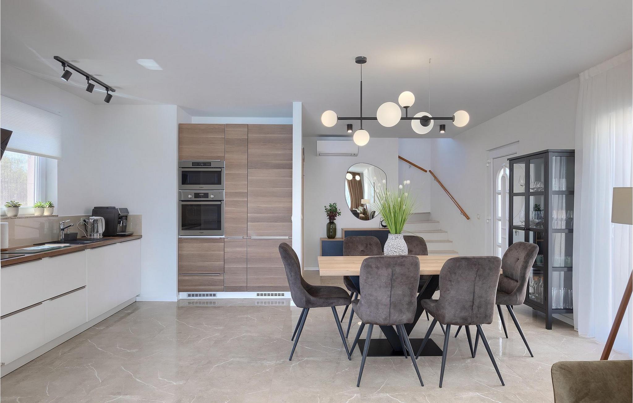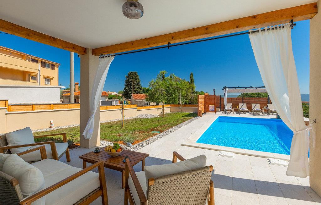 Den smukke Villa Veduta ligger i den vestlige del af Istrien og er et ideelt hus for op til 6 gæster. Villaen indeholder et indendørs og et lukket udendørs område, en privat pool og en terrasse med en smuk udsigt over kysten og naturen. Nyd den unikke udsigt fra terrassen, undslip sommervarmen i den private pool eller nyd blot en kølig drink, mens du fanger solens stråler på liggestolene. Denne villa byder på en grill, hvor du kan tilberede måltider, et afslapningshjørne i skyggen og en legeplads med en gynge og rutsjebane til børnenes lege. Fra terrassen har du direkte adgang til interiøret, som består af en rummelig stue, et fuldt udstyret køkken og spisestue samt et badeværelse. Trappen fører til husets første sal, hvor du finder 2 moderne soveværelser med dobbeltseng og eget badeværelse, aircondition og med TV. Et spillelokale med billard og dart tilbyder sjov og underholdning for dine kære. Book Villa Veduta og sørg for en ubekymret ferie!Villa Veduta er beliggende i en rolig beliggenhed, men tæt på de større byer i denne region: Pula, Labin og Rabac. Pula er den største by i Istrien og byder på et bredt udvalg af barer, restauranter og attraktioner. Et besøg i det berømte amfiteater fra det 1. århundrede er en uforglemmelig oplevelse. Det ligger i byens centrum, og vi anbefaler et besøg for at lære mere om den imponerende bygning af stor historisk værdi. Mange begivenheder finder sted her, såsom koncerter, filmvisninger og sportsbegivenheder. Det omkringliggende område byder på adskillige muligheder for fritidsaktiviteter: cykling, ridning, jogging, vandreture og meget mere. For naturelskere anbefaler vi en tur til den nærliggende Brijuni Nationalpark eller til Cape Kamenjak, hvor du kan nyde uberørt naturskønhed og naturlige omgivelser. Ikke langt væk ligger Labin og Rabac, kendt for deres smukke stenstrande med krystalklart hav. Gå en tur langs kysten og prøv istriske specialiteter såsom pasta med trøfler eller prosciutto, med et glas af den berømte istriske Malvasia, selvfølgelig. Disse middelalderbyer er kendt som kunstnernes by, så kunstelskere kan besøge ateliererne og gallerierne med kunstværker i stengaderne.