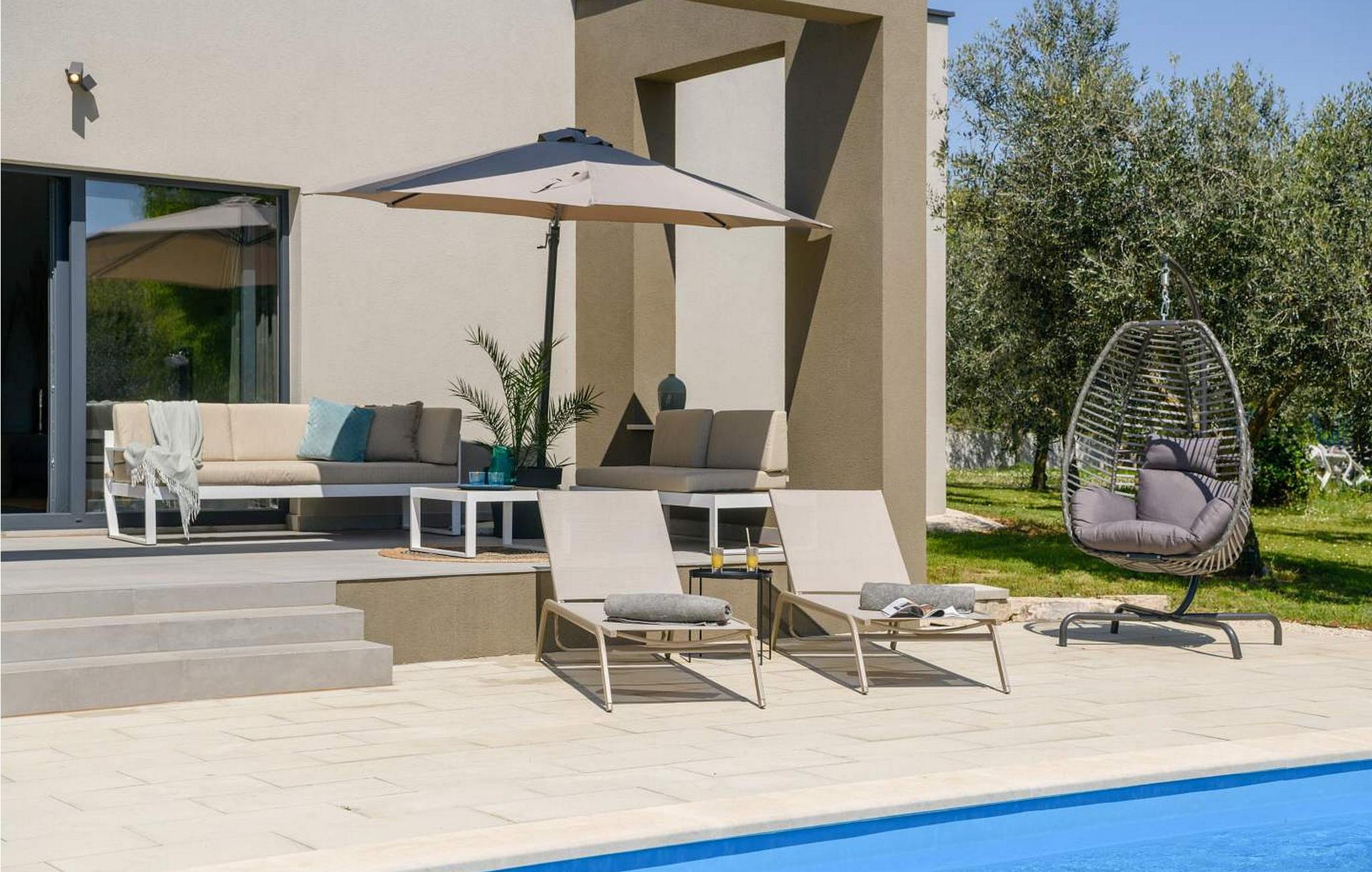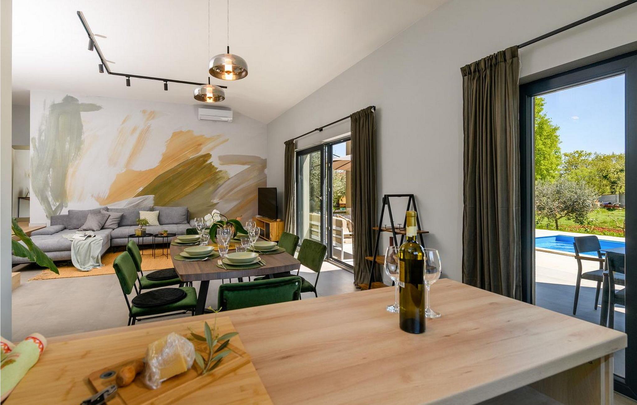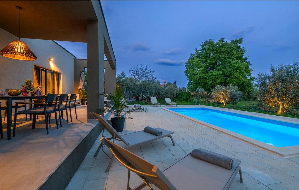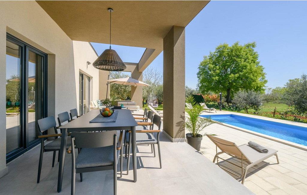 Moderne designer Villa Tonina med pool ligger i den sydlige del af Istrien og er 12 km fra havet. På få minutter i bil kan du nå forskellige slags restauranter, butikker, pengeautomater, tankstationer og caféer. Huset ligger for enden af landsbyen Filipana og tilbyder sine gæster absolut fred og afslapning. På sin ejendom på 1000 kvm har gæsterne adgang til en 28 kvm stor swimmingpool, 6 liggestole, 2 parasoller, en overdækket terrasse med grill, havemøbler og smukt træ, der giver skygge og et sted at slappe af. Villa Tonina med et samlet areal på 140 kvm er velegnet til 6-8 personer. Det består af en stue med adgang til poolen, et fuldt udstyret køkken, tre soveværelser med dobbeltsenge, to af dem med eget badeværelse og et separat badeværelse. Bemærk venligst, at denne ejendom ikke accepterer ungdomsgrupper eller polterabends. En ungdomsgruppe på denne ejendom er en gruppe bestående af personer på 26 år eller derunder. Book ikke denne ejendom, hvis du er en ungdomsgruppe eller et polterabend, da din reservation vil blive afvist efter booking, hvilket kan omfatte ved ankomst til ejendommen eller under dit ophold, og du vil ikke blive refunderet.