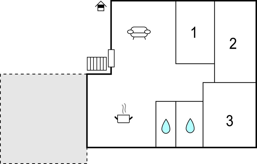 Badeværelse 6m2 (nr. 1) - WC. Varmt og koldt vand. Bruser