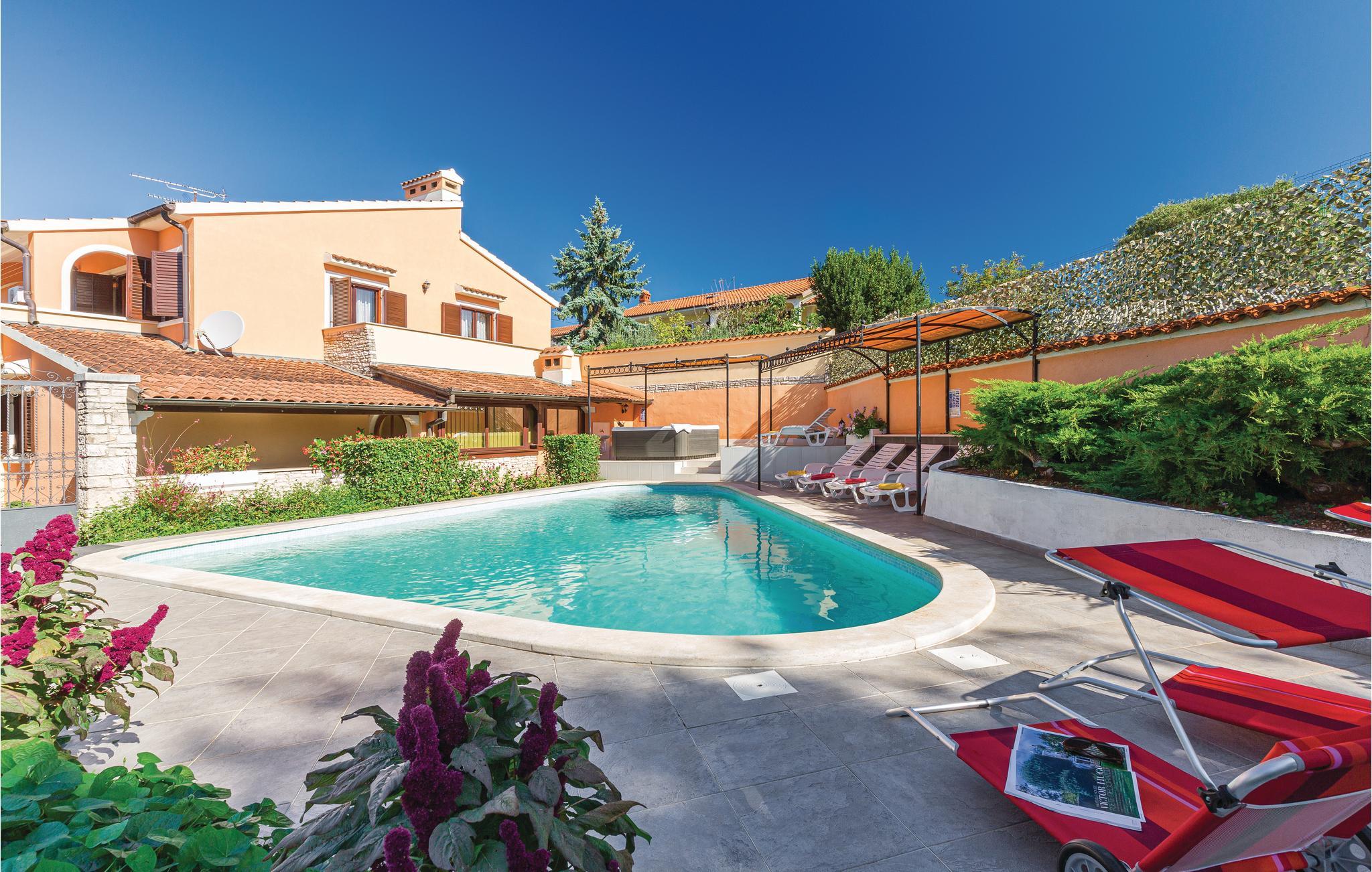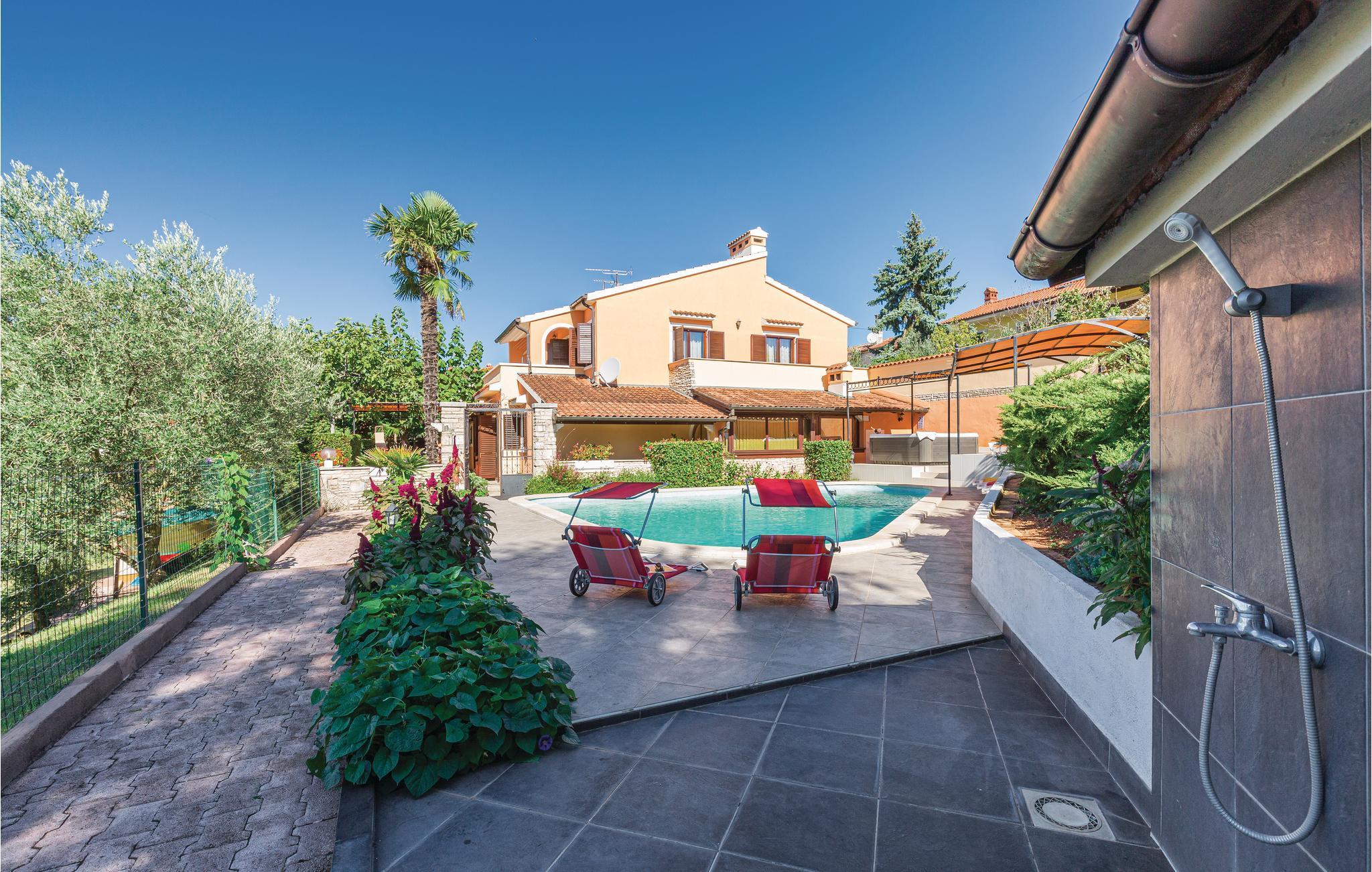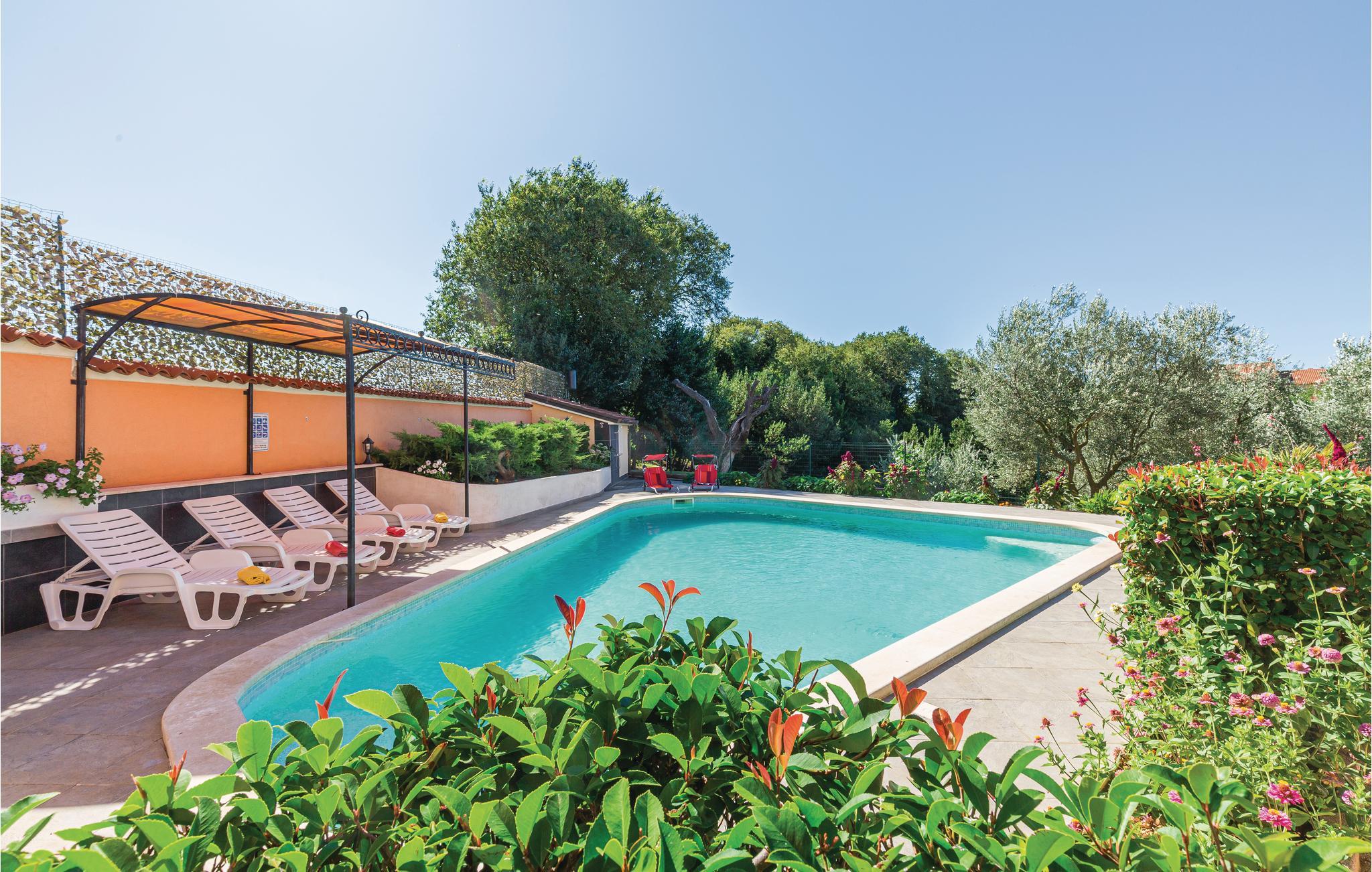 I den lille oprindelige by Munitc, langt væk fra masseturisme og hvor der stadig er stemning og tradition, ligger denne traditionelle og komfortable ferielejlighed i stueetagen. Hop en tur i den store pool lige når I har lyst og lad jeres børn lege og tumle sig på den store grund, mens I spiller badminton eller volleyball.