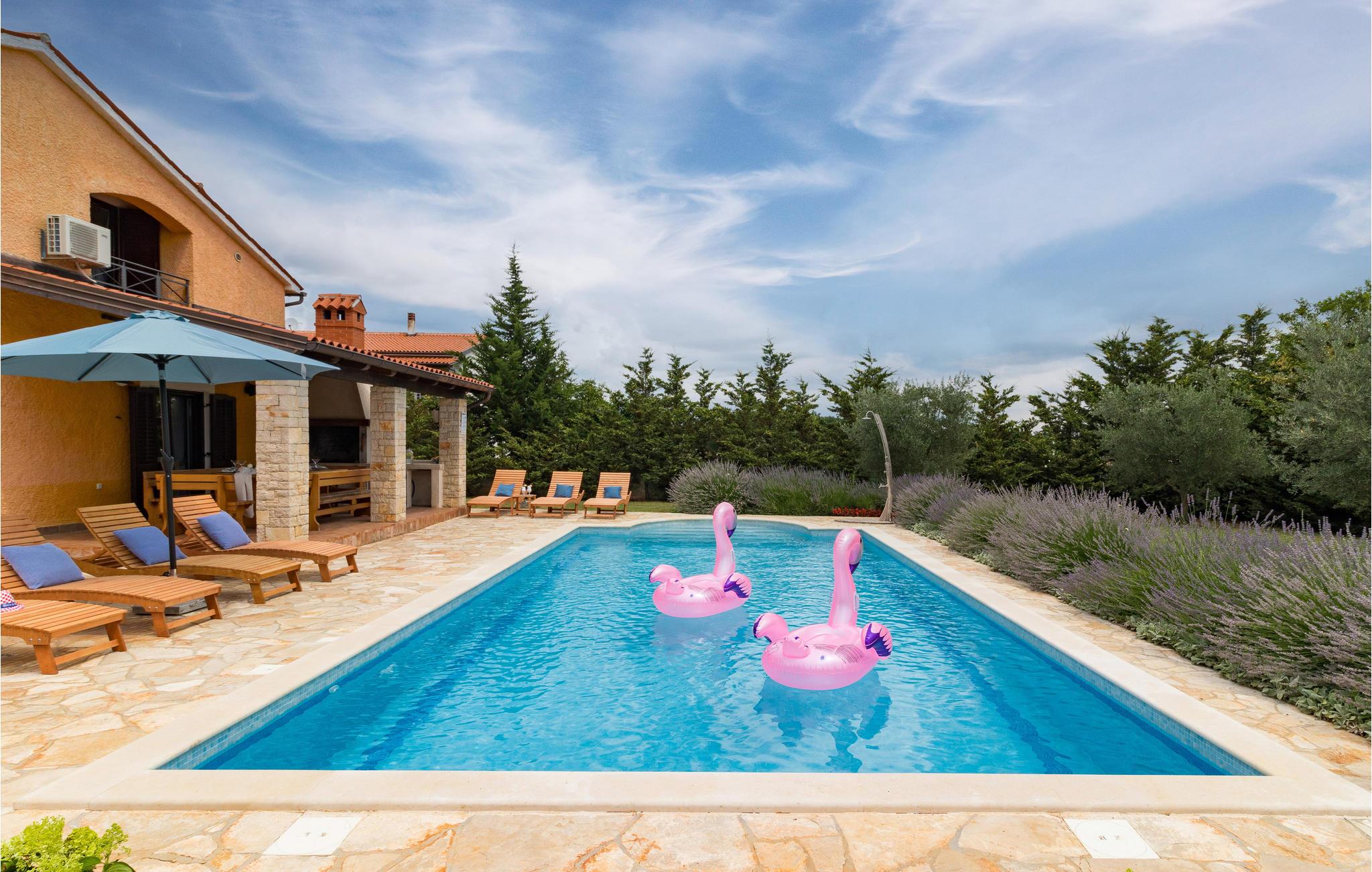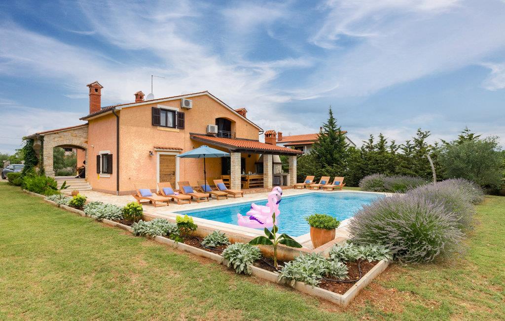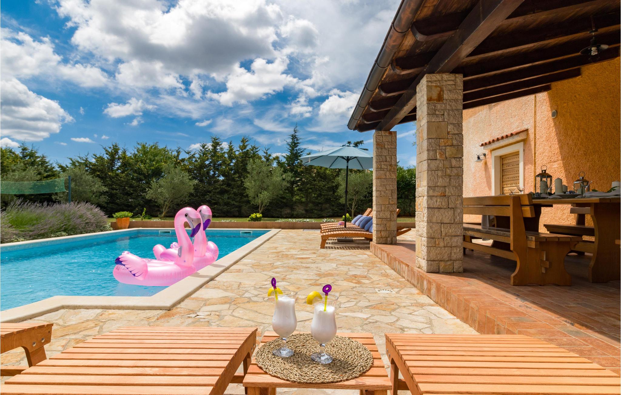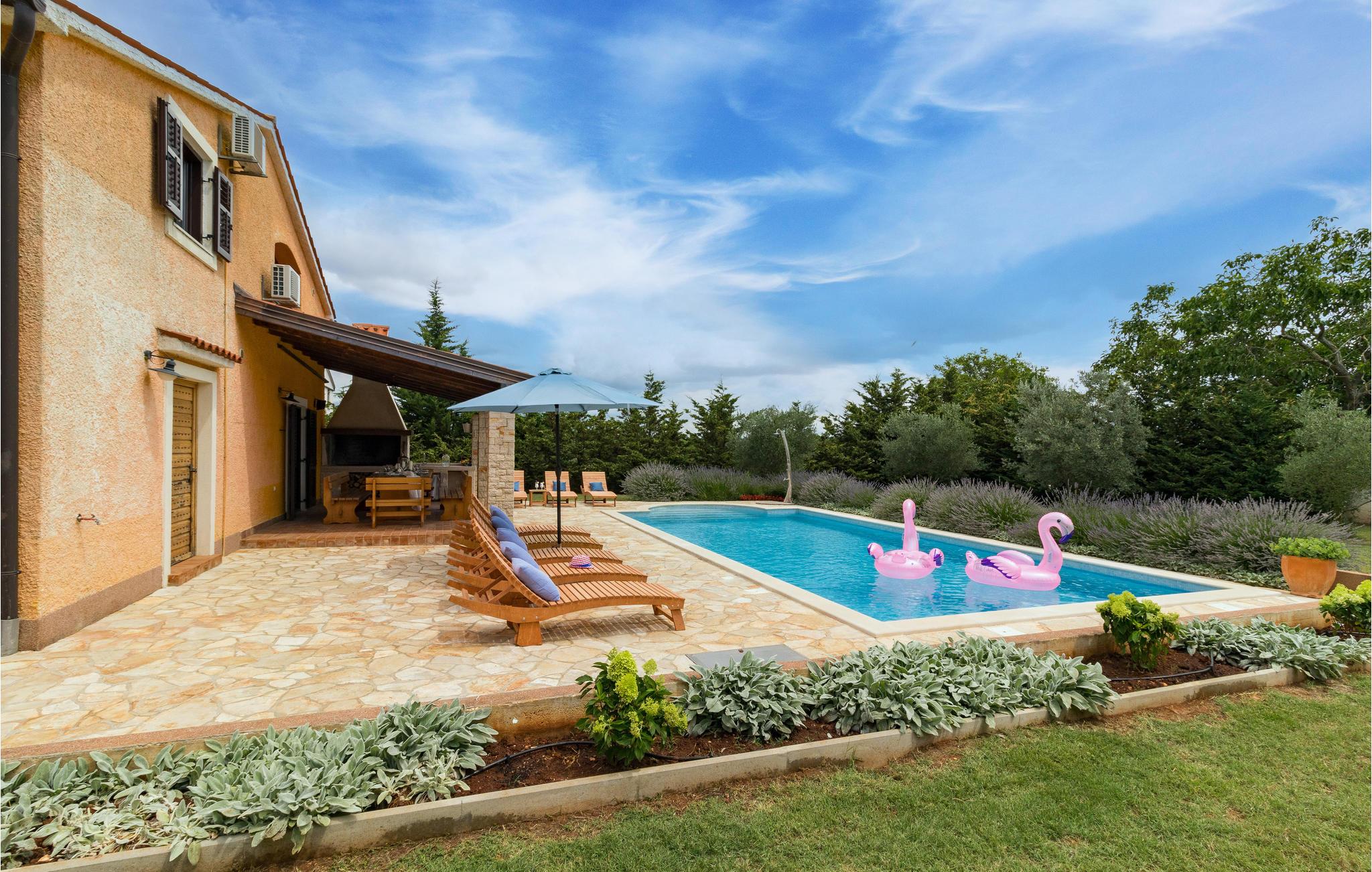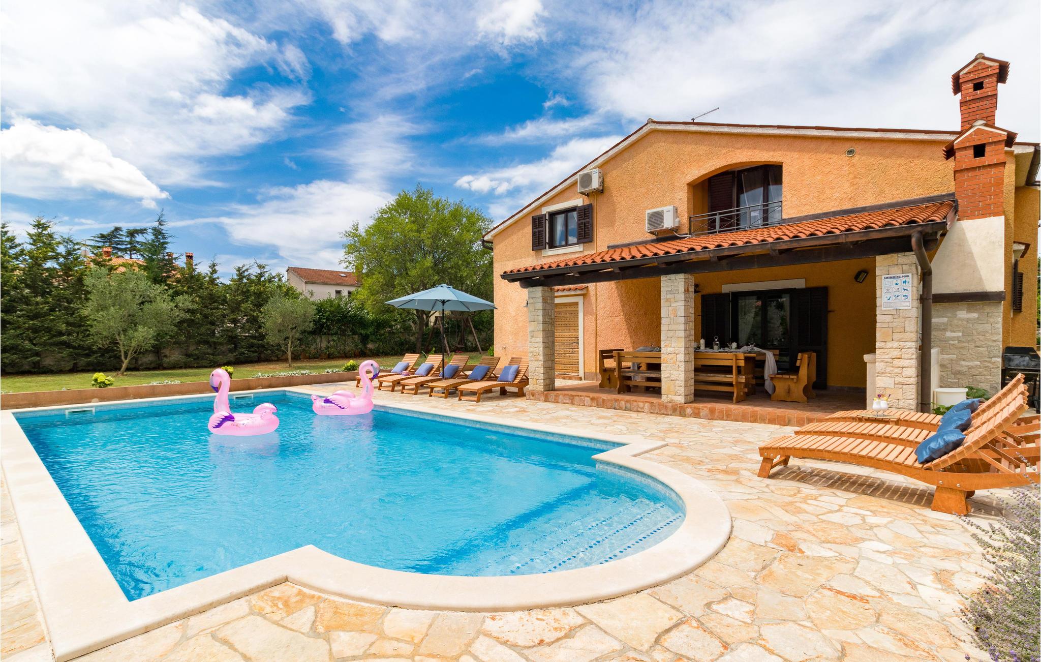 Dette smukke feriehus ligger i en lille istrisk landsby, i nærheden af byen Pula. Huset er dejligt indrettet med moderne og rustikke møbler, og der er lagt vægt på kvalitet. På den store grund er der mange flotte middelhavs planter, og en dejlig swimmingpool. Stueetagen er den mest besøgte del af huset, her ligger nemlig en stor stue med kamin, køkkenet og spisestuen.Alle soveværelser har klimaanlæg.Laveste lofthøjde på første etage er 1,37 m. Ved den skønne udendørs swimmingpool kan i slappe af, lege med børnene eller hygge jer på den overdækkede terrasse, mens i nyder den romantiske solnedgang, der er der en stenkamin, håndvask og et køleskab på terassen. Besøg byen Pula, som har mange seværdigheder, bla. amfiteater, Augustus-templet og nationalparken Brijuni, der har haft historisk betydning for dette område. De lokale barer og restauranter er kendt for deres specialiteter, så de er bestemt også et besøg værd.