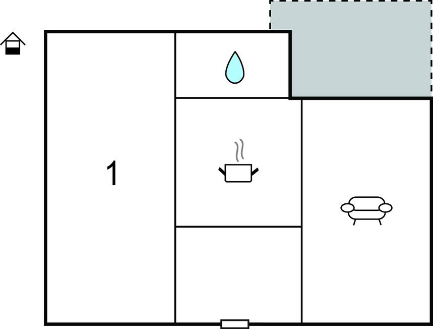 Opholdsstue/køkken 24m2 - 2 Sovepladser. (Sofa, madras eller lignende).