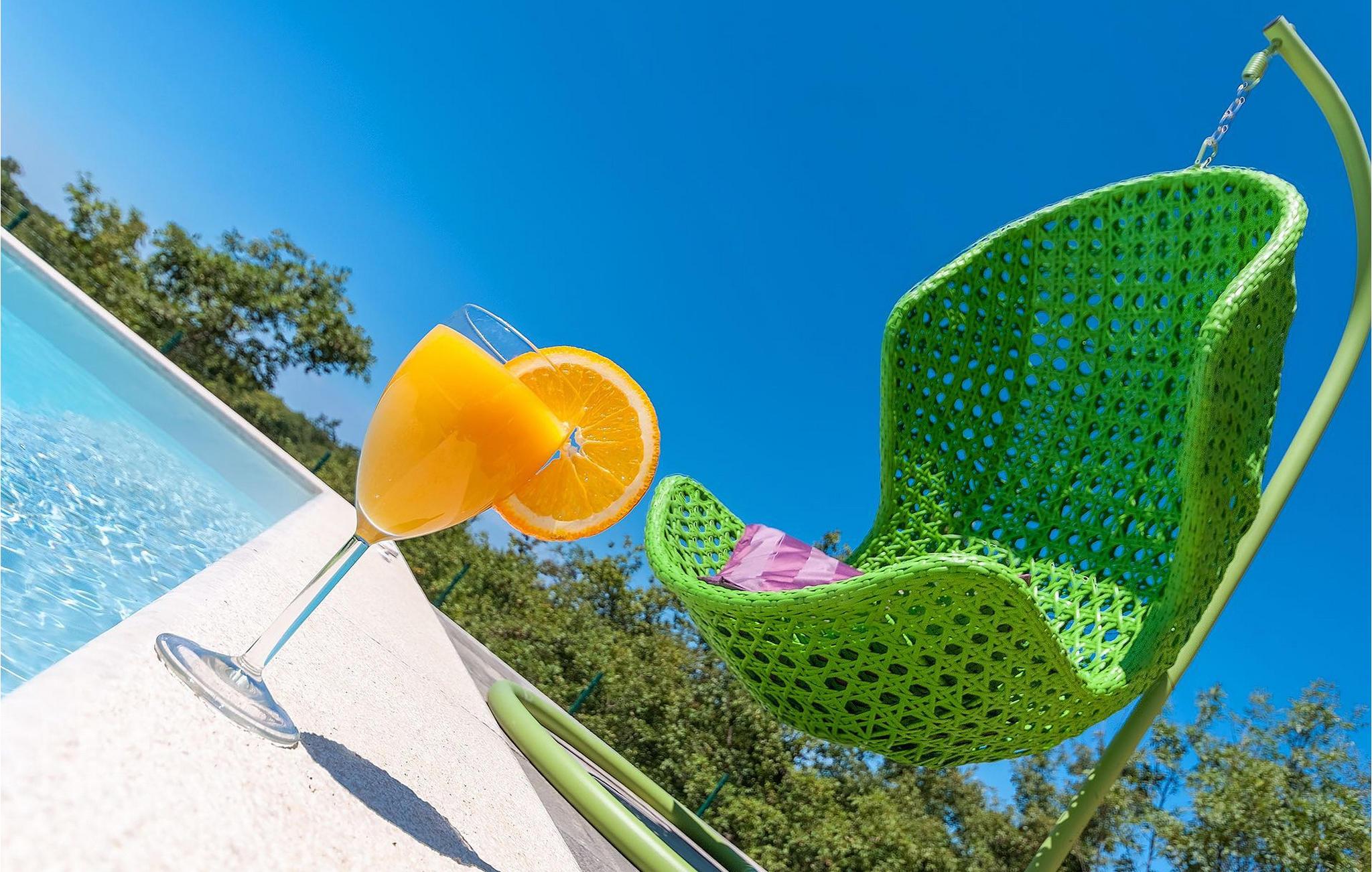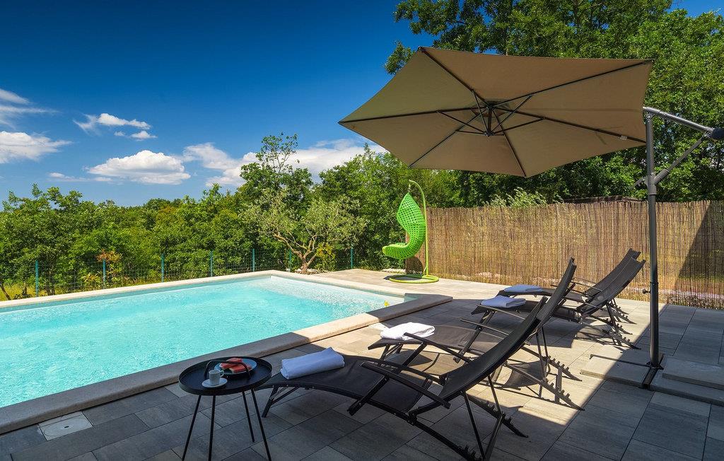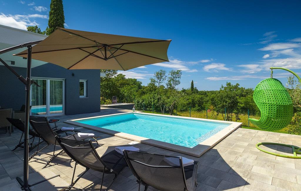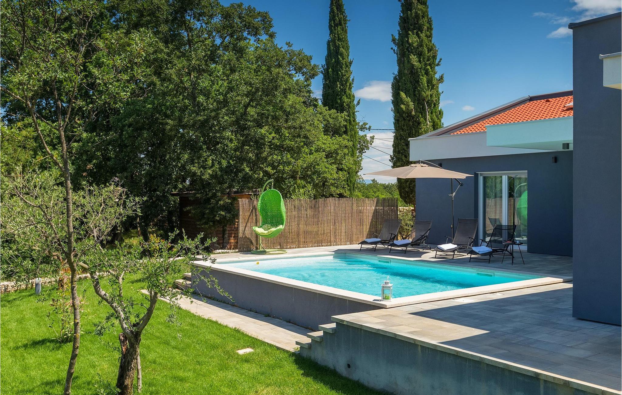 I løbet af dagen vil du helt sikkert gerne bruge det meste af din tid på at svømme i poolen og bare slappe af. Den overdækkede udendørs spiseplads er perfekt til at forkæle dig selv med et glas kold drik over en middag med levende lys på en varm sommeraften. Nyd aftenbrisen og den vidunderlige stjerneklare aftenhimmel fra en af liggestolene eller den store gyngestol. Smuk Villa Noemi ligger i en lille landsby i Istrien kaldet Krvavici. Som de fleste landsbyer i Istrien er Krvavici omgivet af betagende natur, grønne bakker og landbrugsområder, hvilket gør det til et perfekt sted for en afslappende ferie.