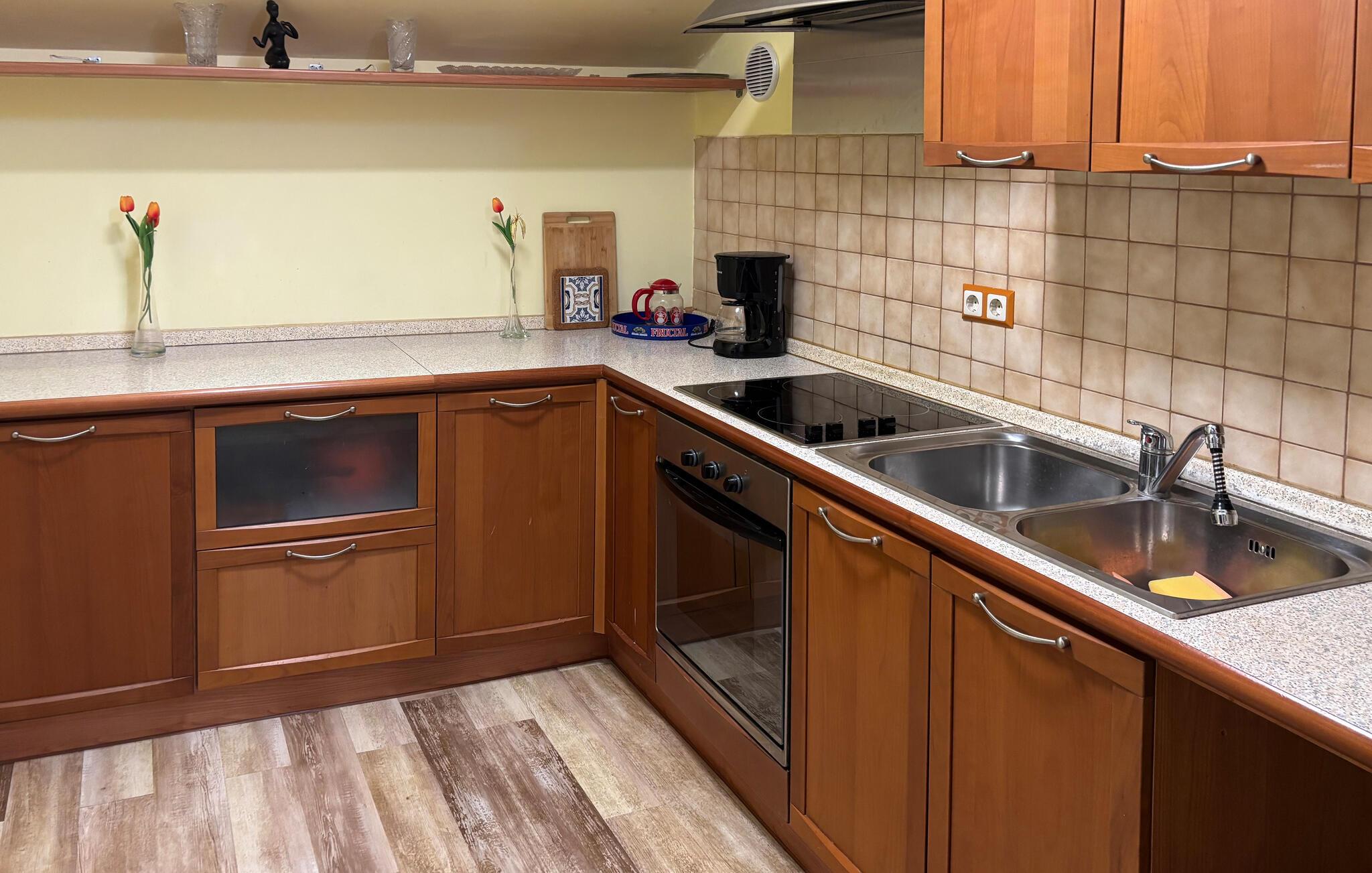 Nyd en komfortabel ferie i denne rummelige ferielejlighed nær stranden. Kun en kort gåtur fra Adriaterhavets klare vand tilbyder denne rummelige og smagfuldt møblerede lejlighed et hyggeligt tilflugtssted, hvor I kan lægge hverdagen langt bag jer. Tilbered lækre måltider, planlæg jeres udflugter til afslappede måltider, og brug det indbydende spisebord til hyggelige spilleaftener eller hyg jer sammen i sofaen med en film. Server morgenmad på terrassen, inden I slentrer til stranden, og tænd grillen ved solnedgang for at nyde stemningsfulde aftener med vin og stearinlys. I Pula kan I besøge det imponerende amfiteater og de romerske ruiner, tage en bådtur langs Istriens kyst og snorkle i skjulte bugter. Cykl gennem de maleriske olivenlunde og vinmarker omkring Pjescana Uvala, og stop ved en lokal vingård eller kro for at prøve istriske specialiteter. Besøg de idylliske strande i Medulin eller Verudela, og vandr gennem den idylliske naturpark Kap Kamenjak.