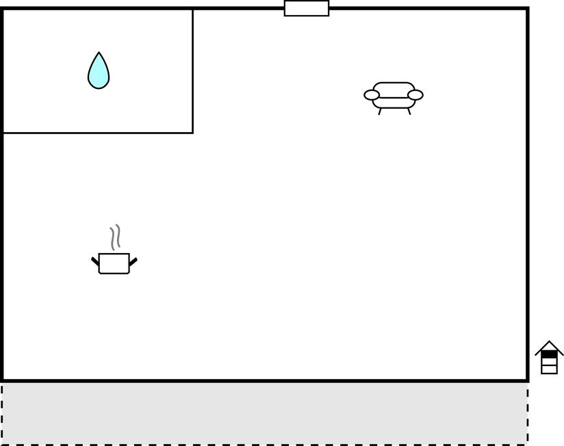 Opholdsstue 20m2 - 1 Soveplads. (Enkeltseng(e)). 2 Sovepladser. (Dobbeltseng(e)).