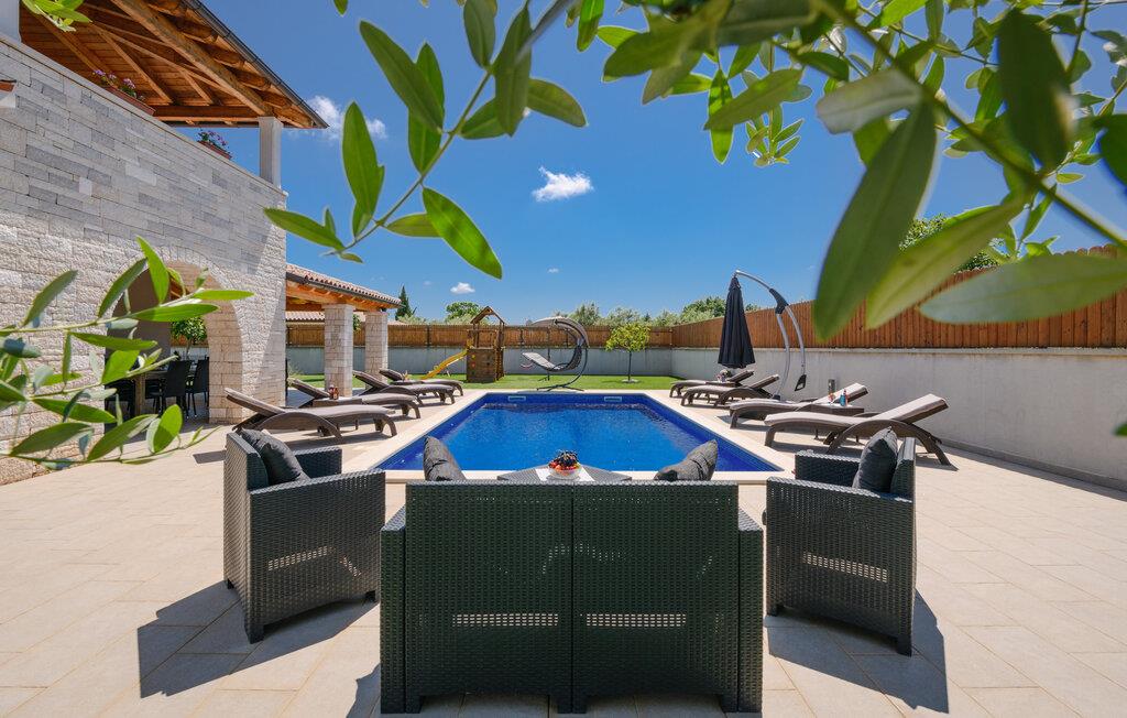 Dette vidunderlige feriehus med pool ligger i den lille landsby Radeki Polje, midt i Istriens indre. Rummeligt og komfortabelt indrettet bliver huset et perfekt sted til en afslappende ferie i blandt venner og familier. Den overdækkede terrasse bliver feriens midtpunkt hvor I kan slappe af i skyggen eller I kan tage en forfriskende dukkert i swimmingpoolen, efter at have slikket sol på liggestolen. Saunaens varme og whirlpoolens massage, vil ligeledes virke afstressende. De mindste kommer til at hygge sig i mange timer med grundens mange legeredskaber. I Pula venter der jer en masse oplevelser, og er et oplagt udflugtsmål.
