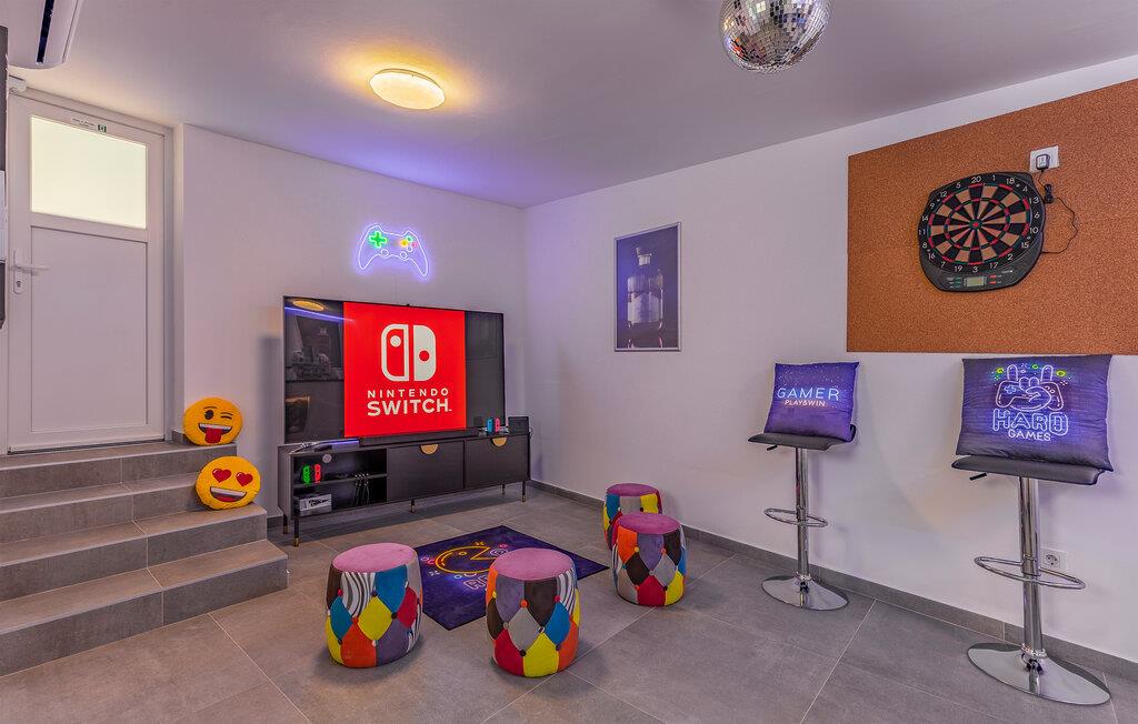 Dette rummelige feriehus forkæler jer med talrige ekstraudstyr og et lyst og stilfuldt interiør. Fremtrylle kulinariske højdepunkter i det moderne køkken, forkæl jer selv med behagelige stunder i saunaen, træn i fitnessrummet, spil Nintendo Wii eller organiser en filmaften.