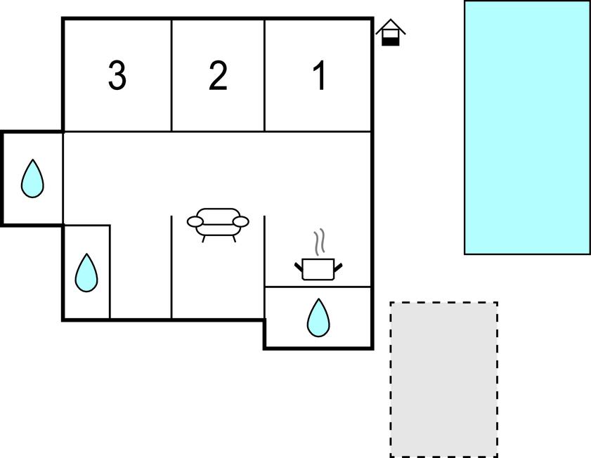 Opholdsstue/køkken - 1 Soveplads. (Sofa, madras eller lignende).