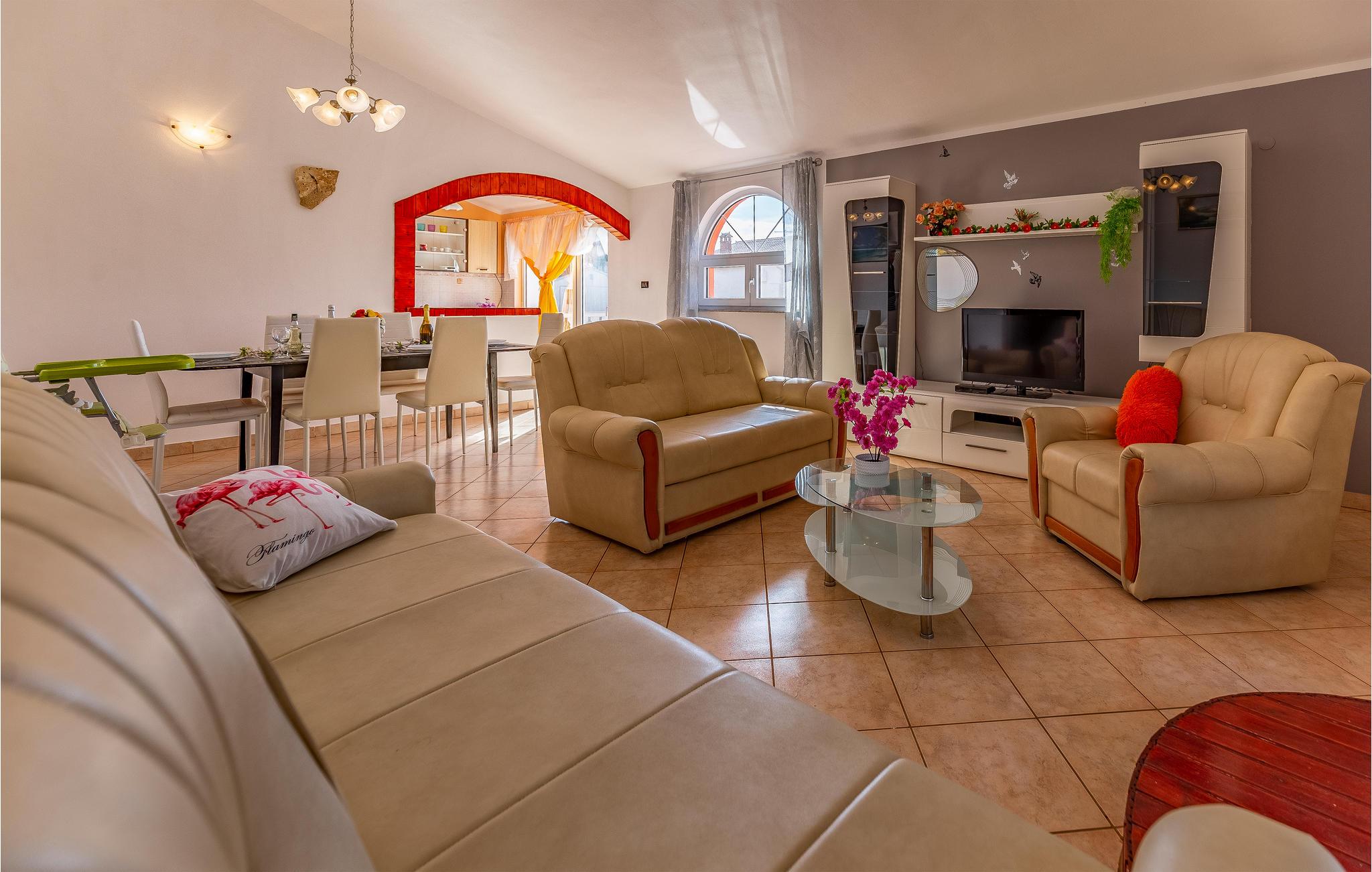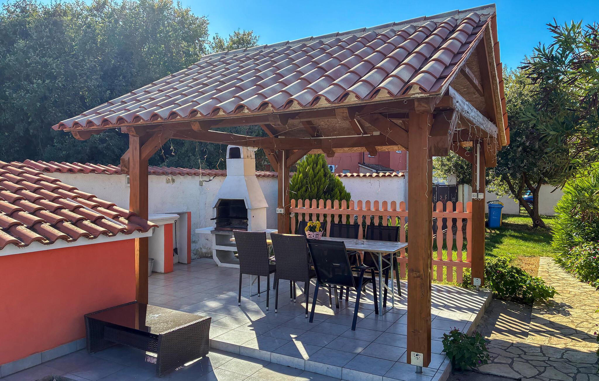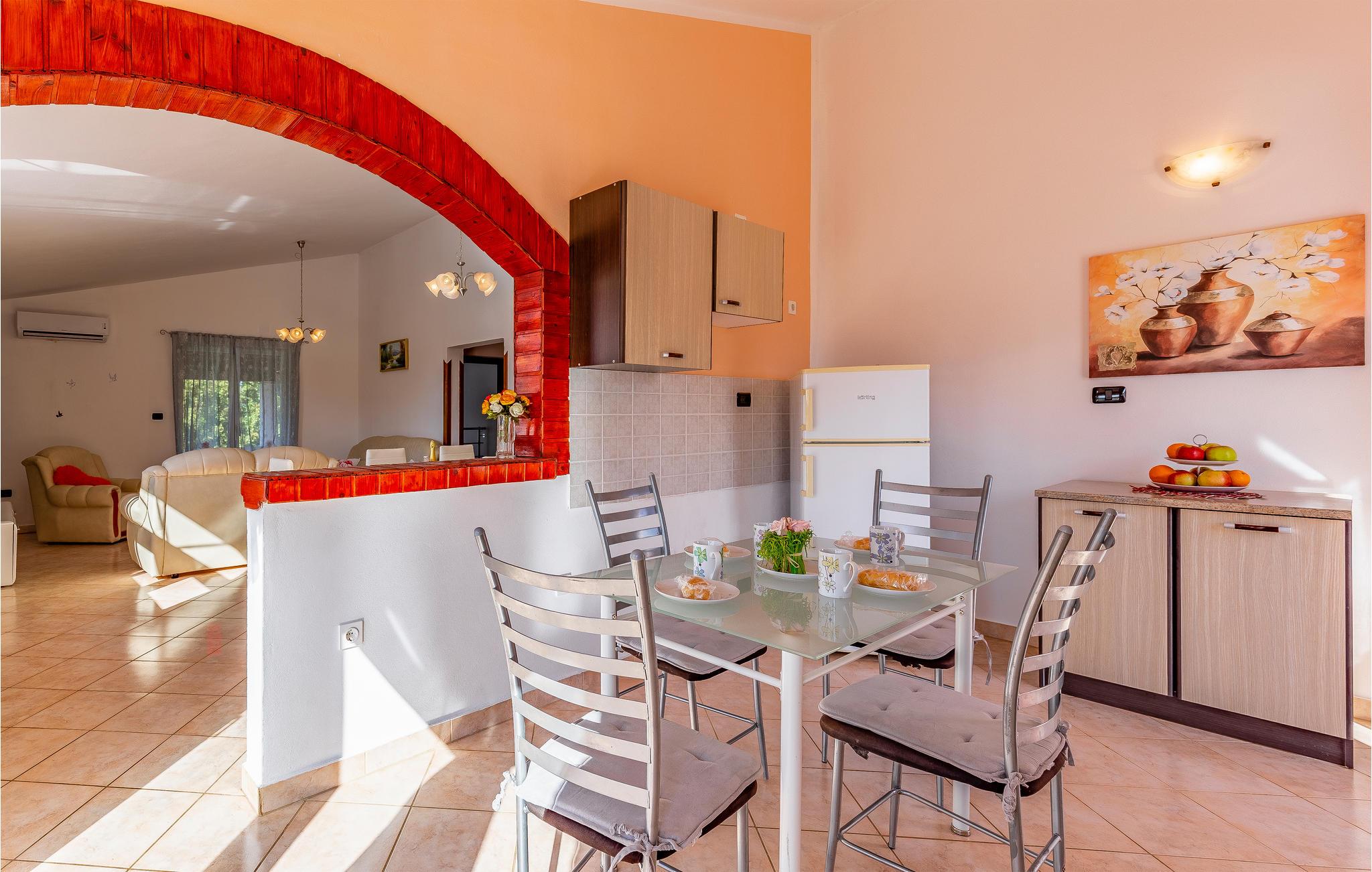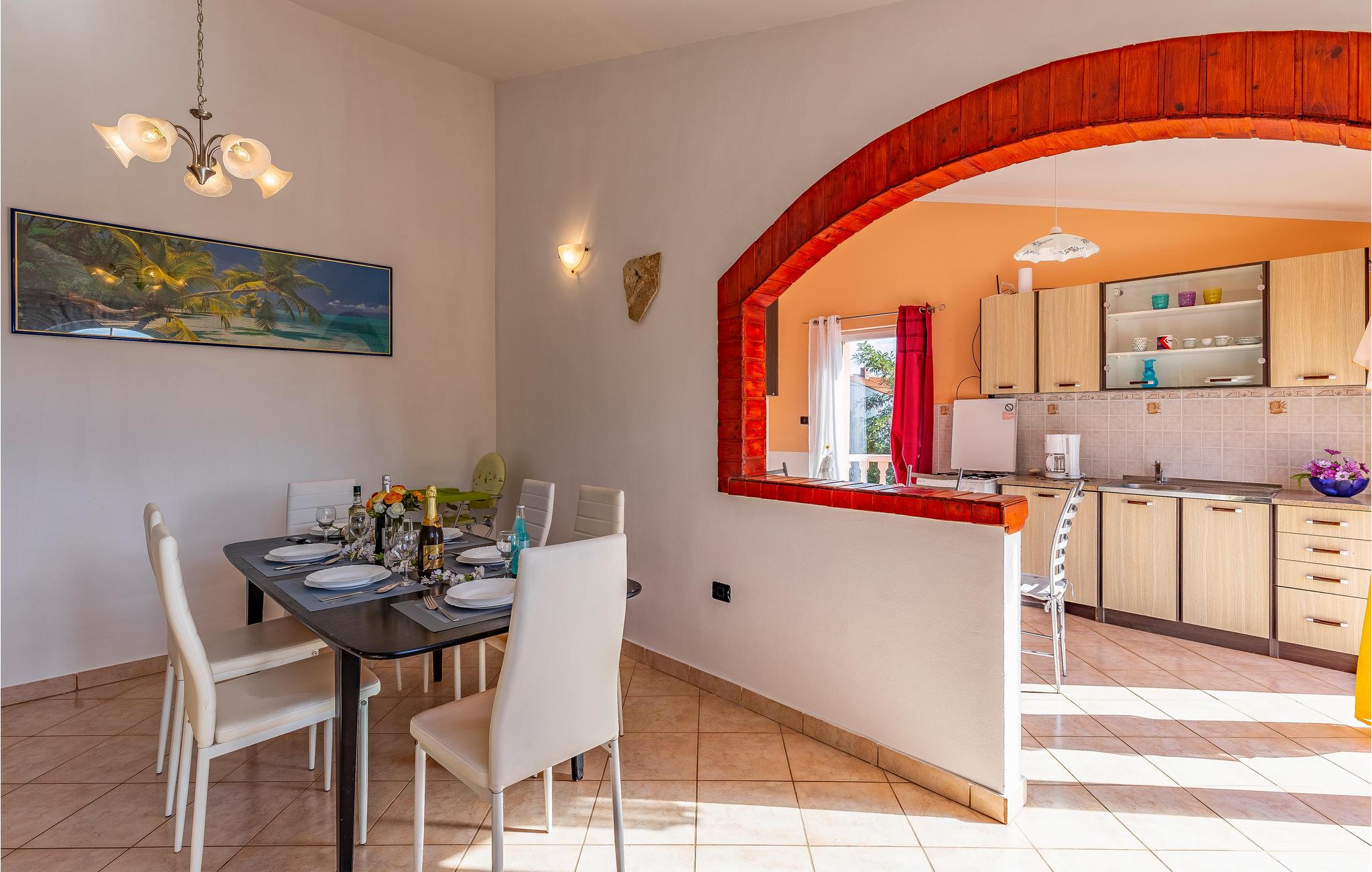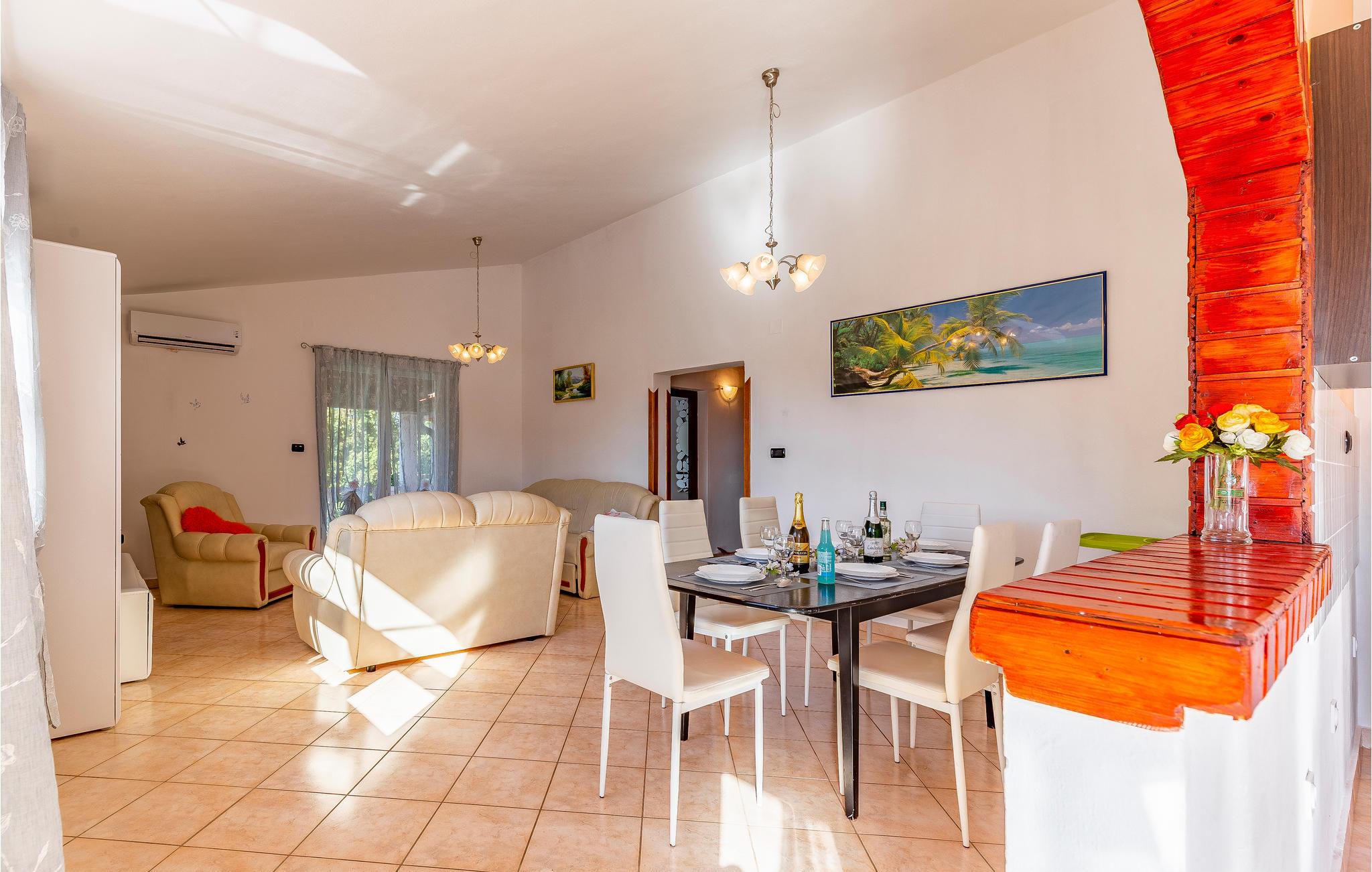 Velkommen til dette hus, som byder jer velkommen i et roligt område af den lille by Šišan, kun en kort køretur fra stranden, og som danner den ideelle ramme for en uforglemmelig ferie med hele familien. Glæd jer til hyggelige aftener i jeres ferieoase og hyg jer sammen i de hjemligt indrettede. Her kan hele familien slappe af.