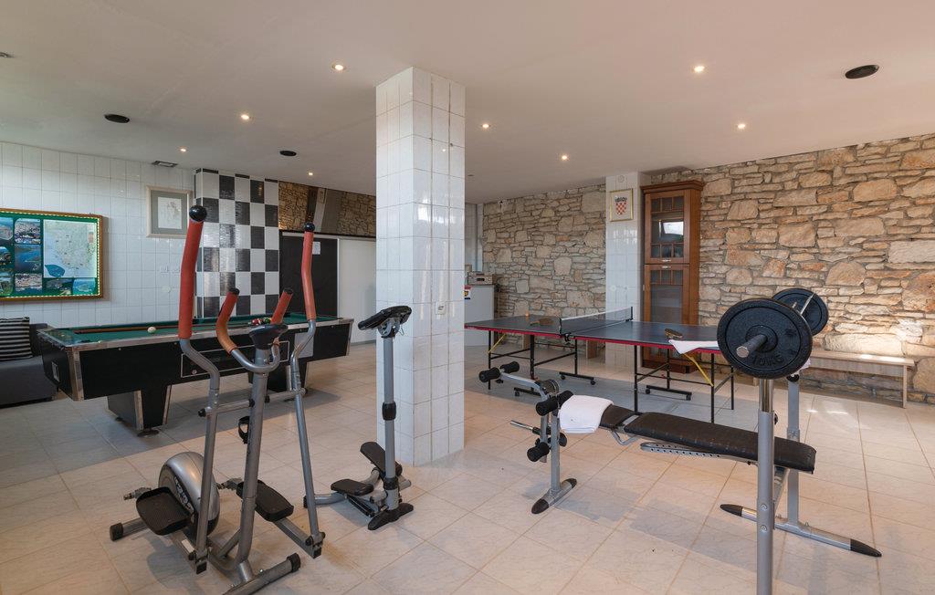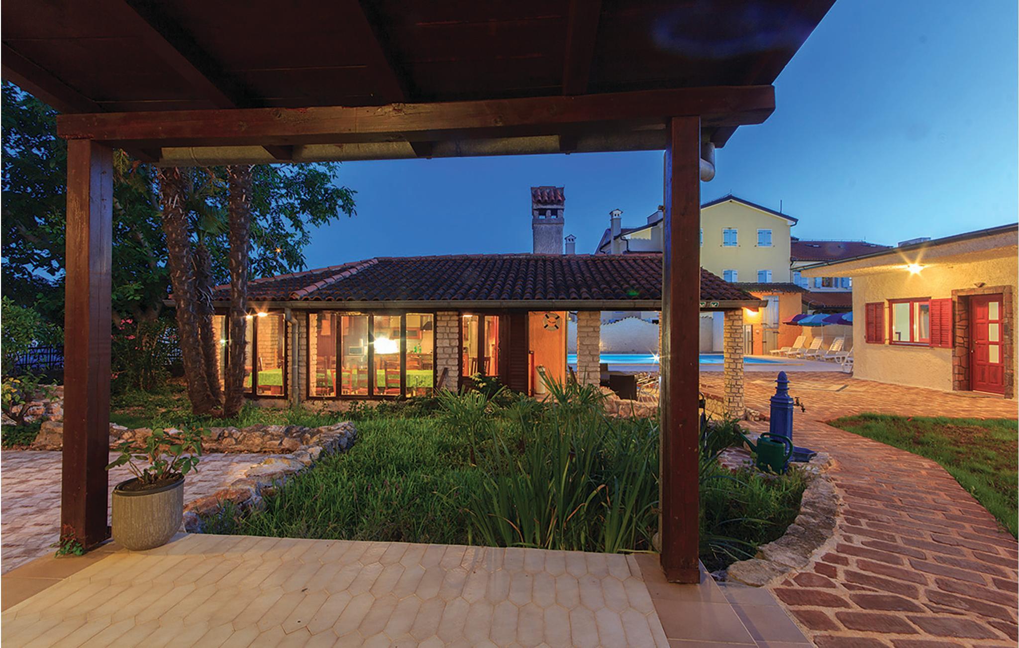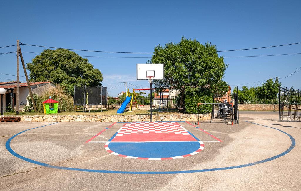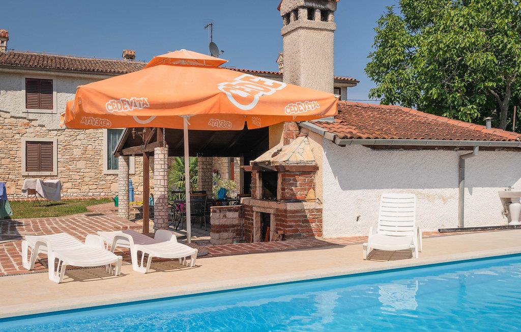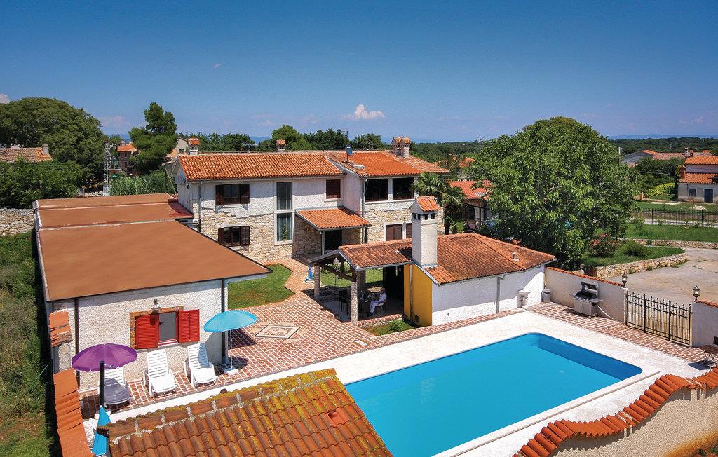 Dette landlige og maritime feriehus til 16 personer ligger på en stor ejendom med pool. Det består af et hovedhus med to soveværelser, to badeværelser og dagligstue på første sal. I annekset til hovedhuset er der en ekstra ferielejlighed med soveværelse, dagligstue, køkken og bad samt en lille etværelses lejlighed, begge med separat indgang. Nyd tiden i motions- og hobbyrummet med billard, bordtennisbord og dart. Opdag de herlige naturstrande med det krystalklare hav. Smag specialiteterne på restauranten i nærheden, og besøg feriebyen Medulin med sandstrand.