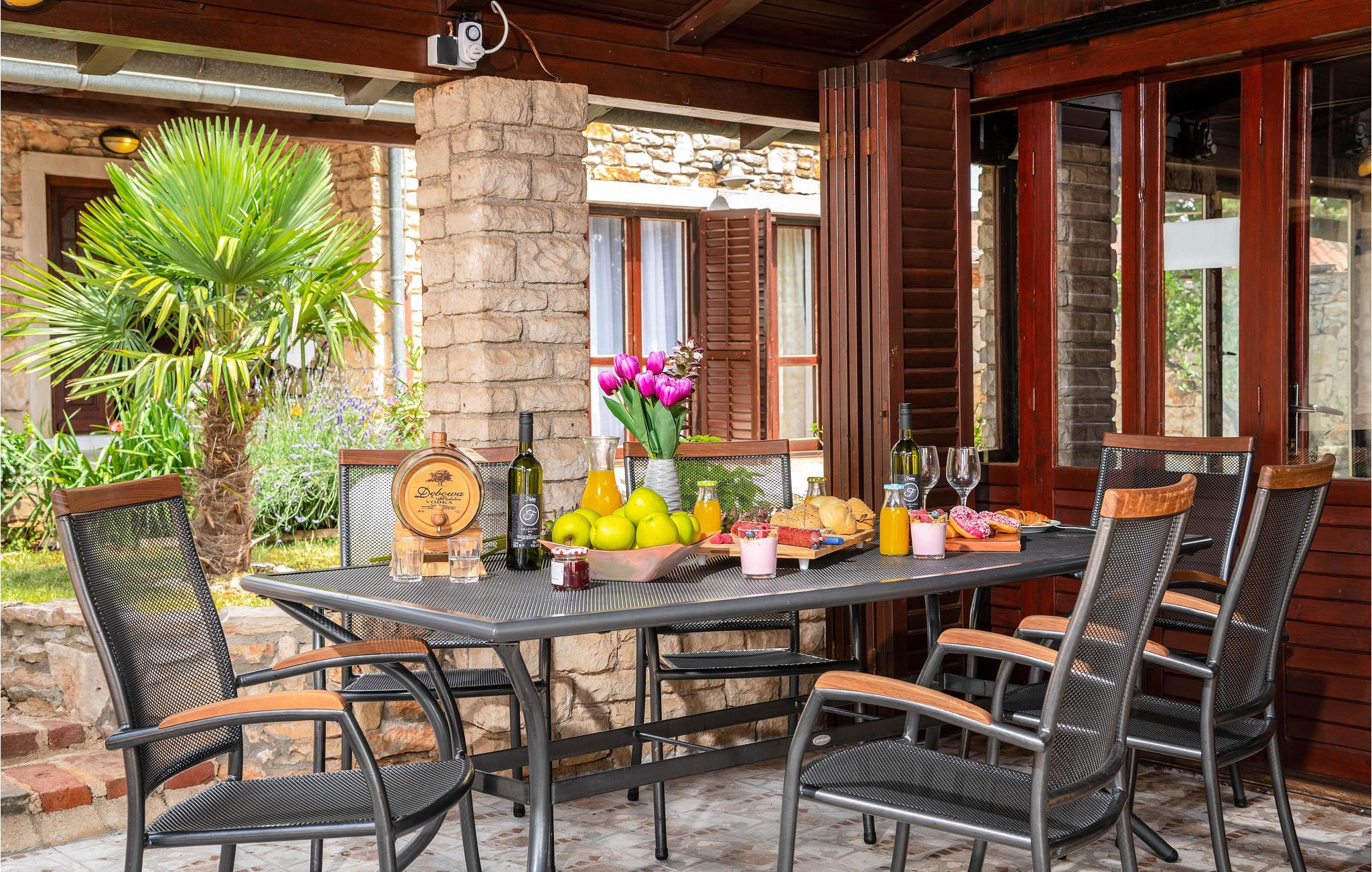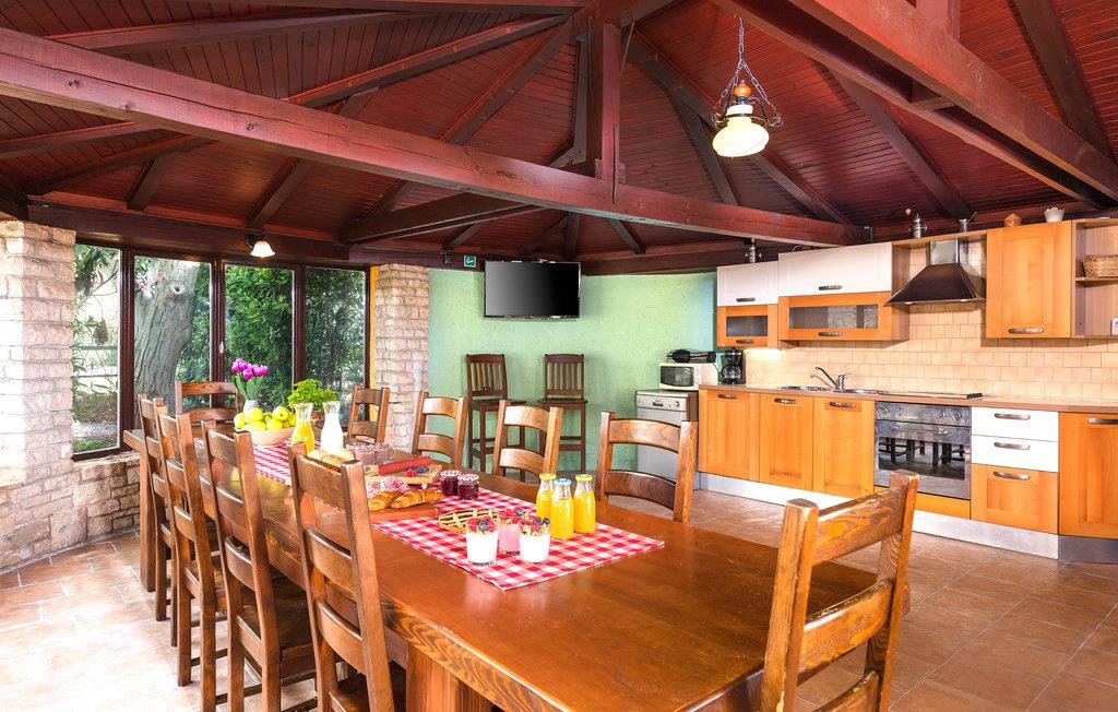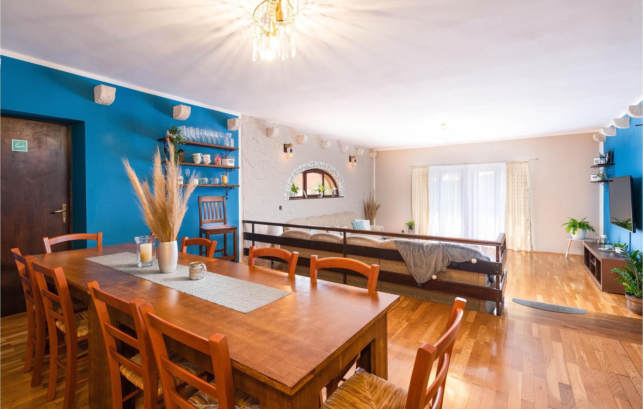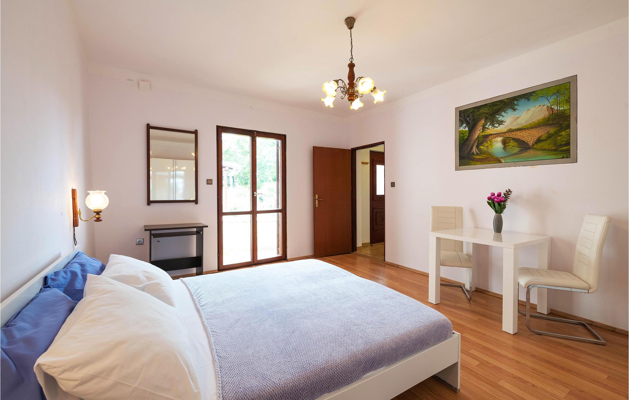 Dette landlige og maritime feriehus til 16 personer ligger på en stor ejendom med pool. Det består af et hovedhus med to soveværelser, to badeværelser og dagligstue på første sal. I annekset til hovedhuset er der en ekstra ferielejlighed med soveværelse, dagligstue, køkken og bad samt en lille etværelses lejlighed, begge med separat indgang. Nyd tiden i motions- og hobbyrummet med billard, bordtennisbord og dart. Opdag de herlige naturstrande med det krystalklare hav. Smag specialiteterne på restauranten i nærheden, og besøg feriebyen Medulin med sandstrand.