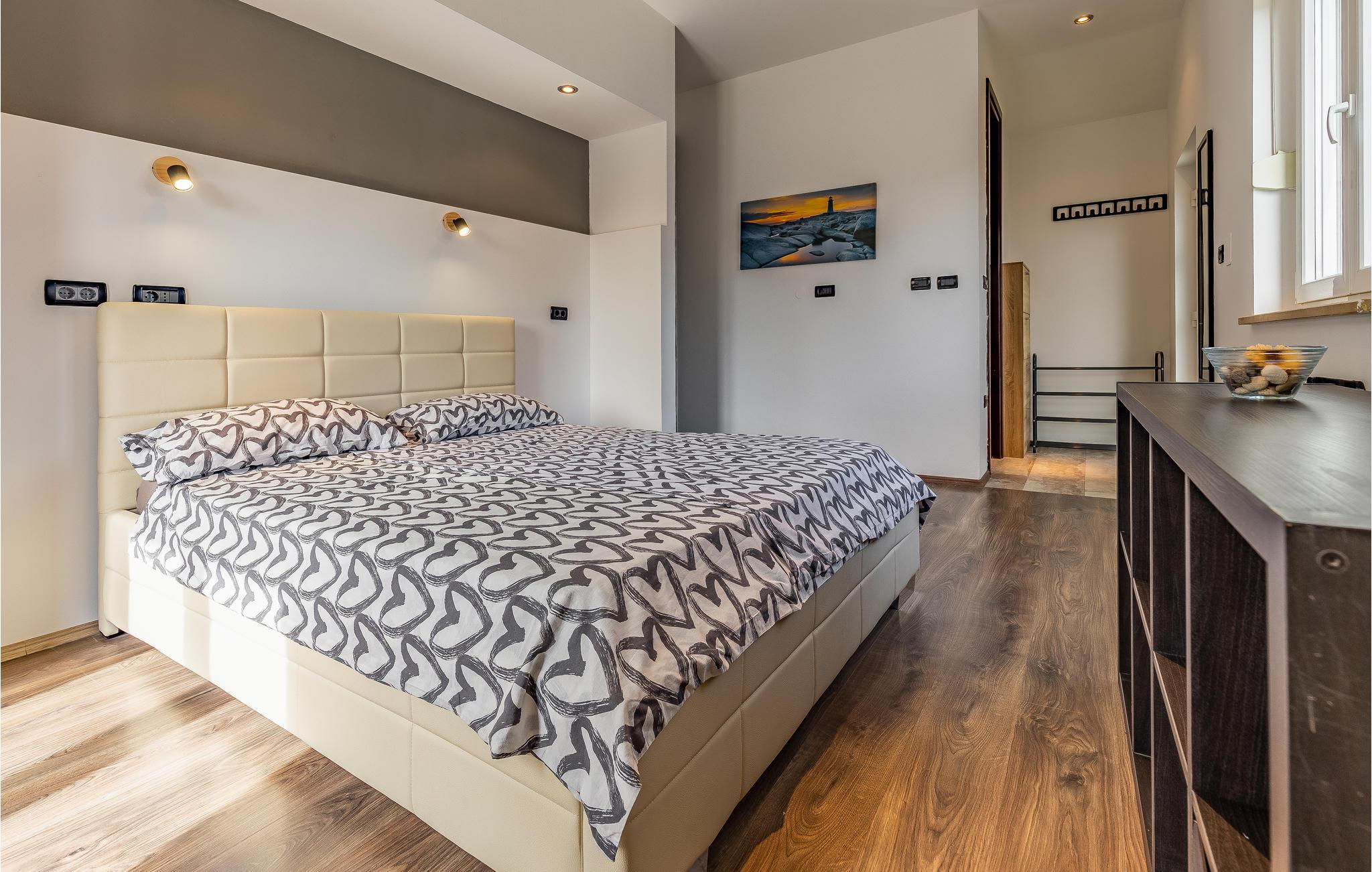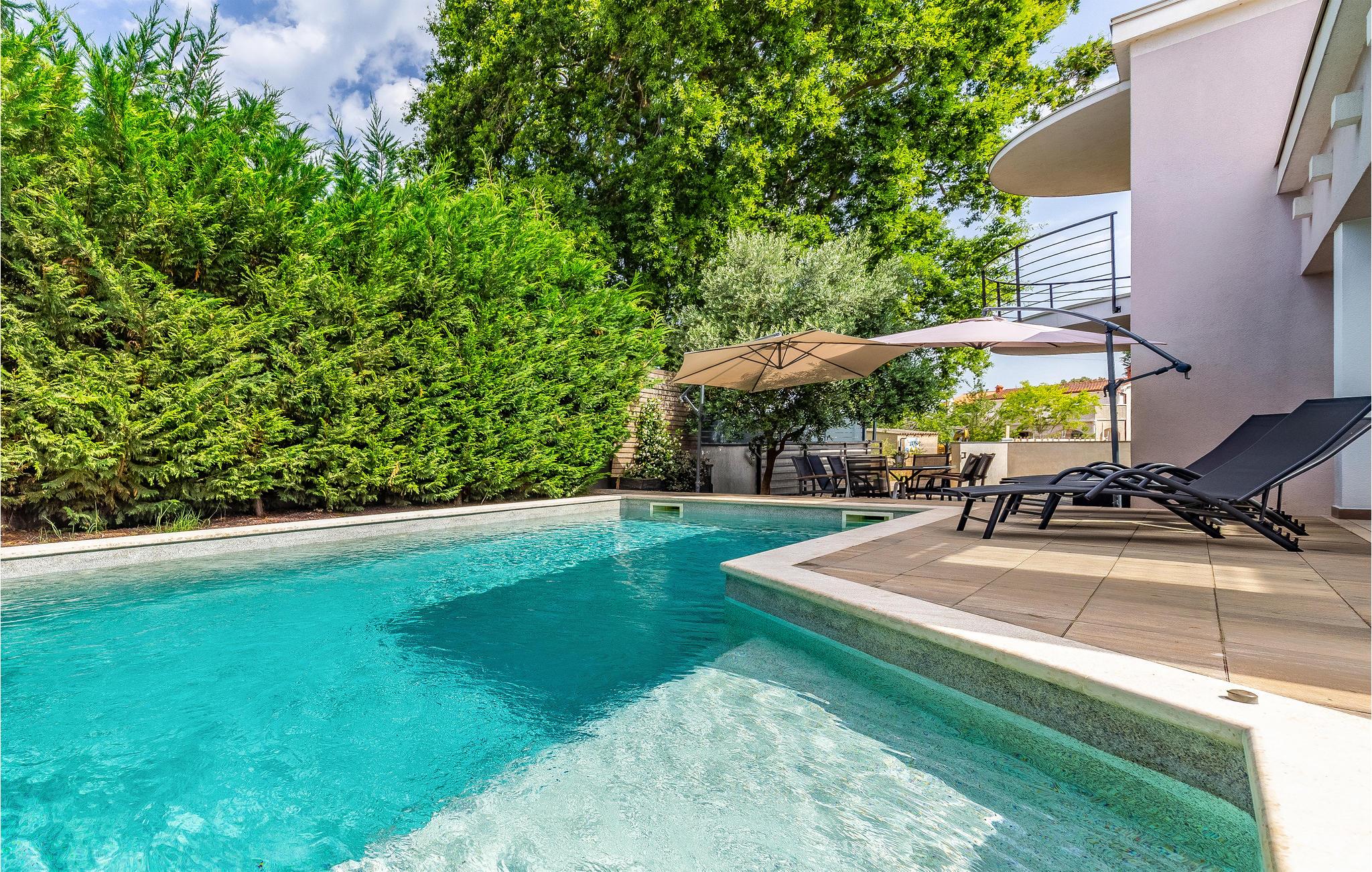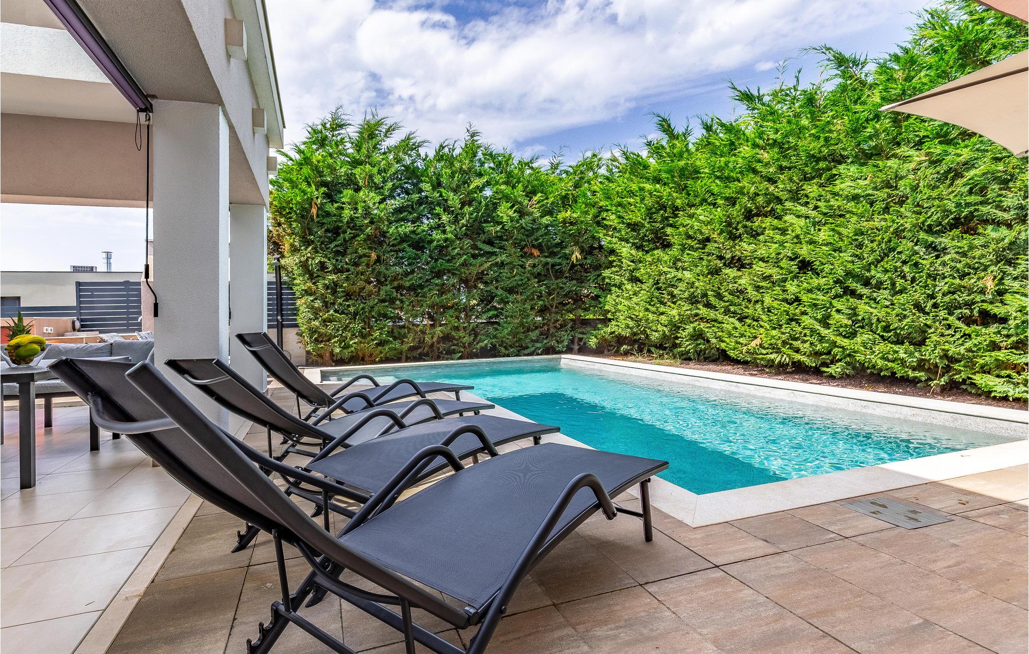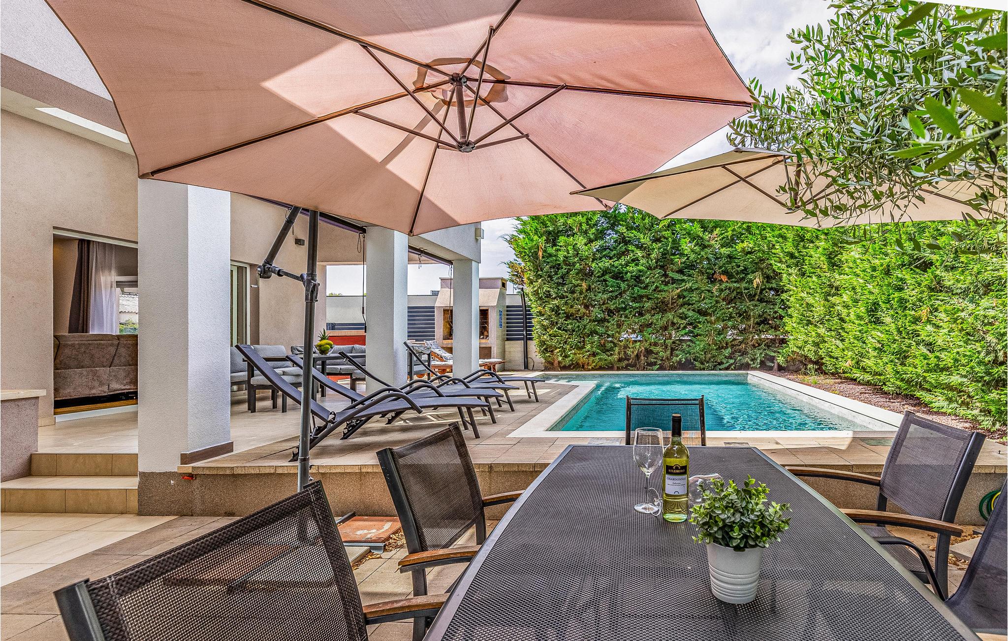 Dette smagfuldt indrettede feriehus ligger i en indhegnet have, i den lille by Šišan, ved den større by Pula med mange seværdigheder. Boligen strækker sig over to etager der er forbundet med indendørs trappe. I den indhegnede have er der overdækket terrasse og grill, her er det skøn at sidde om morgenen og spise morgenmad og så slappe af her om aftenen, mens maden steger på grillen og børnene leger i haven. I kan hoppe i poolen lige når I har lyst, til en svømmetur eller sjov og vandpjaskeri. Det er nemt og hurtigt at gå til centrum af byen, med lille supermarked, en konoba med lokale lækkerier og en glimrende restaurant. Tag en tur til Pula og se de mange seværdigheder fra romertiden og besøg den livlige lille badeby Medulin, hvor I kan tilbringe lange badedage på byens strande.