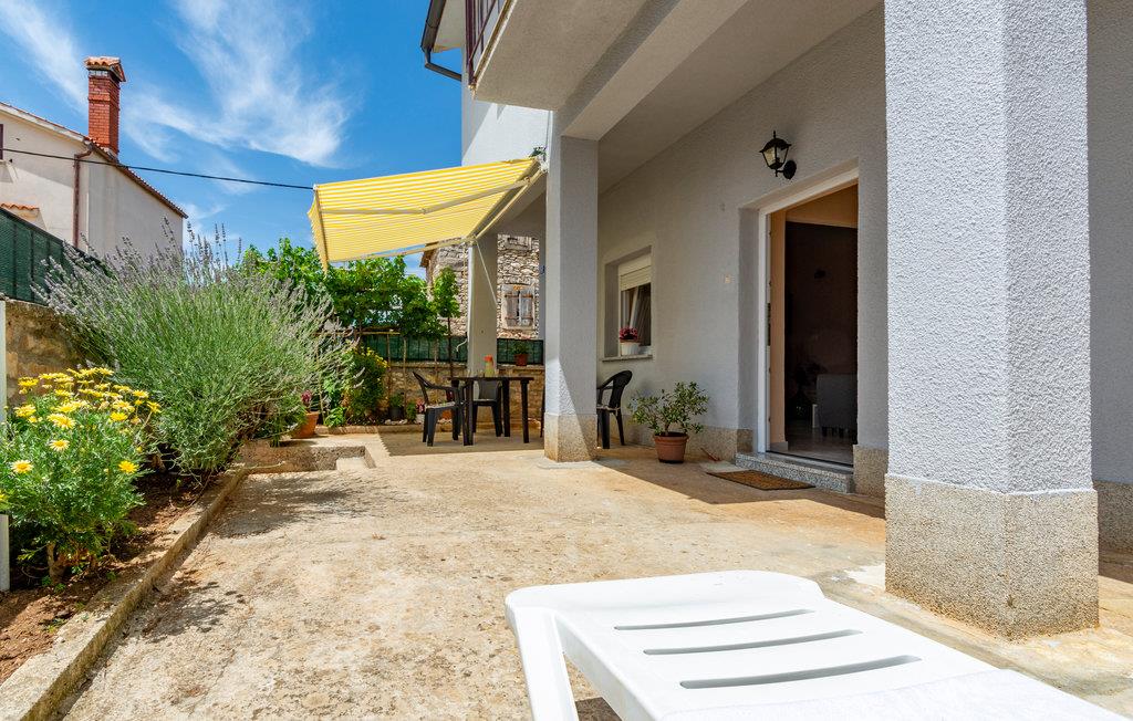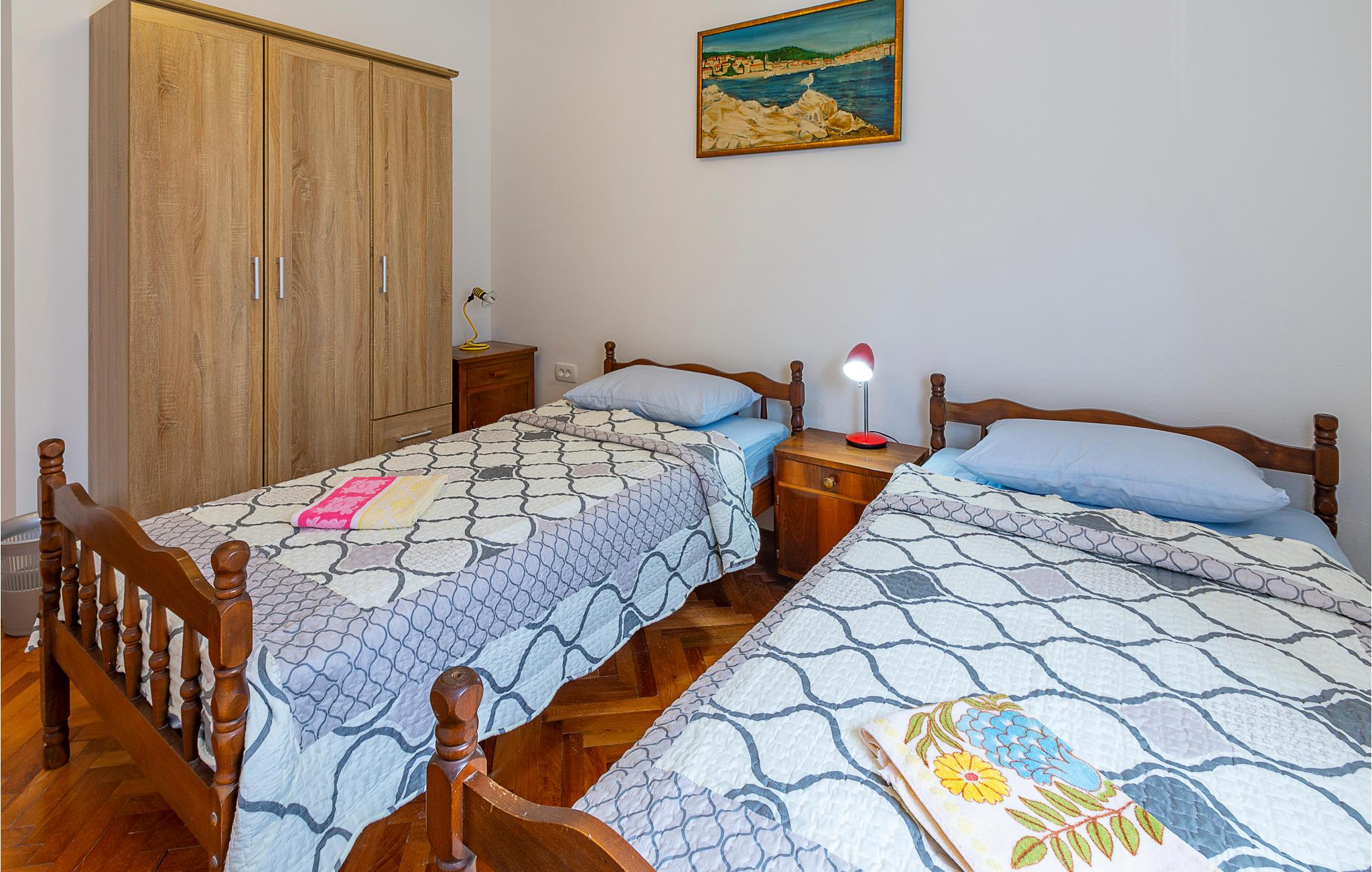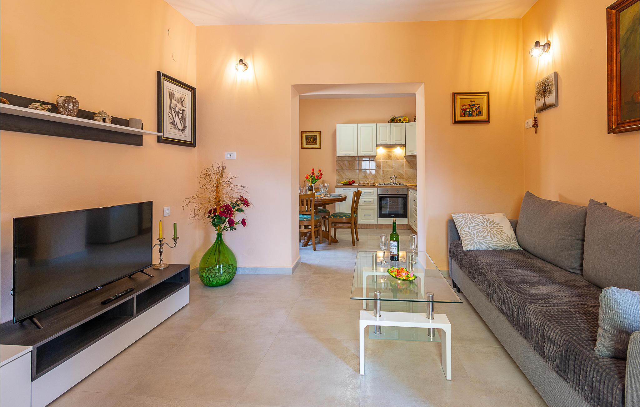 Denne lejlighed er indrettet i en blanding af klassisk kroatisk stil og moderne møbler. Udendørs er der en delvist overdækket, lukket terrasse med markise, hvor I kan slappe af i skyggen og nyde dagens måltider.