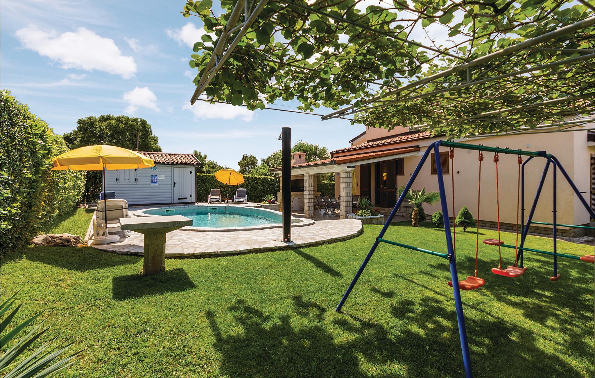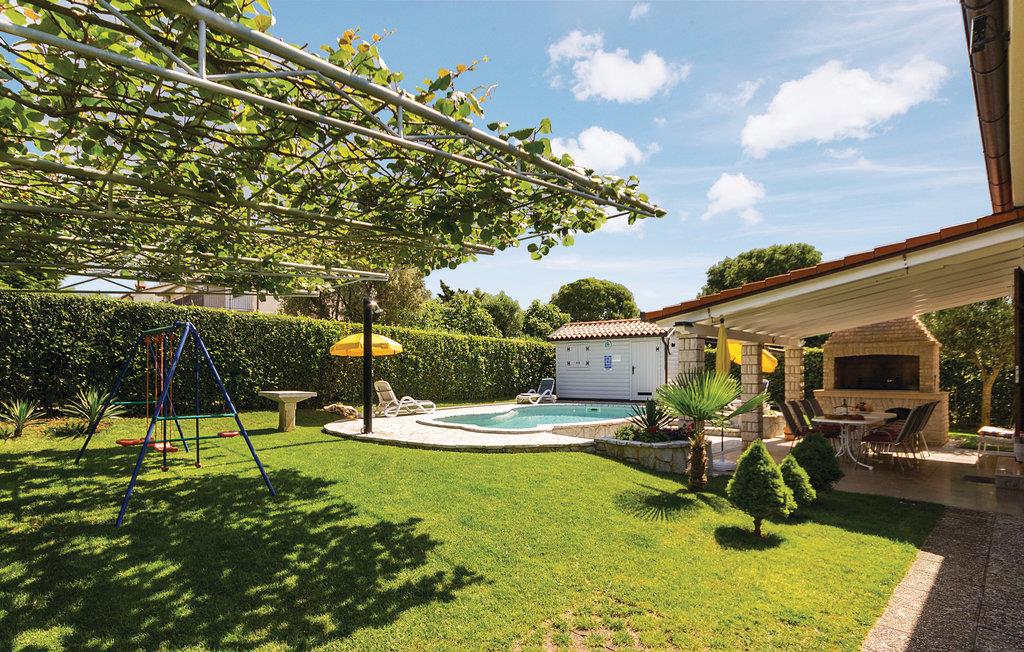 Dette smukke hus ligger i en lille ferieby der hedder Stinjan. Sommerhuset ligger i rolige omgivelser og har en smuk have med mange blomster og træer. Det er fordelt på to etager. Stueetagen har en stue, et køkken, et soveværelse, et badeværelse og en lejlighed med et soveværelse, et badeværelse og et køkken. På første sal er yderligere soveværelse og badeværelse placeret. Slap af og bliv opfrisket i den indbydende udendørs pool, der er til rådighed fra år 2012. Nyd middagen på den overdækkede terrasse. Tag en sejltur rundt om halvøen og udforsk de smukke omgivelser. Besøg Brijuni National Park eller de mange monumenter fra romertiden i Pula. Du kan også besøge de mange restauranter og cafeer, der har et rigt udvalg af traditionelle retter og lokale vine. Oplev de skønne omgivelser med din familie og nyd en dejlig ferie i dette smukke sommerhus.