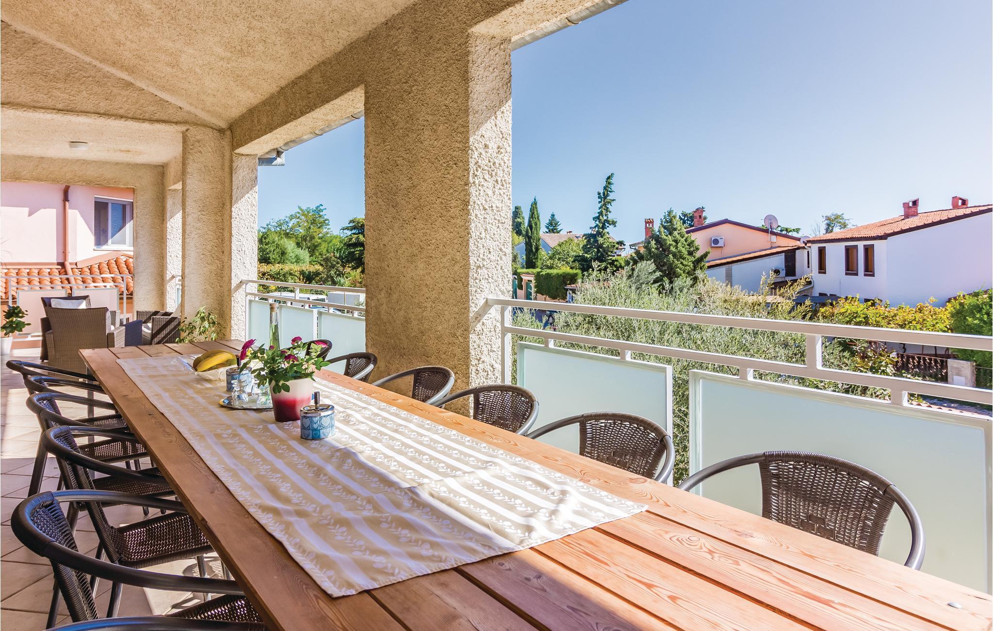 I et familiehus i det lille turistområde Stinjan ligger denne komfortable ferielejlighed. Den er fordelt på to etager og delvist rustikalt og funtionelt indrettet. Den velplejede og smagfulde have har hele to dejlige solterrasser hvor man kan slappe af og nyde ferien. På tagterrassen er der god mulighed for at drikke dagens først kop kaffe, med en fabelagtig panoramaudsigt over havet. Besøg nabobyen Pula! Her er der mange kulturhistoriske levn efter romertiden, bla. ruinerne efter det så berømte forum.