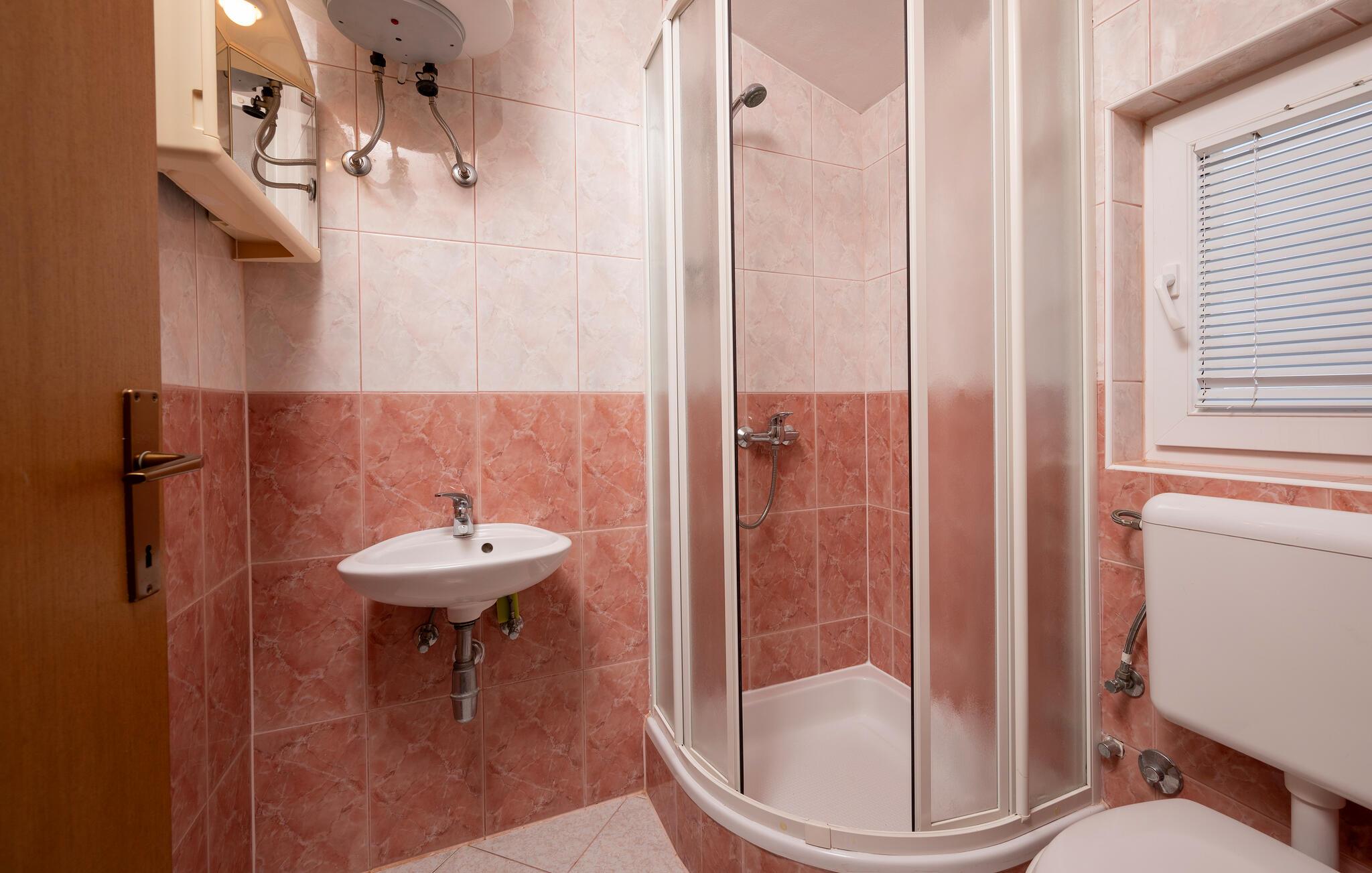 Badeværelse (nr. 1) - WC. Varmt og koldt vand. Bruser
