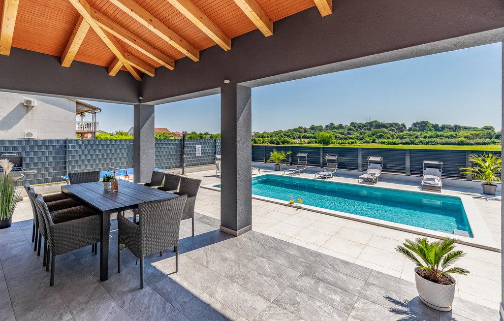 Dette moderne feriehus med swimmingpool har en rolig beliggenhed i Stinjan. Sæt fødderne op og føl dig hjemme i dette skønne feriehus. Det skønne feriehus er udstyret med moderne indretning og moderne design og tilbyder dig en alsidig vellykket ferie. Uanset om du laver lækre måltider i køkkenet eller ser en underholdende film om aftenen, finder du de rigtige områder på to fuldt udstyrede etager. Mød op i haven for at spille bordtennis eller svømme i den smukke pool, som lover at køle dig ned. Lad aftenerne slutte af på verandaen og grill lækre lokale retter. Forstaden Pula er et populært turiststed, hvor du finder alle faciliteter til en ubekymret ferie. Nyd byens naturlige skønhed med dets rene vand, tætte fyrreskove og fascinerende solnedgange. I Stinjan-bugten er der mange muligheder for aktiviteter som beachvolley, jetski, besøg i et vandland eller parasailing. Herfra kan du også opdage den smukke Brijuni Nationalpark med båd og blive forelsket i regionen!