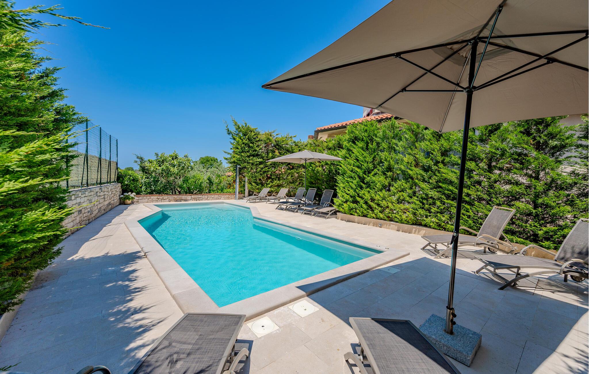 Slap af i denne moderne ferielejlighed med havudsigt og adgang til poolen.