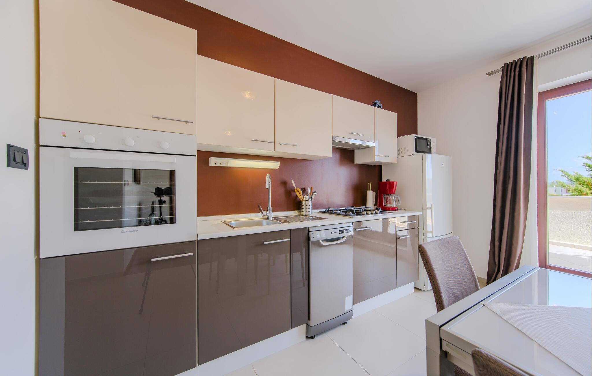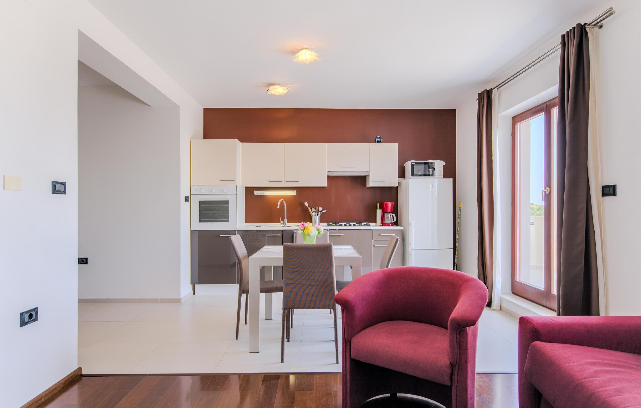 Denne lyse og indbydende ferielejlighed giver jer jer et hyggeligt hjem, mens I kombinerer en strandferie med charmerende udflugter til Pula eller det maleriske Istriske bagland. Fremtryl kroatiske retter i det åbne køkken, planlæg jeres aktiviteter ved spisebordet, og afslut dagen med et brætspil eller en fængslende feriebog.
