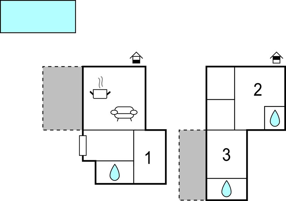 Badeværelse 6m2 (nr. 1) - WC. Varmt og koldt vand. Bruser